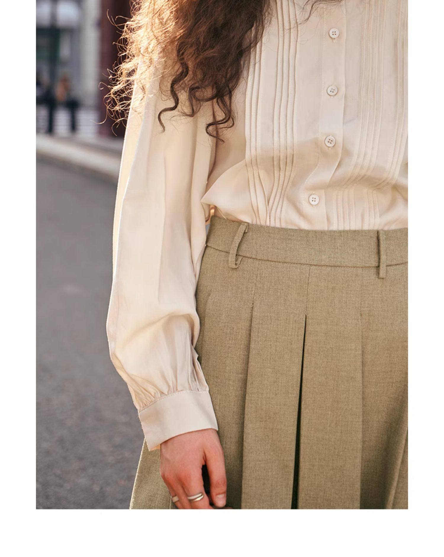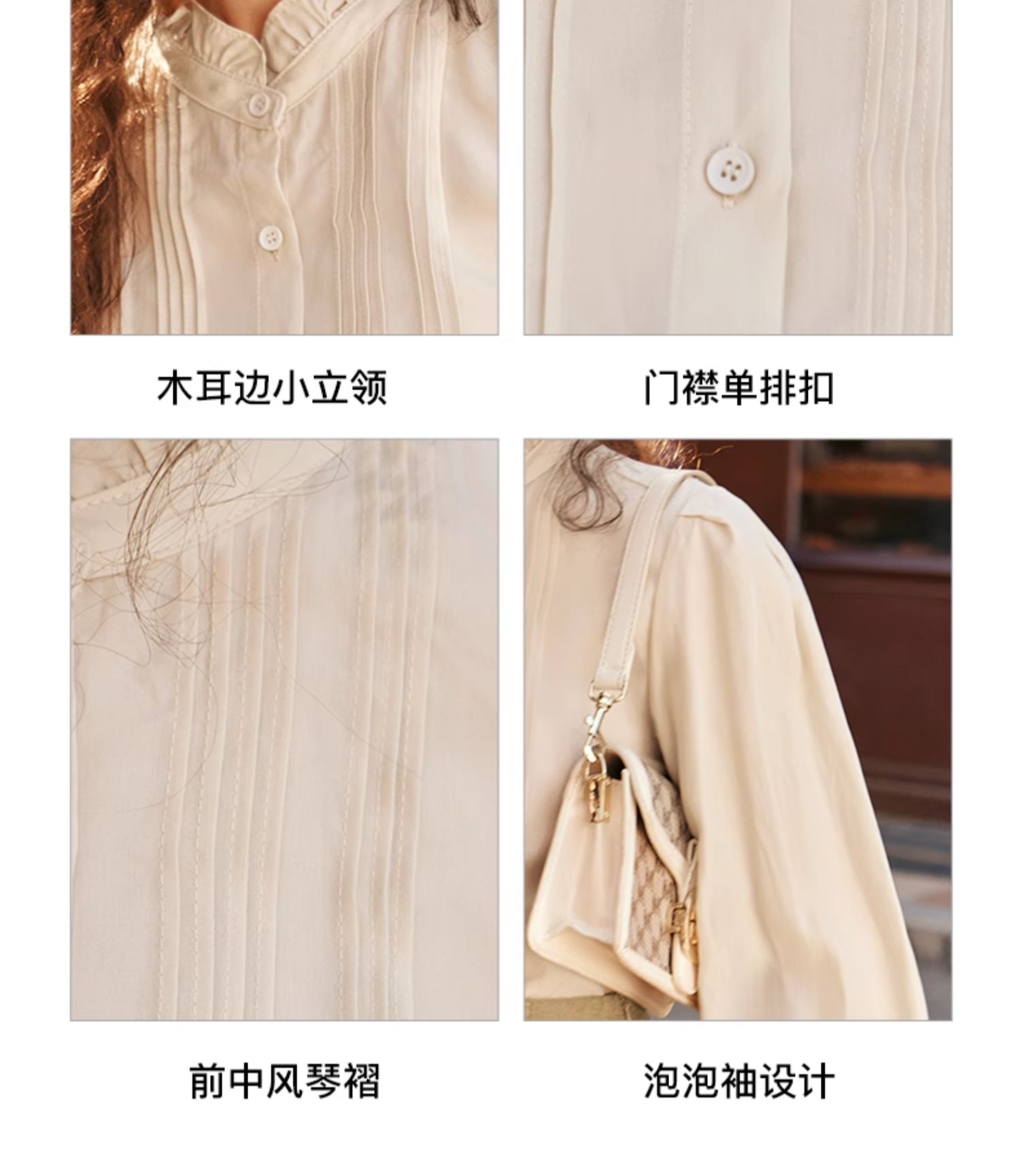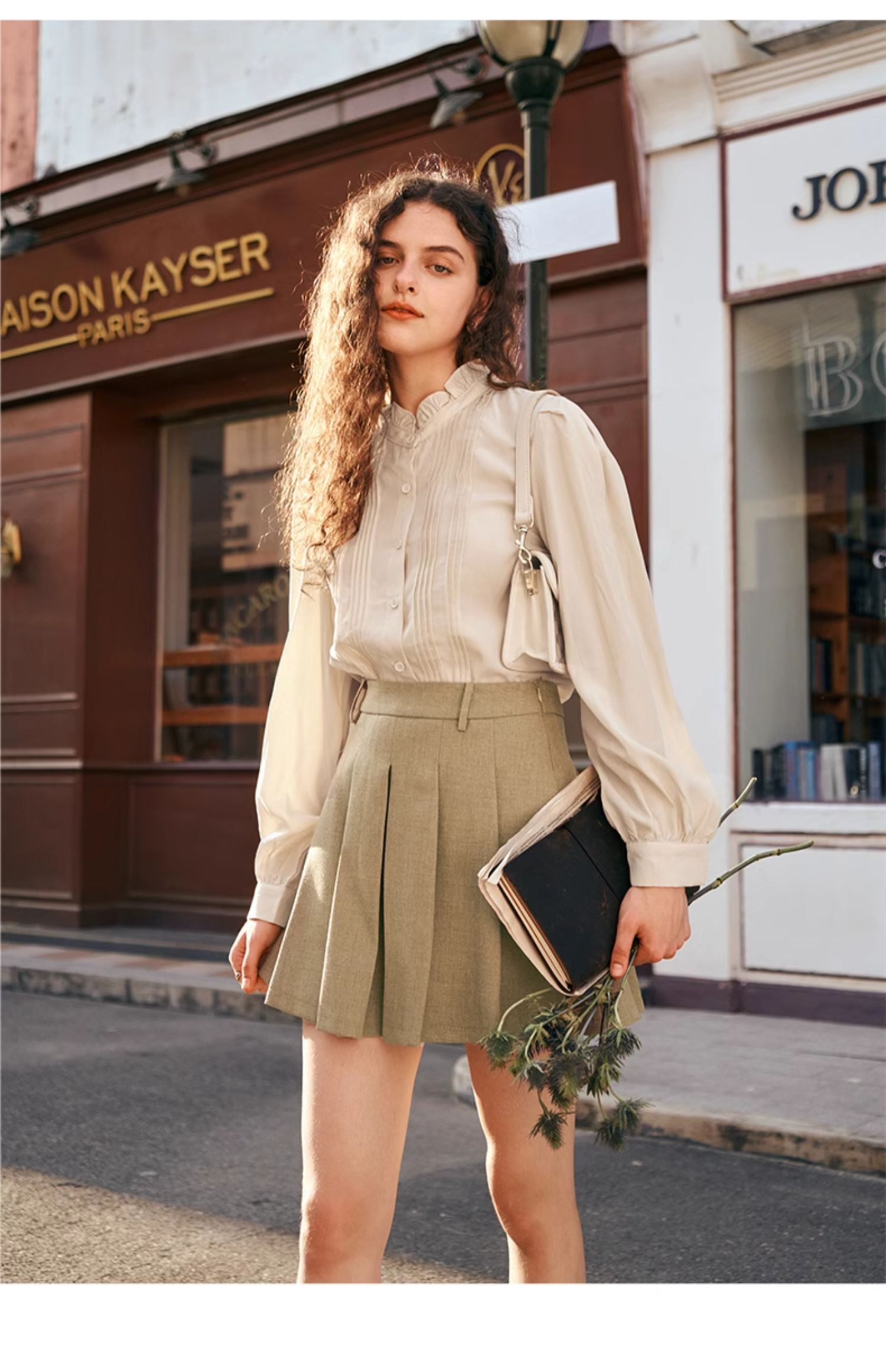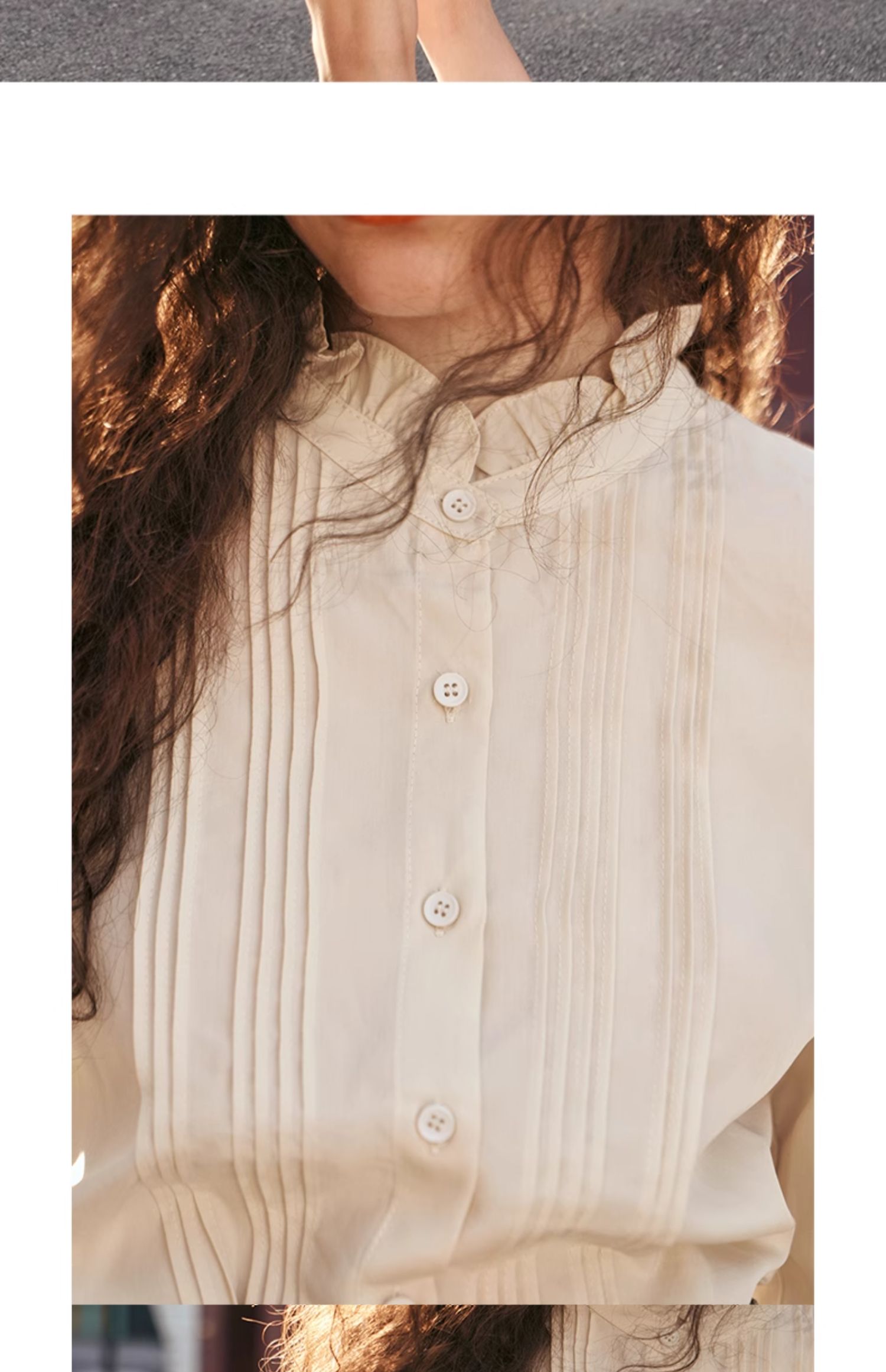 OLrain欧芮儿法式长袖衬衫女秋冬2023年新款木耳边立领泡泡袖衬衣