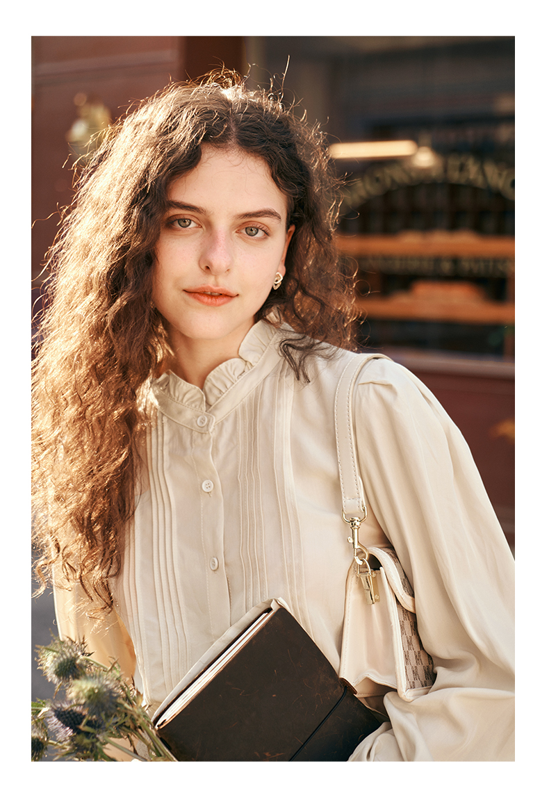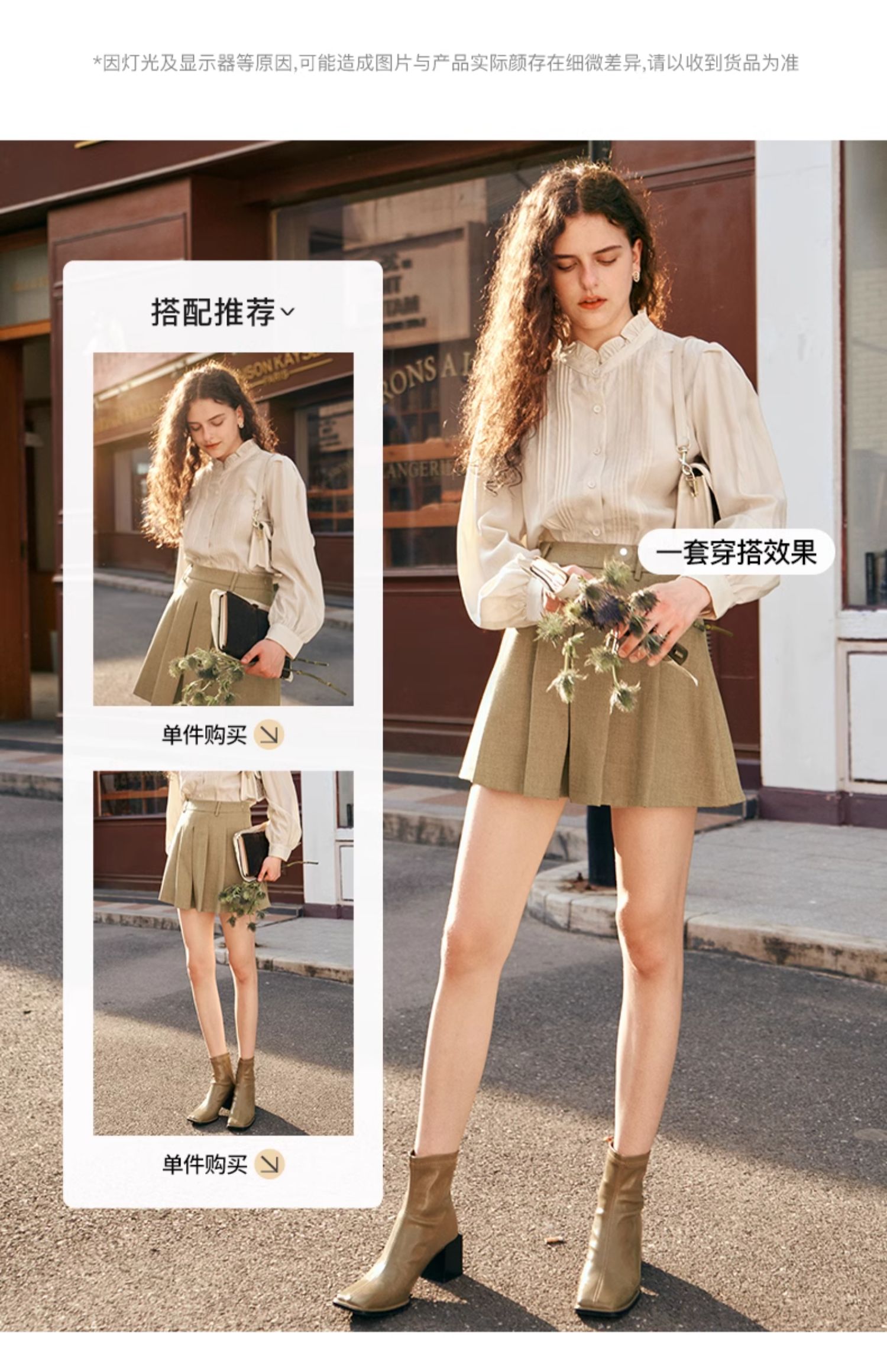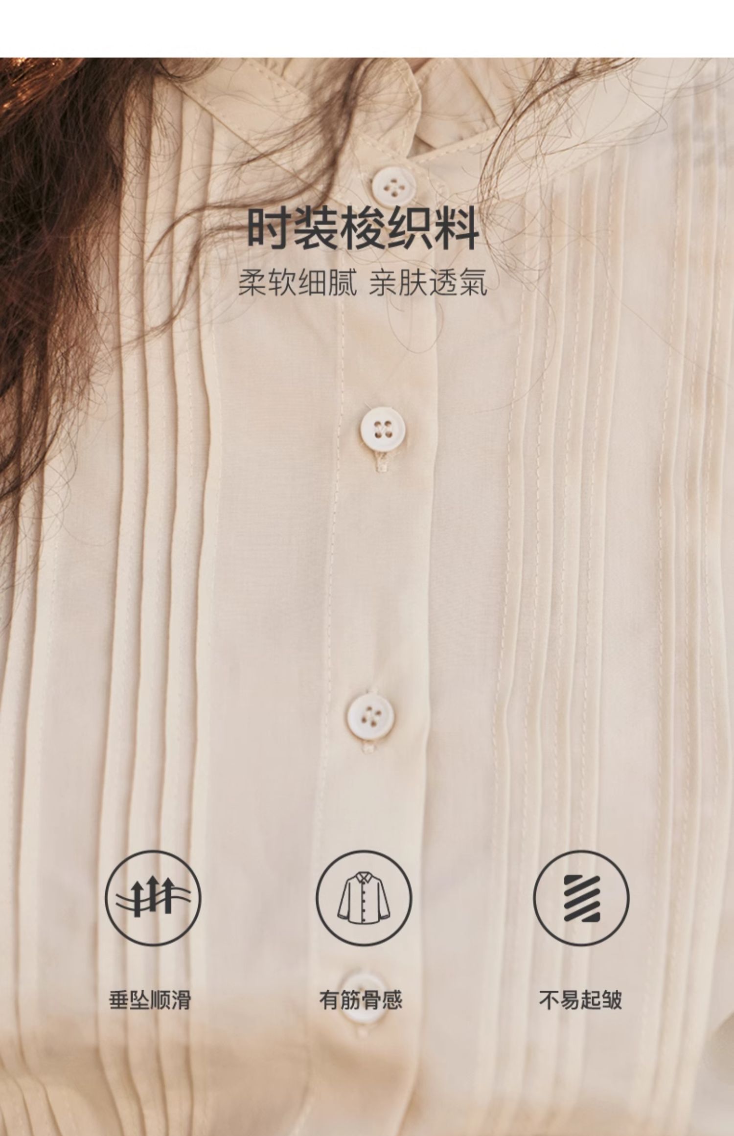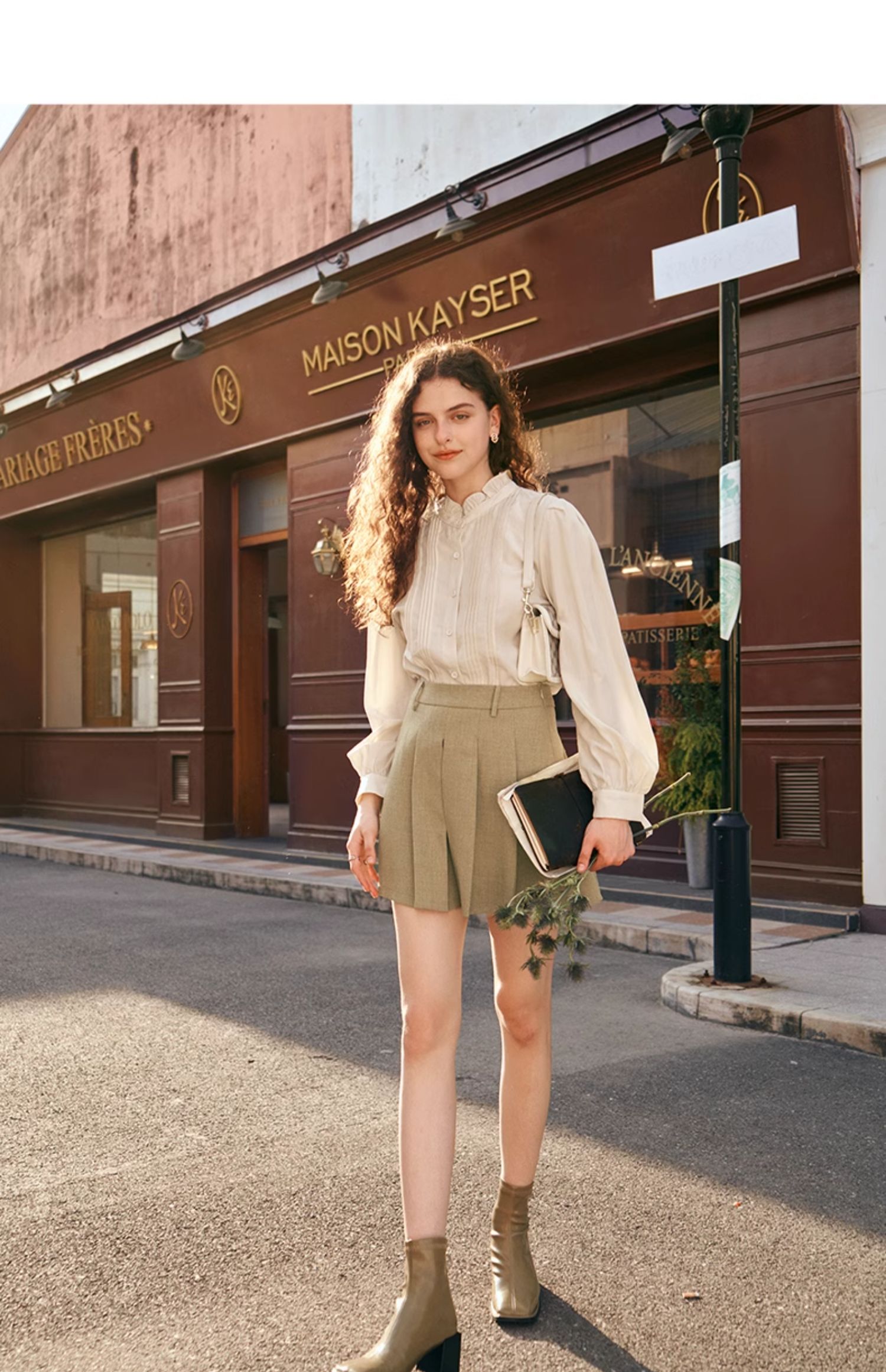 OLrain欧芮儿法式长袖衬衫女秋冬2023年新款木耳边立领泡泡袖衬衣