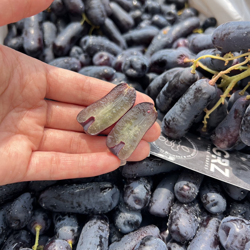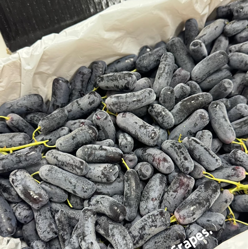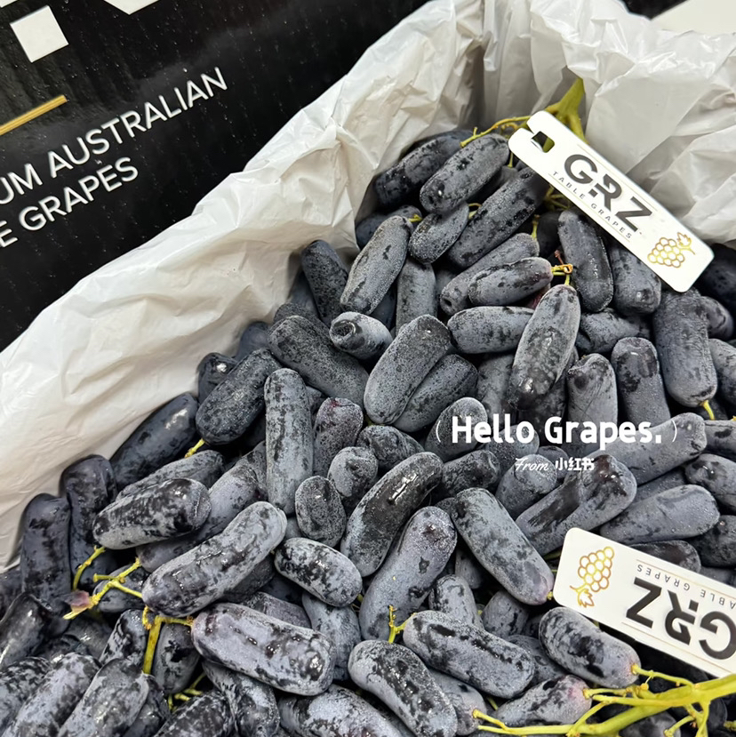 石家庄优选仓库速达,澳洲黑手指 黑提GRZ,果肉颗颗饱满,皮薄脆甜,高甜无籽,2斤散装称重