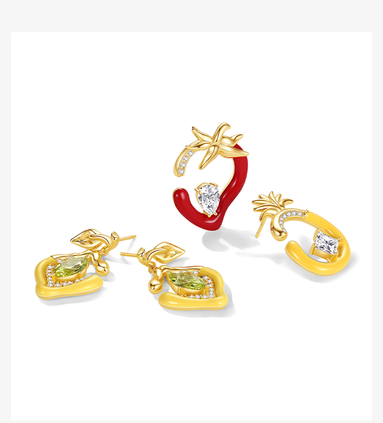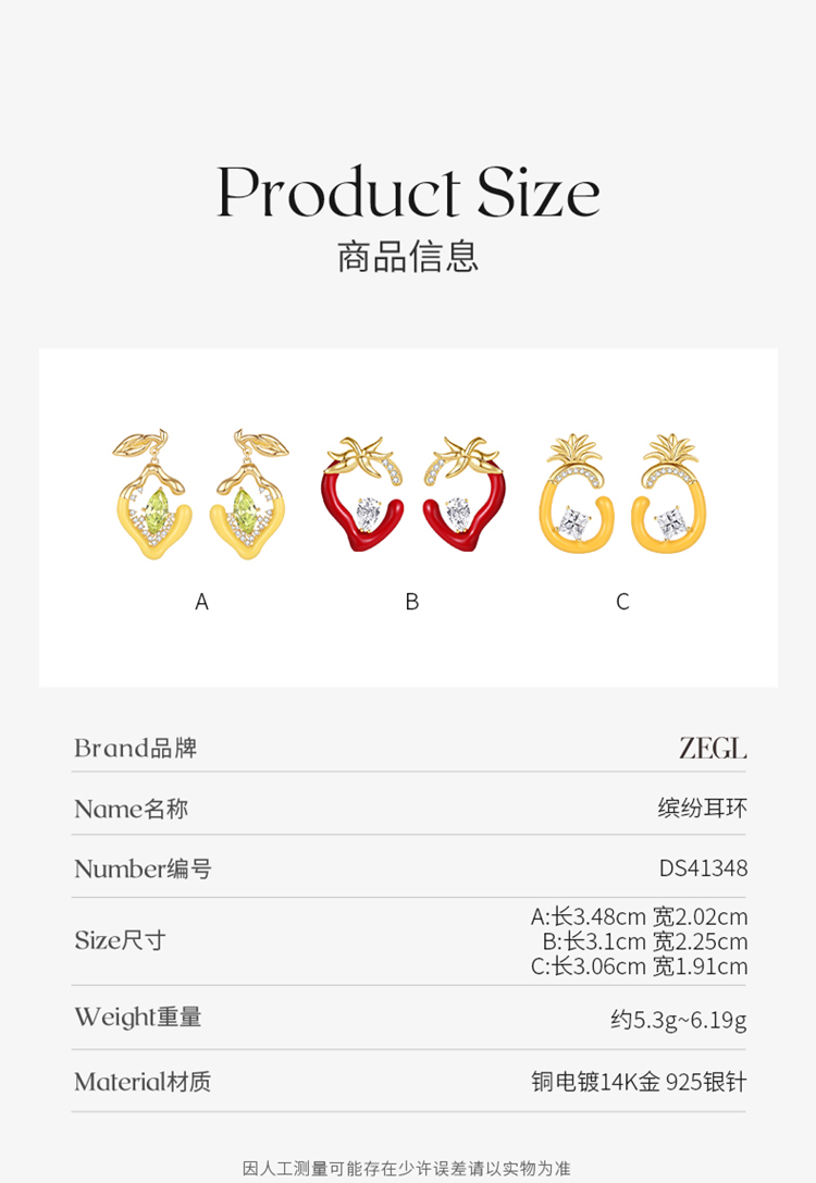 ZEGL设计师缤纷水果系列芒果耳环女2023年新款耳钉银针夏天耳饰品