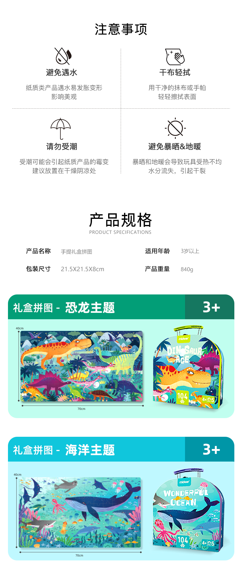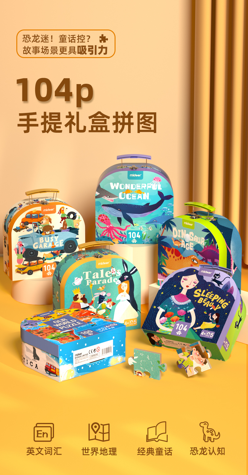 mideer弥鹿儿童手提拼图礼盒3到6岁以上男孩女孩益智玩具
