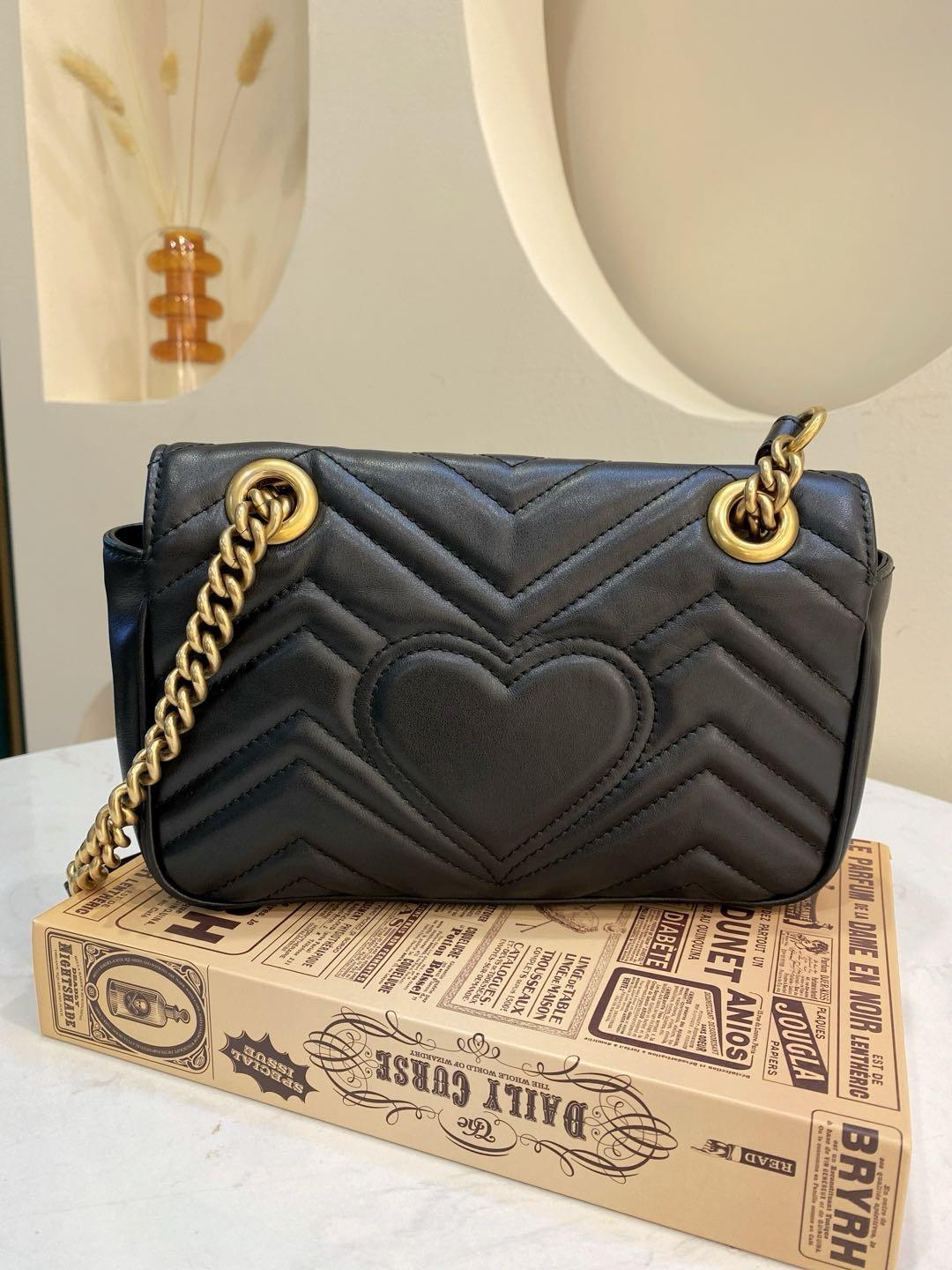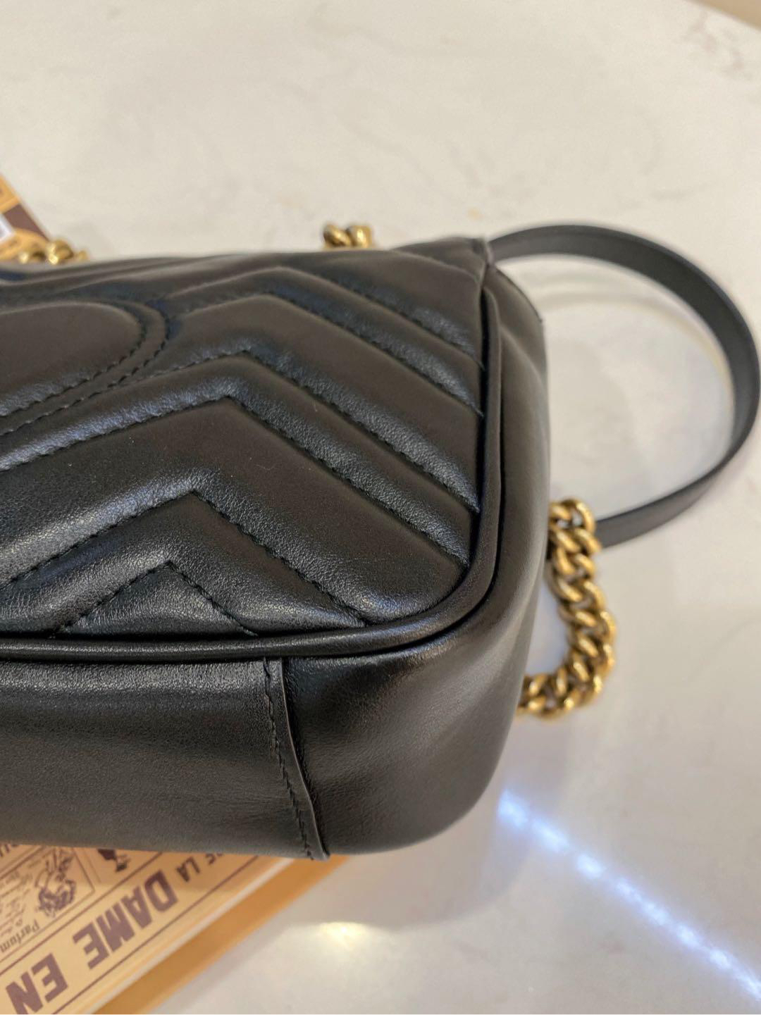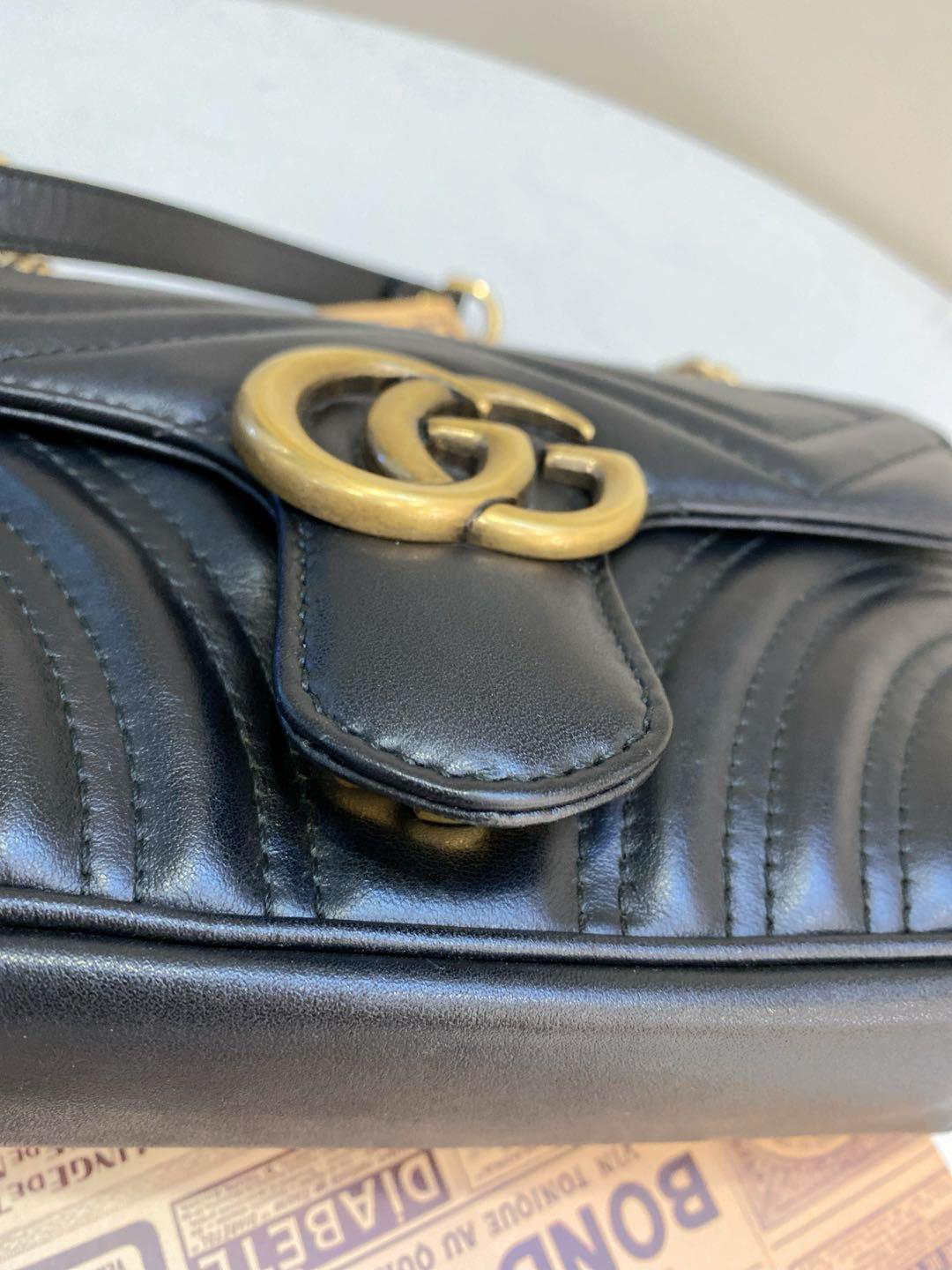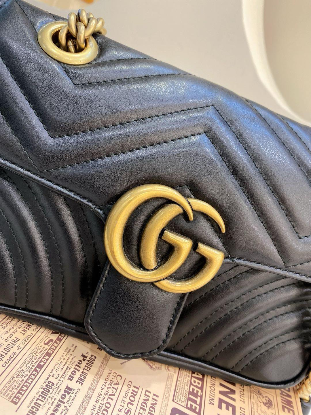 【商品詳情】正品二手 Gucci 马蒙 小号 黑金 牛皮 双g 链条包🥳97新 22*15。经典百搭款