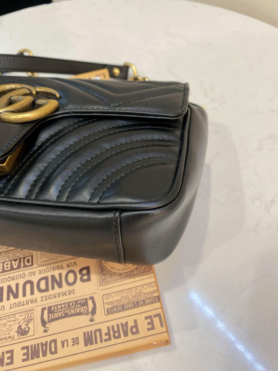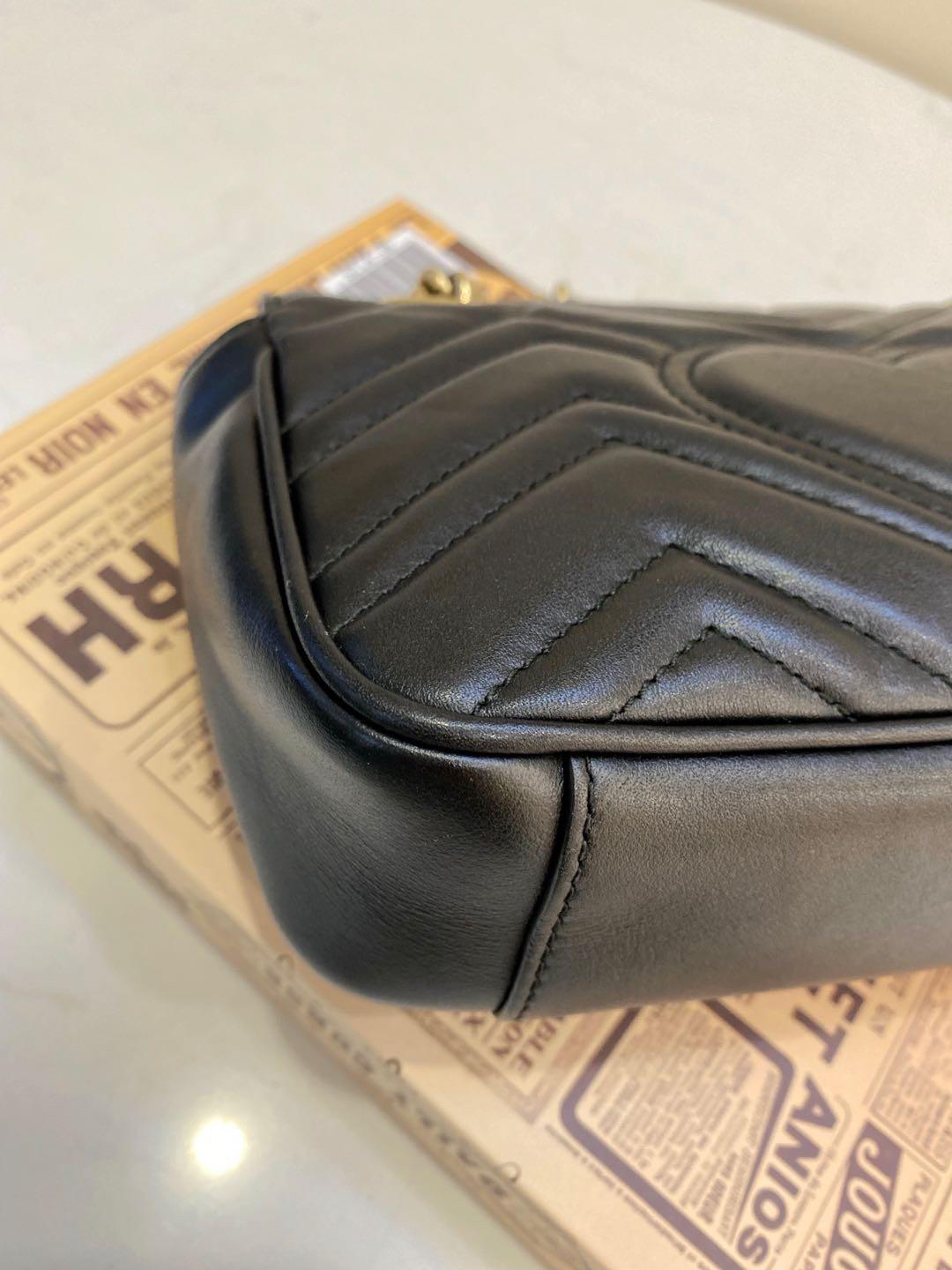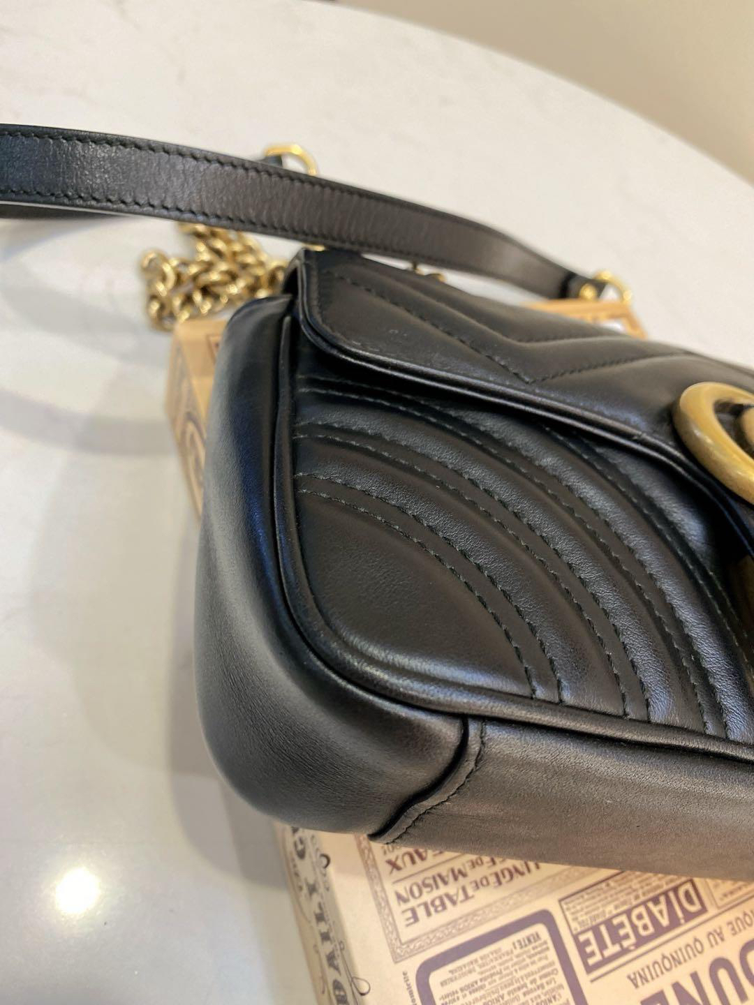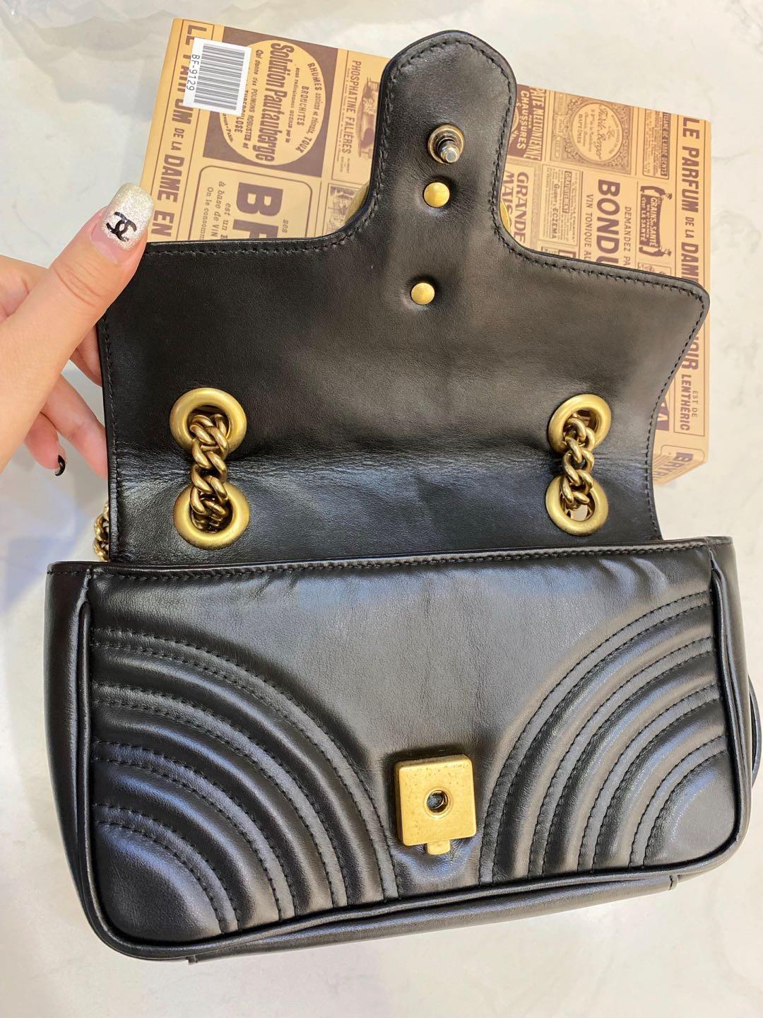 【商品詳情】正品二手 Gucci 马蒙 小号 黑金 牛皮 双g 链条包🥳97新 22*15。经典百搭款
