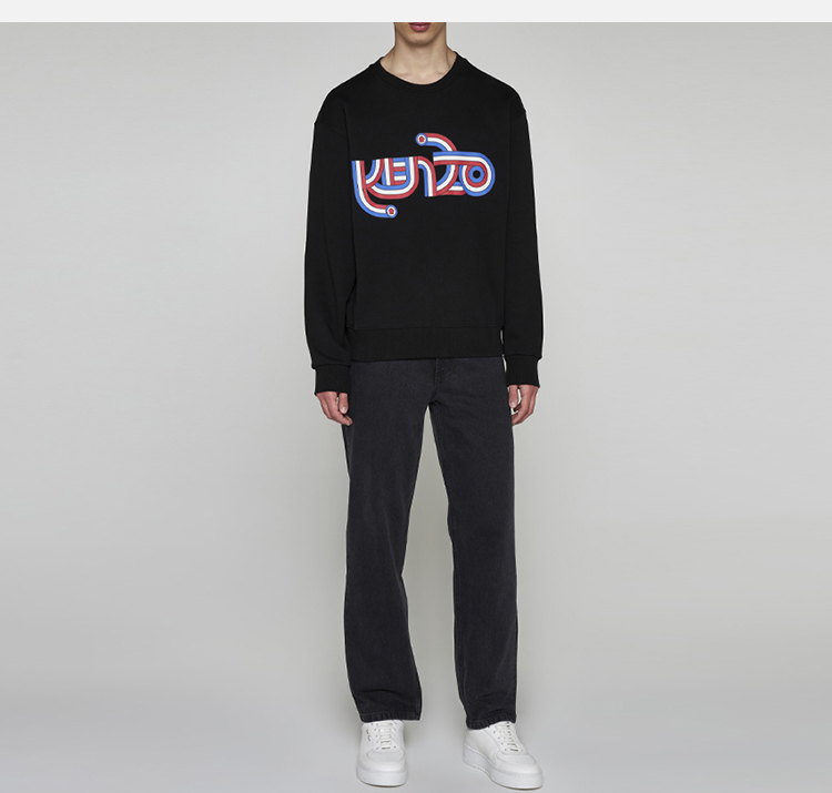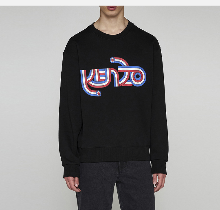 KENZO 高田贤三 男士徽标印花棉质长袖卫衣 黑色 FD65 SW072 4MG 99J