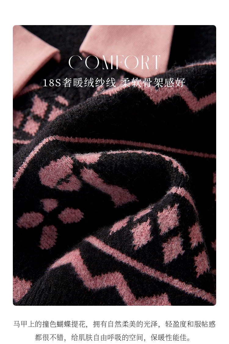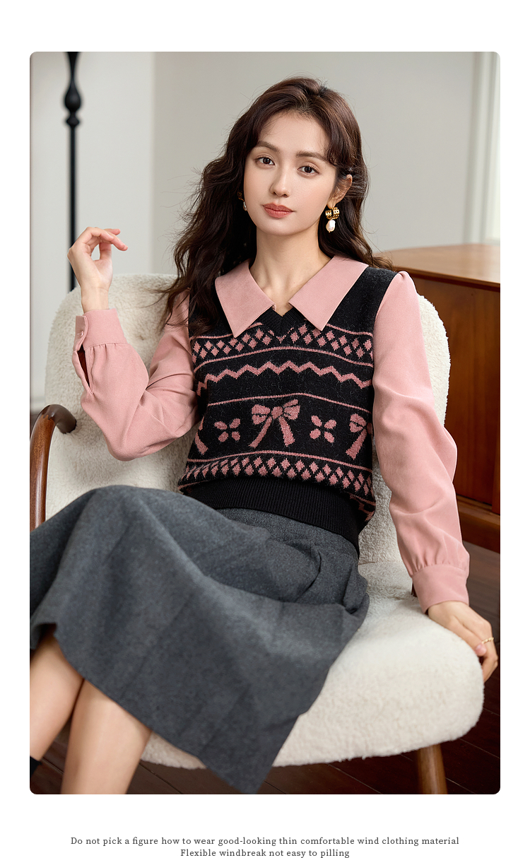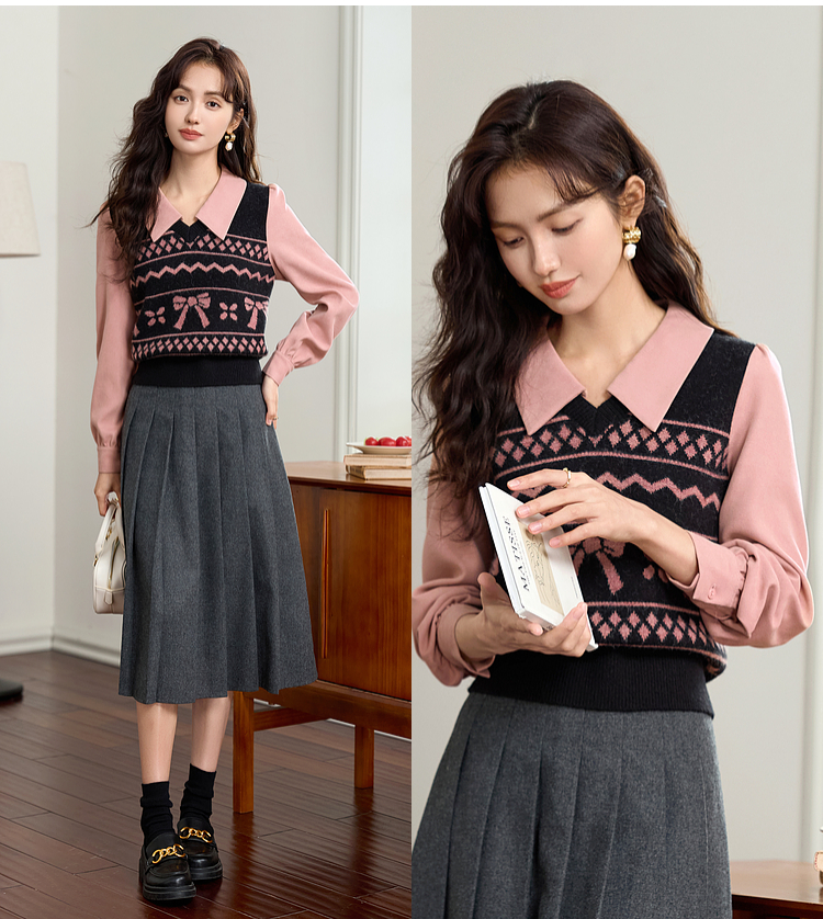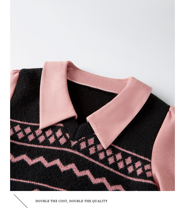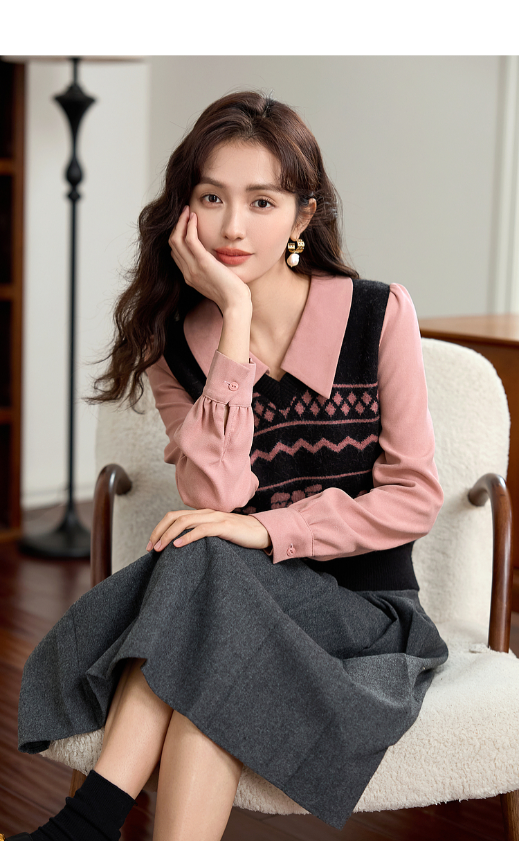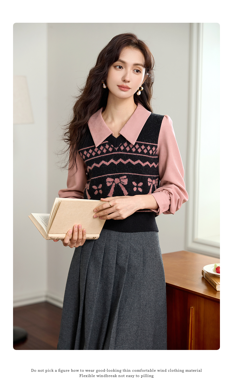 【年终特卖】熙世界假两件衬衫领毛衣秋冬2025新款设计感拼接提花打底针织衫