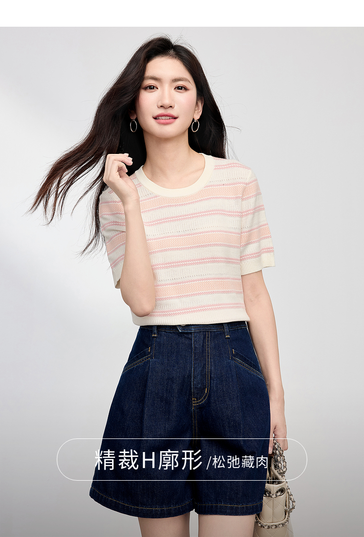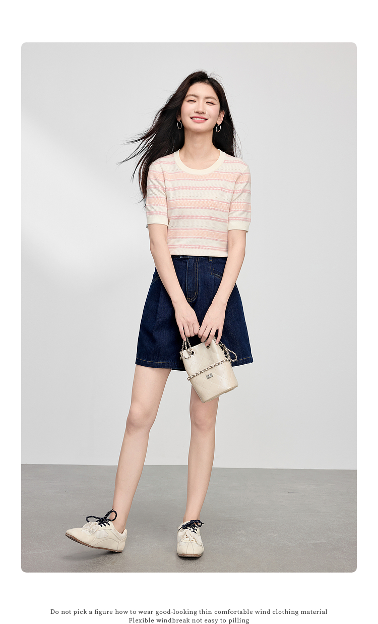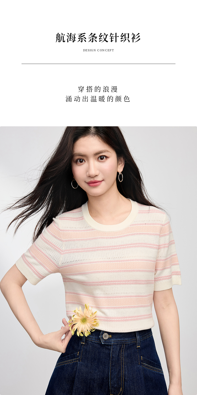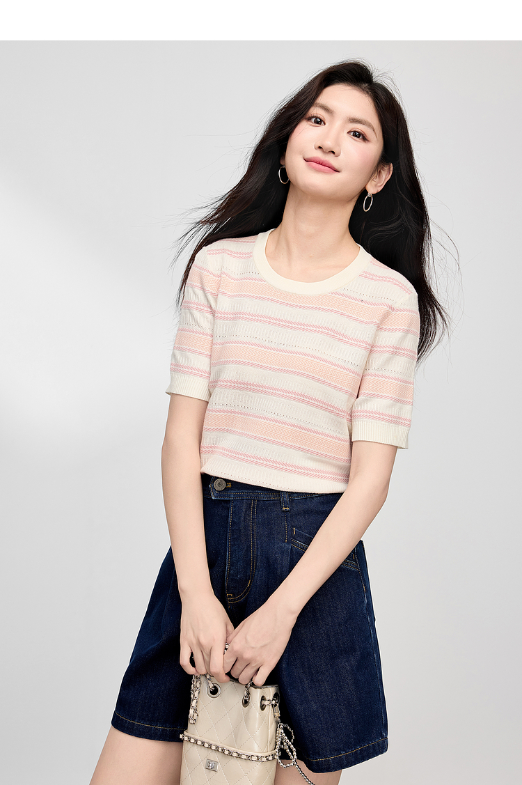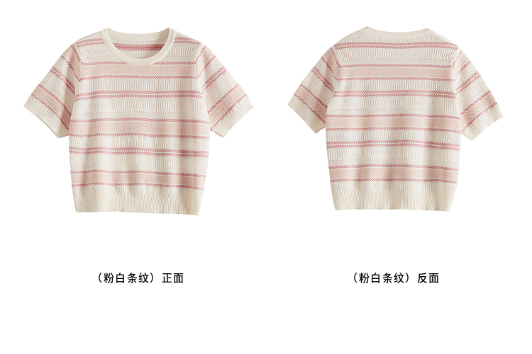 【专属特价】熙世界多巴胺条纹冰丝针织衫女夏季薄款2025年新款短袖绝美小上衣
