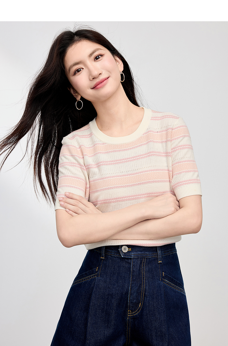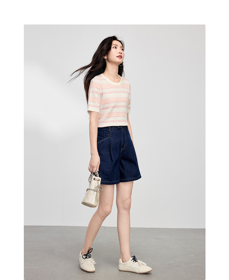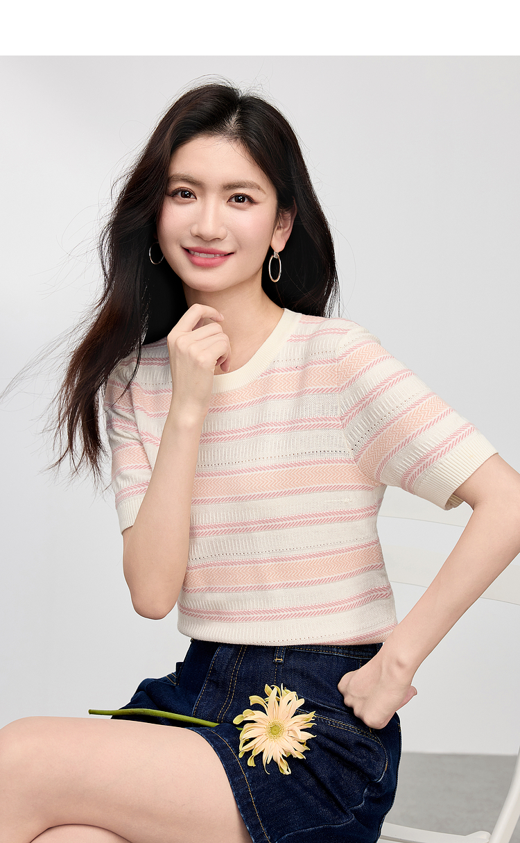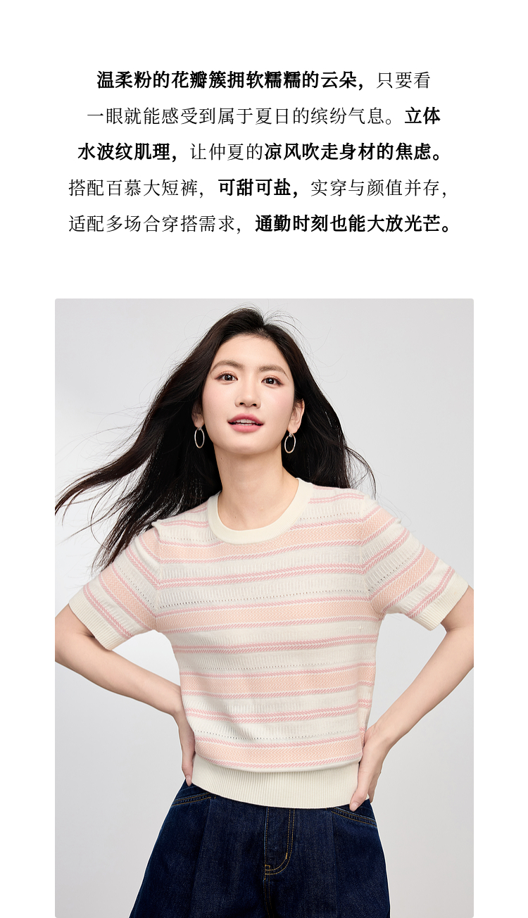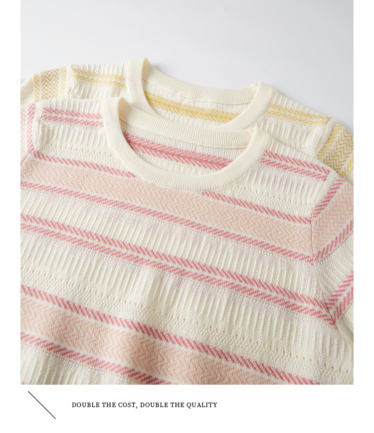 【专属特价】熙世界多巴胺条纹冰丝针织衫女夏季薄款2025年新款短袖绝美小上衣