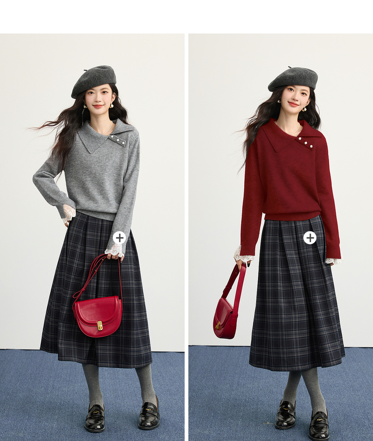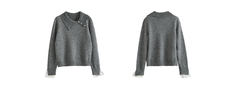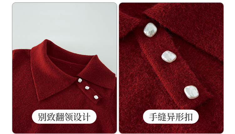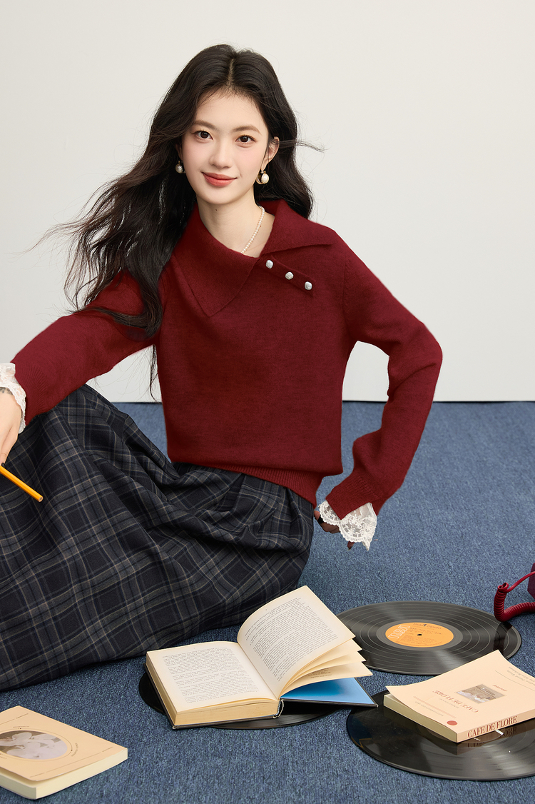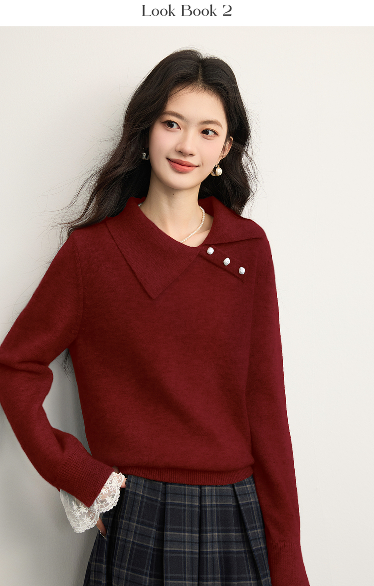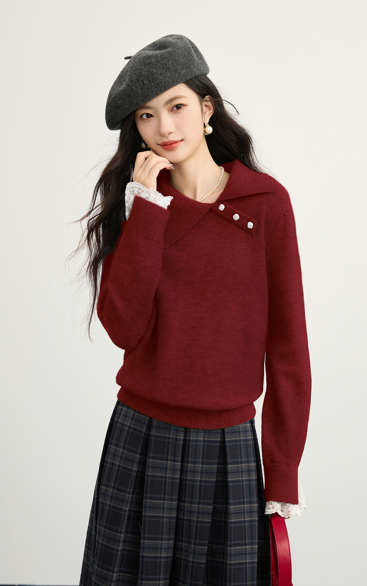 【12/10新品6折】熙世界韩系慵懒风套头毛衣女2025秋冬长袖宽松设计感翻领针织上衣