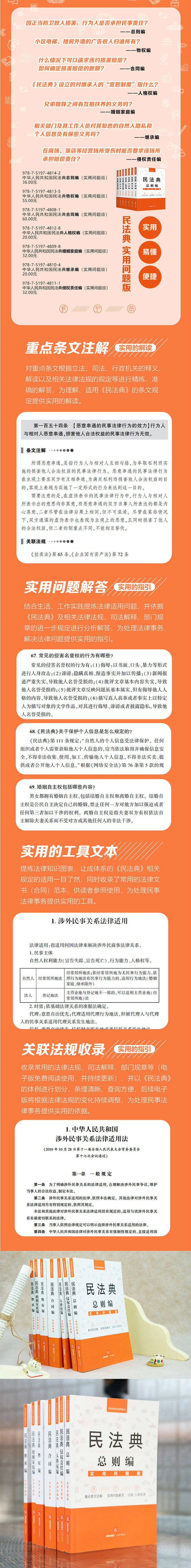 2.实用的指引。结合生活、工作实践提炼法律适用问题,并依据《民法典》及相关法律法规、司法解释、部门规章的进一步规定进行分析解答,为处理法律事务、解决法律问题提供实用的指引。