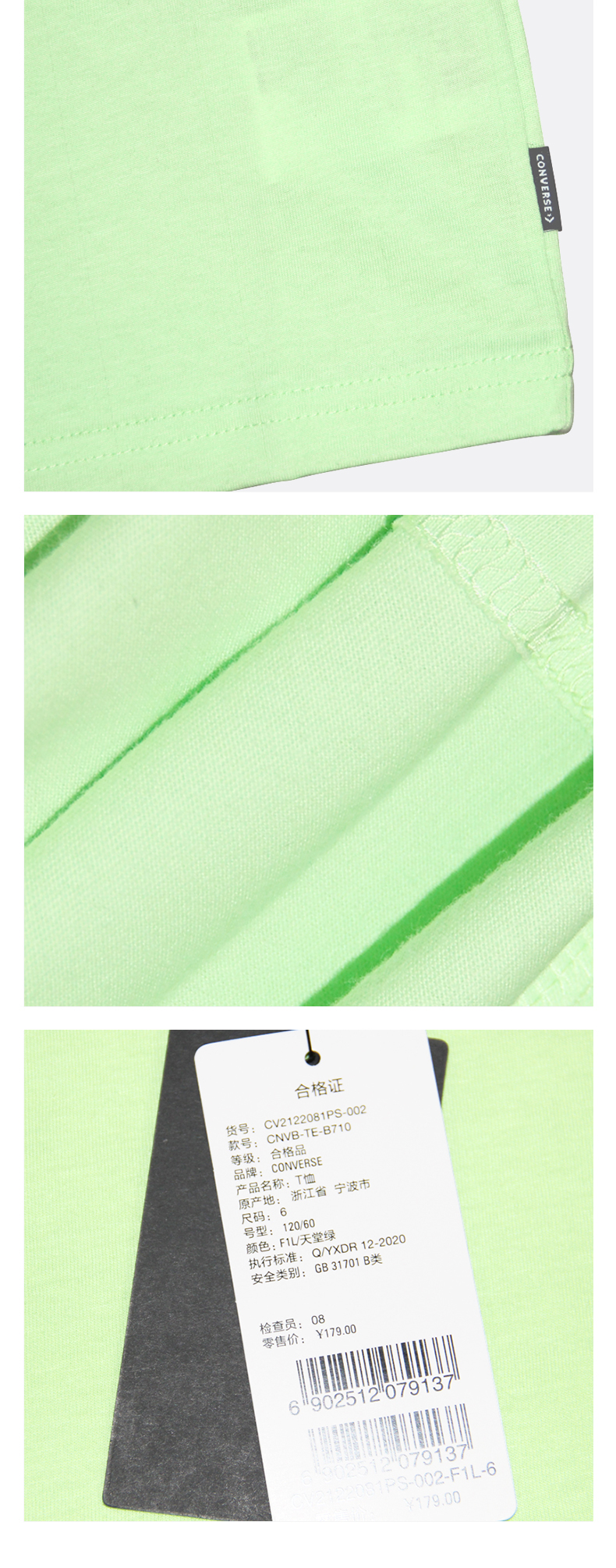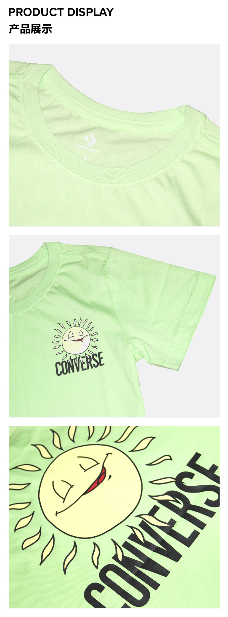 Converse匡威童衣夏绿色男女童纯棉小太阳休闲短袖T恤CV2122081