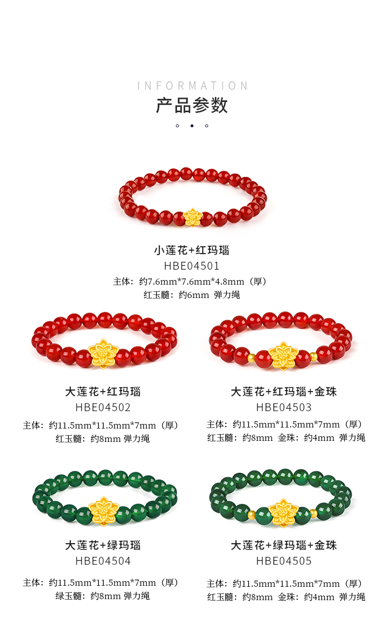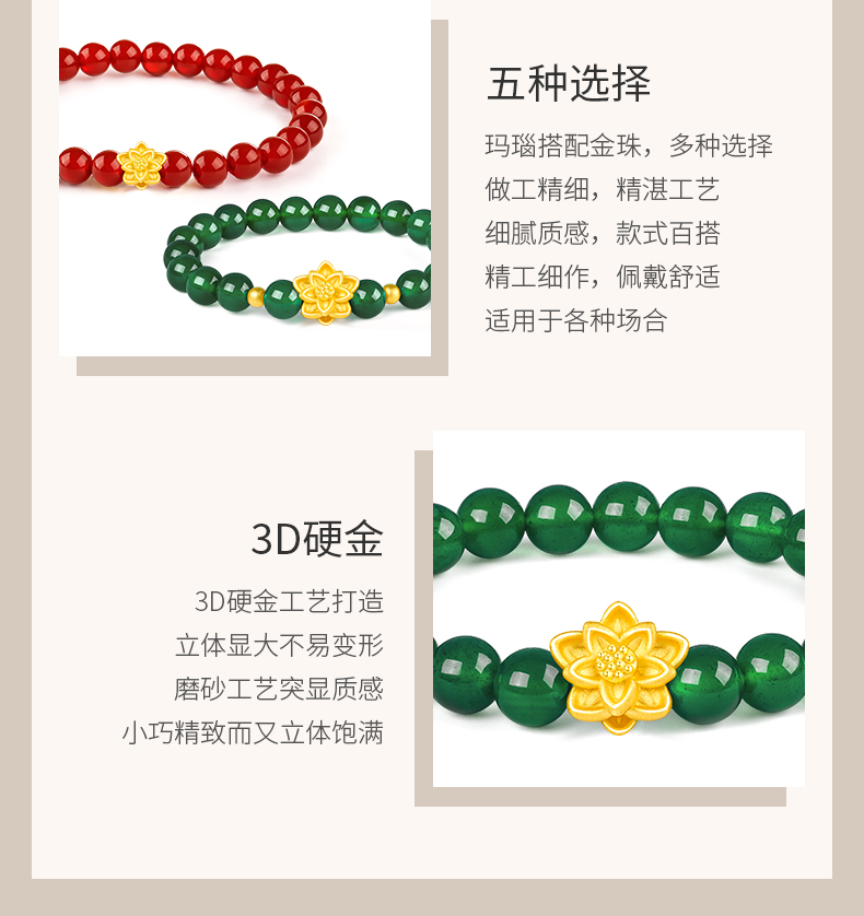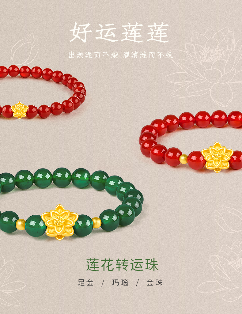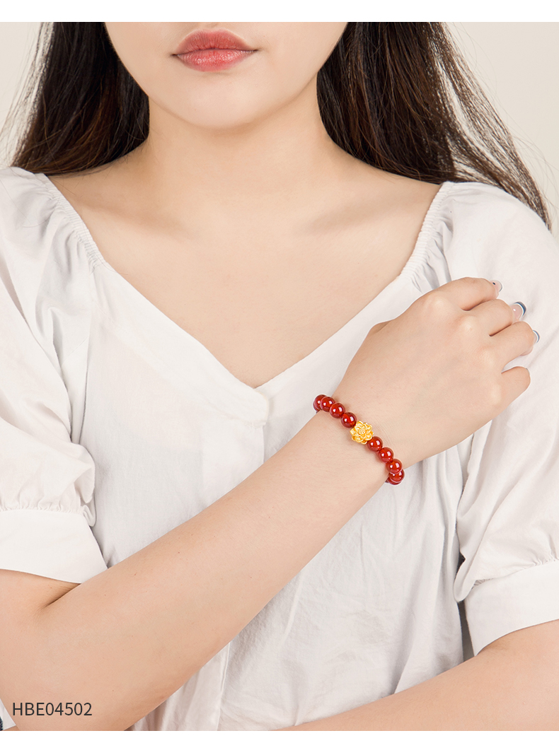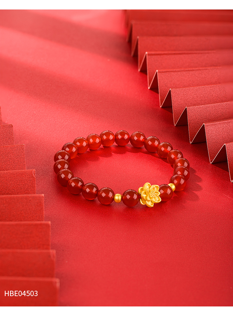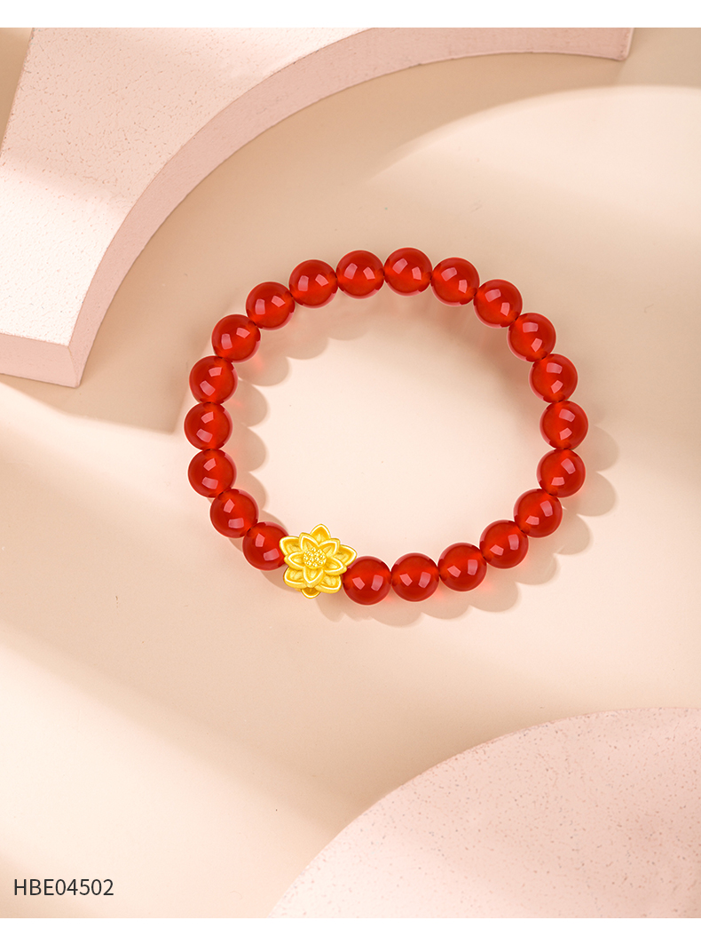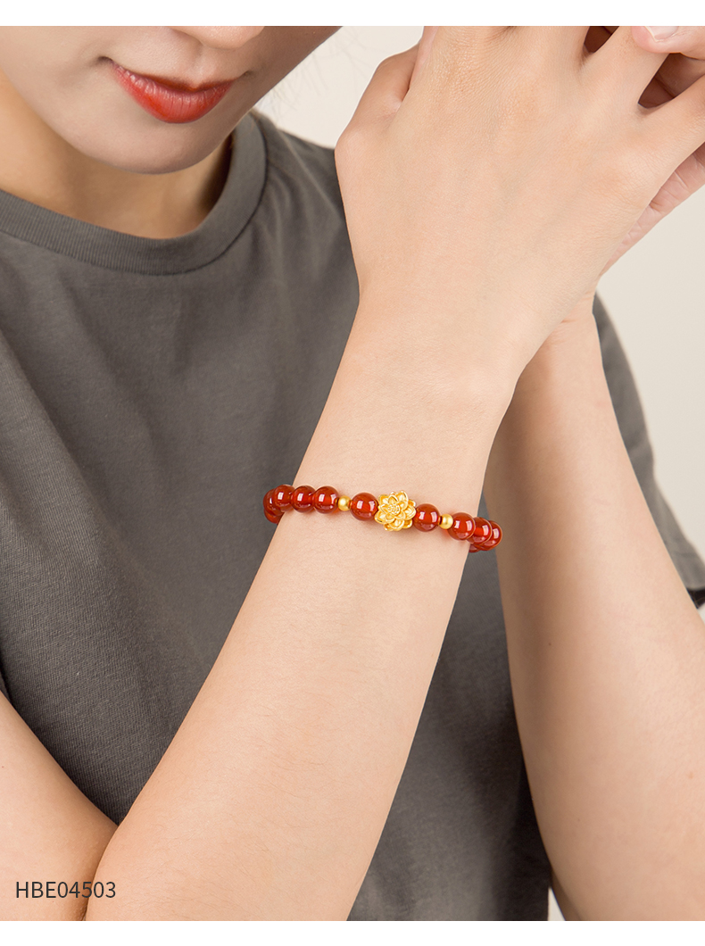 足金莲花转运珠花朵玛瑙手串送妈妈礼物MEMORA诗普琳HBE045(线上专供)