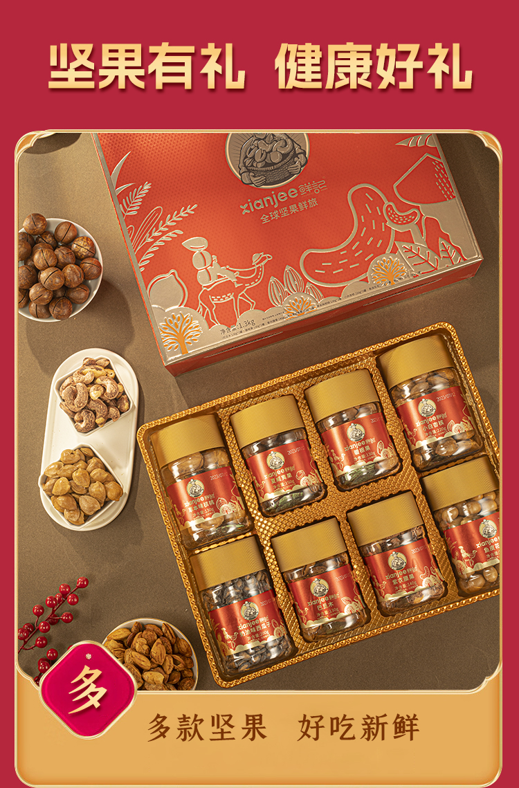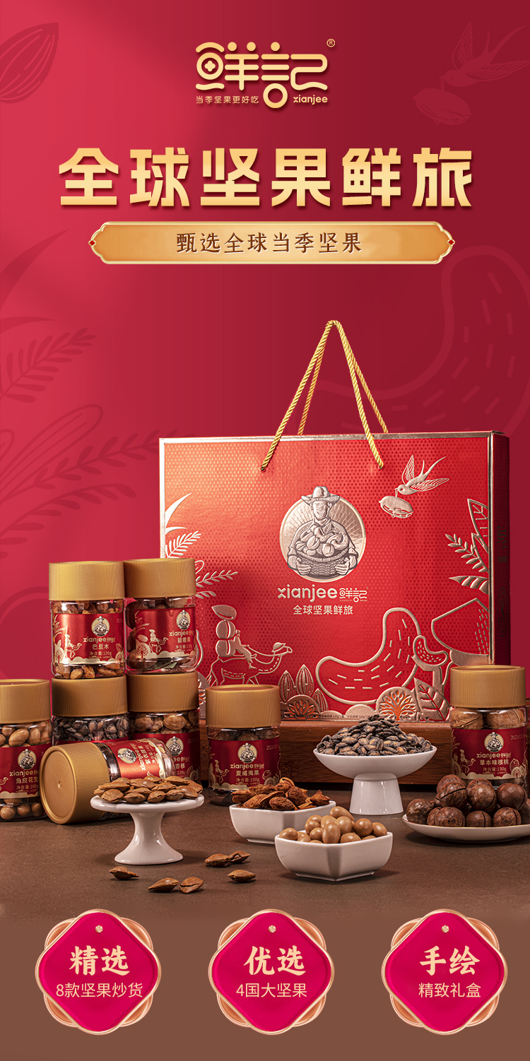 鲜记 全球坚果鲜旅1.3kg 匠心品质 以礼传情 休闲坚果礼盒 48小时发货