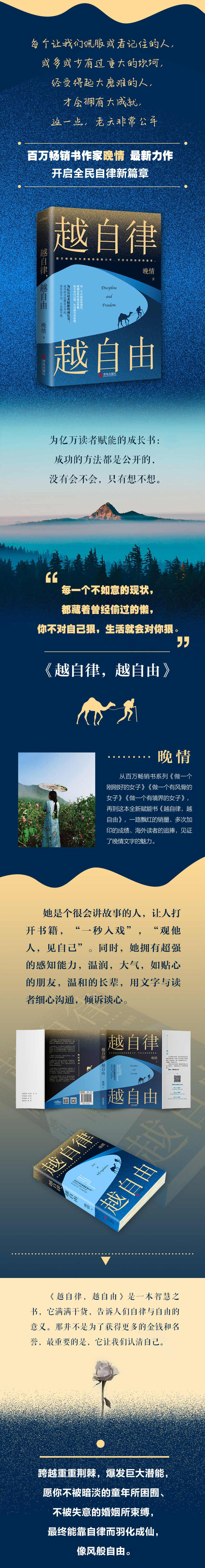 万事更新,旧疾当愈;往事清零,爱恨随意。 晚情观点: 如果我努力,我可以选择很多种生活方式。乡下住烦了,我就换到闹市去,也可以出去看世界,但如果我不努力,那我永远只能过一种生活,没的选择。 努力的意义,并不仅仅是为了金钱和名誉,最重要的是,它让我们认清自己。让你我看清原来自己还有这样的一面,可以跨越重重荆棘,可以爆发出巨大的潜能,可以没有听从命运的安排,也成了这么好的人。 很多人觉得,有些人运气特别好,经常遇到贵人帮助提携,其实这世上哪有什么贵人,真正的贵人是自己。你遇到的每一个贵人,都是你曾经结下很多善缘后得到的回报而已。 你常常觉得,自己没有职场智慧,情商不够,智商不够,所以拼不过别人。其实真正的职场高人不会去拼情商,也不会去拼智商,他们拼的都是人品,小胜靠智,大胜靠德,古人诚不我欺! 很多人觉得自律很难、很辛苦,......