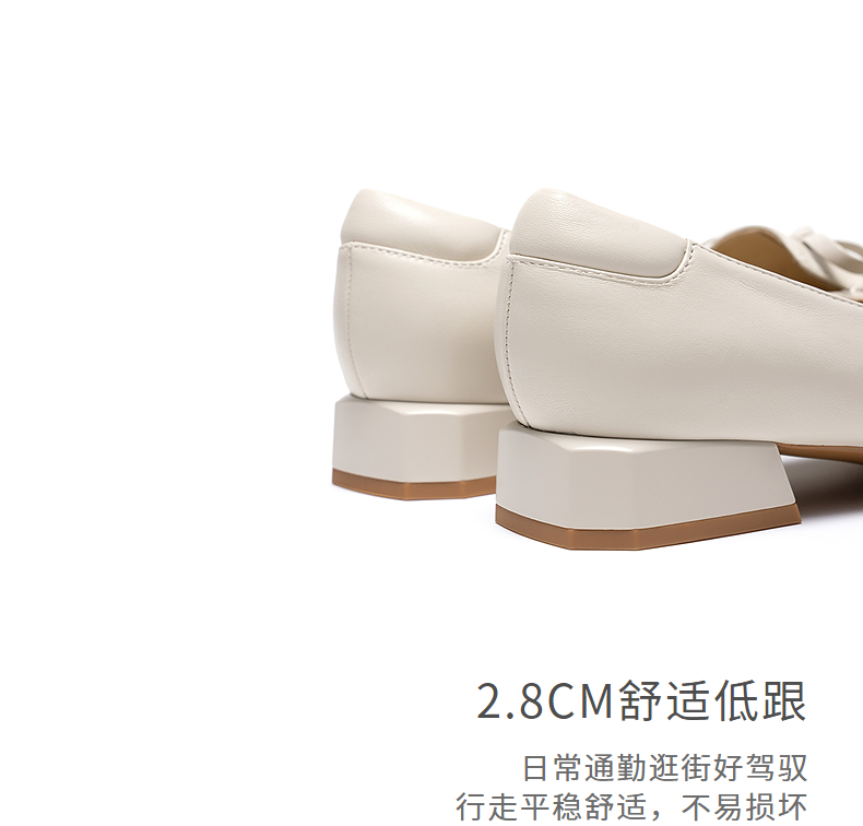千百度粗高跟乐福鞋女春季通勤浅口小皮鞋羊皮正装豆豆鞋A24132626