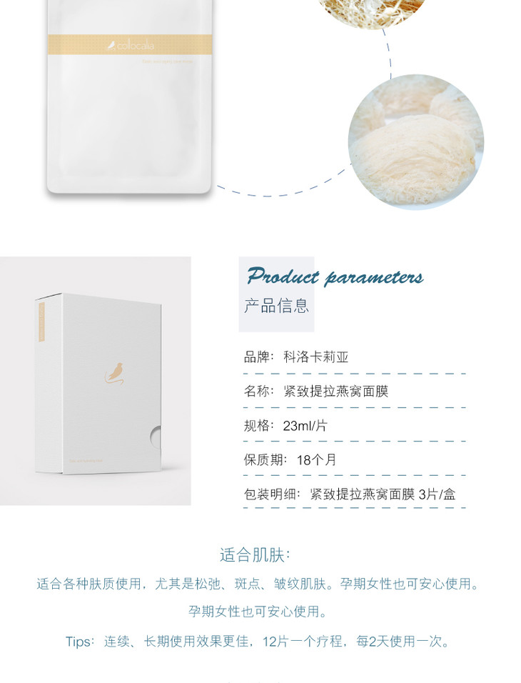 【科洛卡莉亚】collocalia补水锁水紧致提拉面膜一盒5片