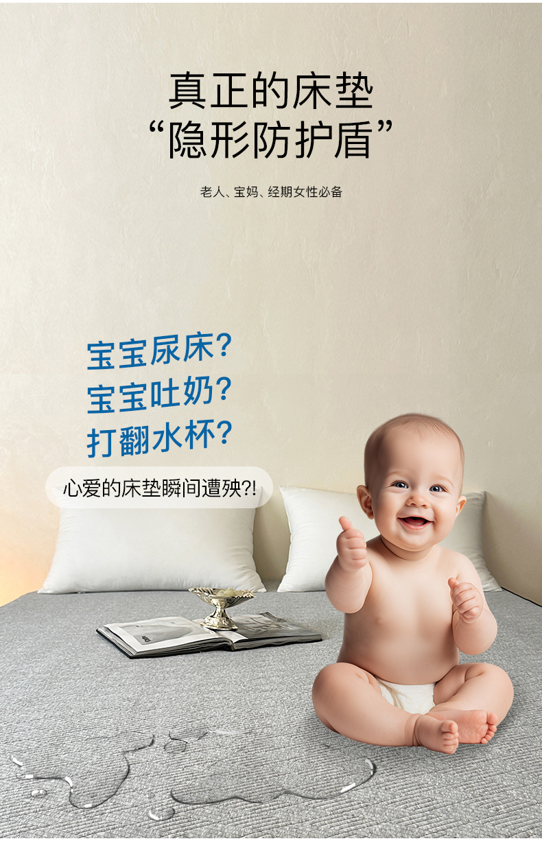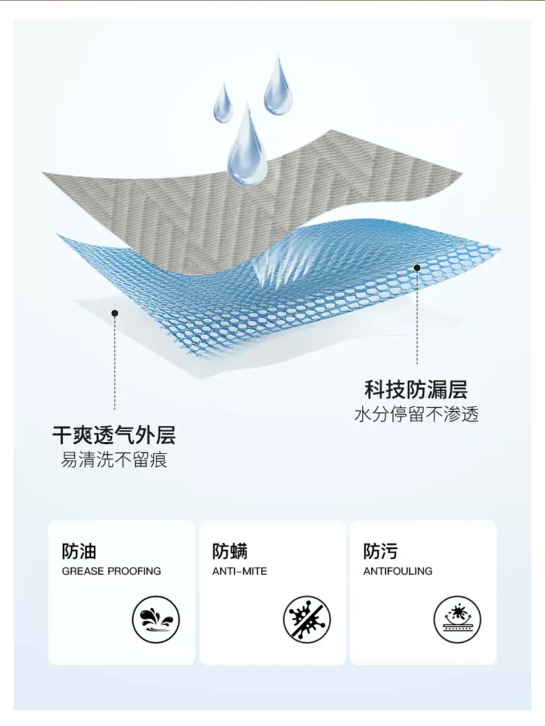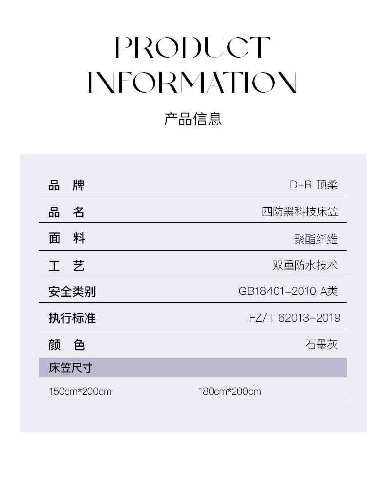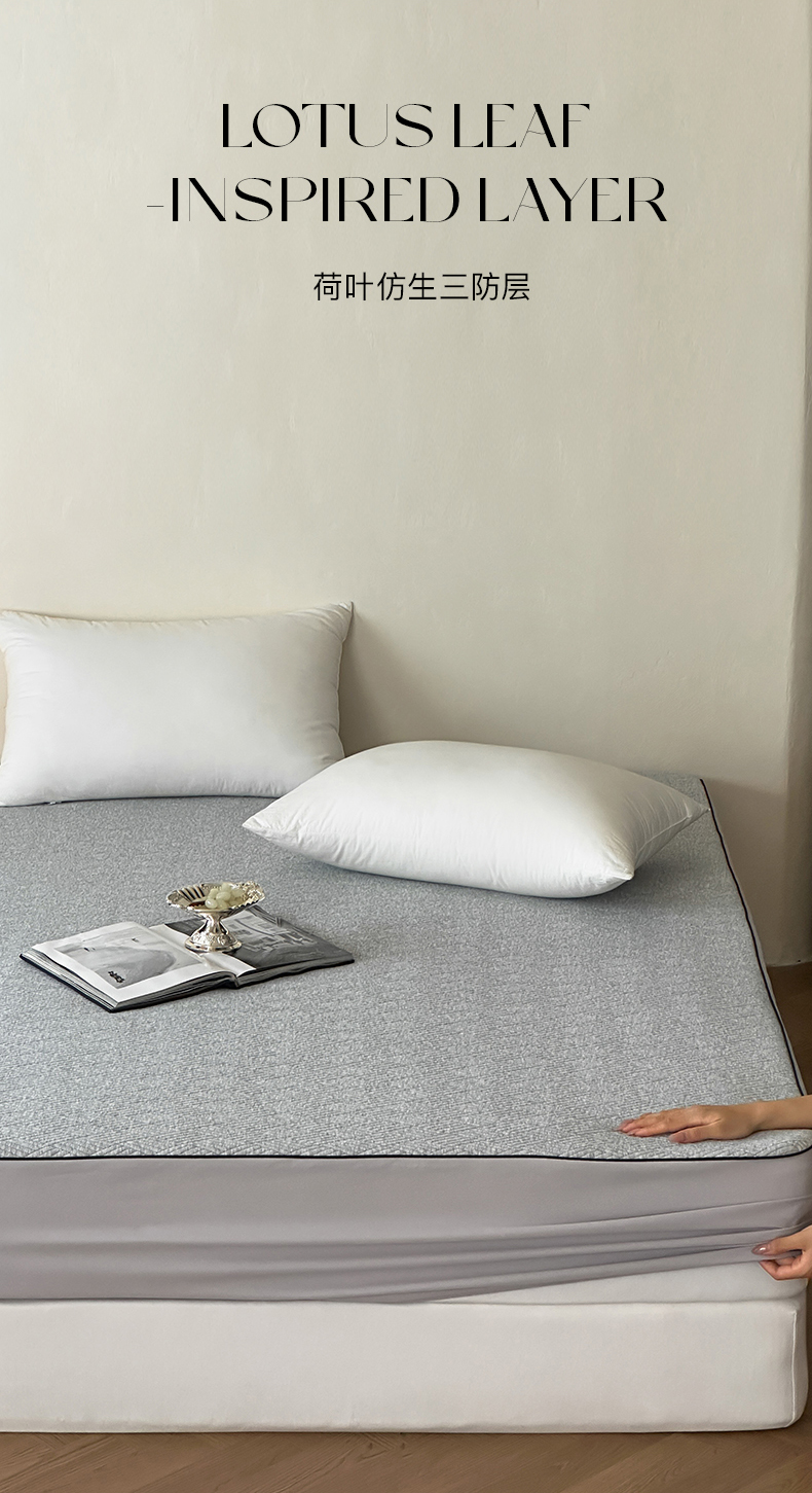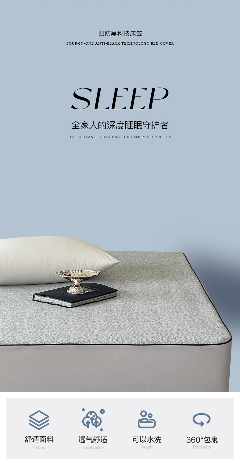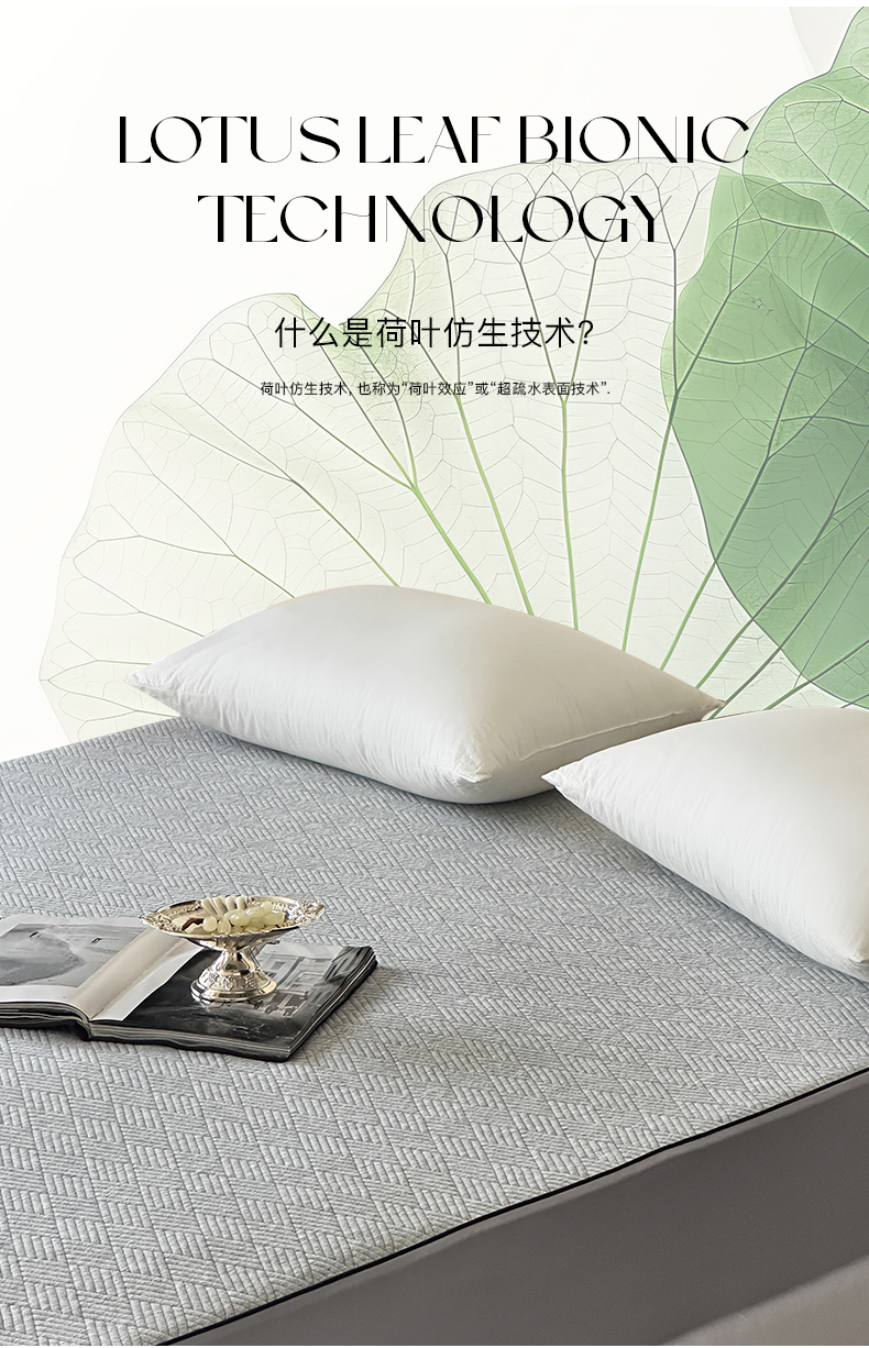 顶柔石墨烯三防床笠JJ6222.,面料采用荷叶仿生防水技术,复合层采用PU膜防水,双重防水技术