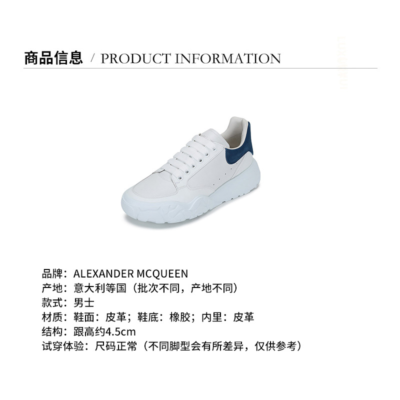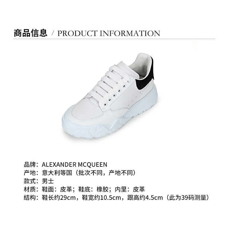 2021春夏 Alexander McQueen/亚历山大麦昆 男士皮革系带休闲运动鞋 634619 WHZ9小白鞋