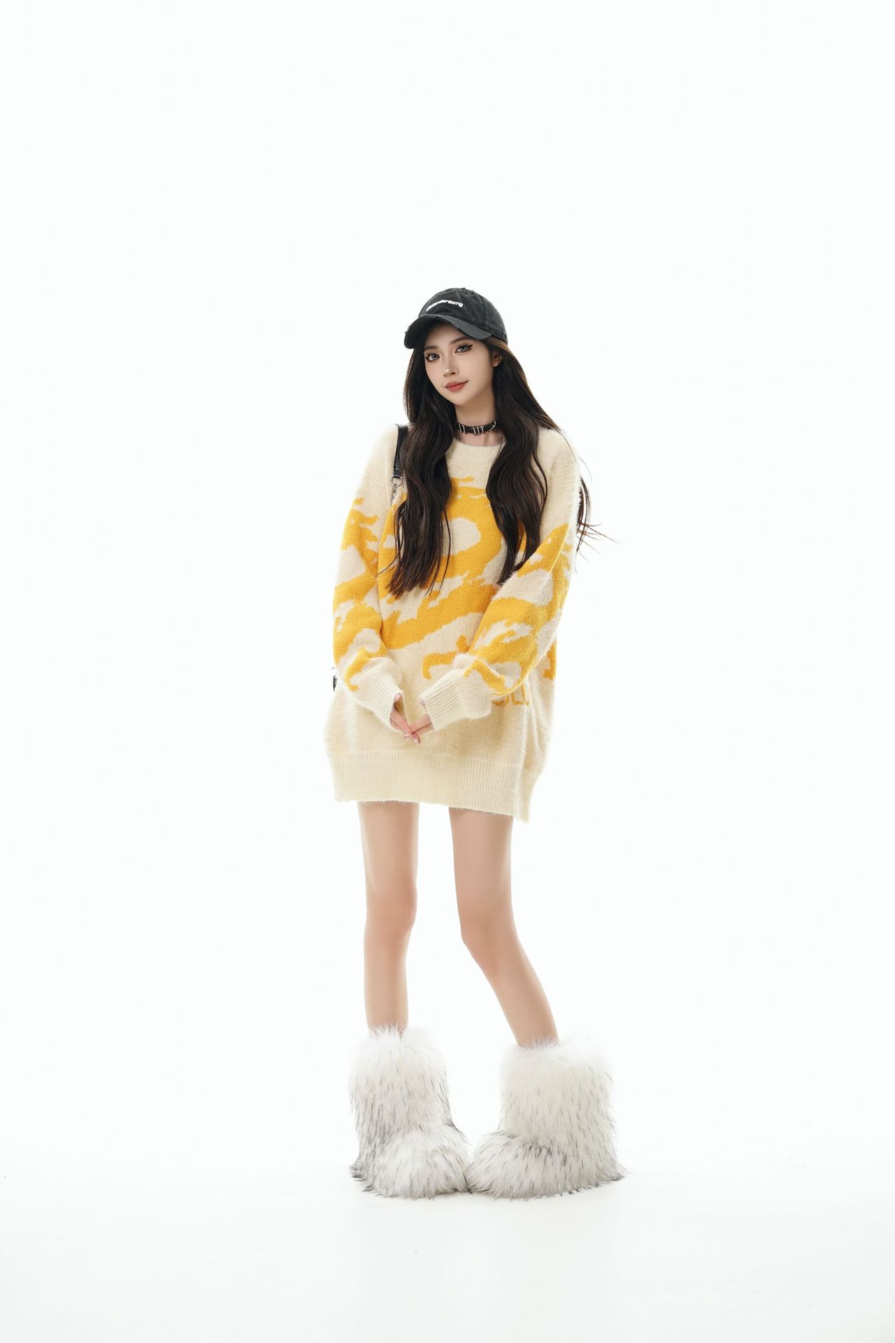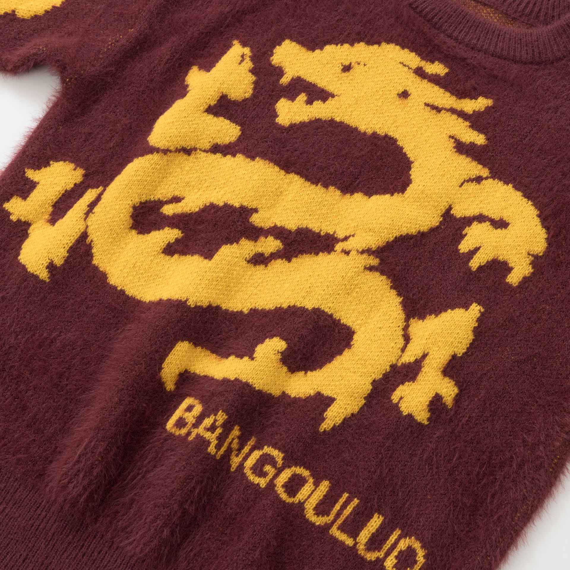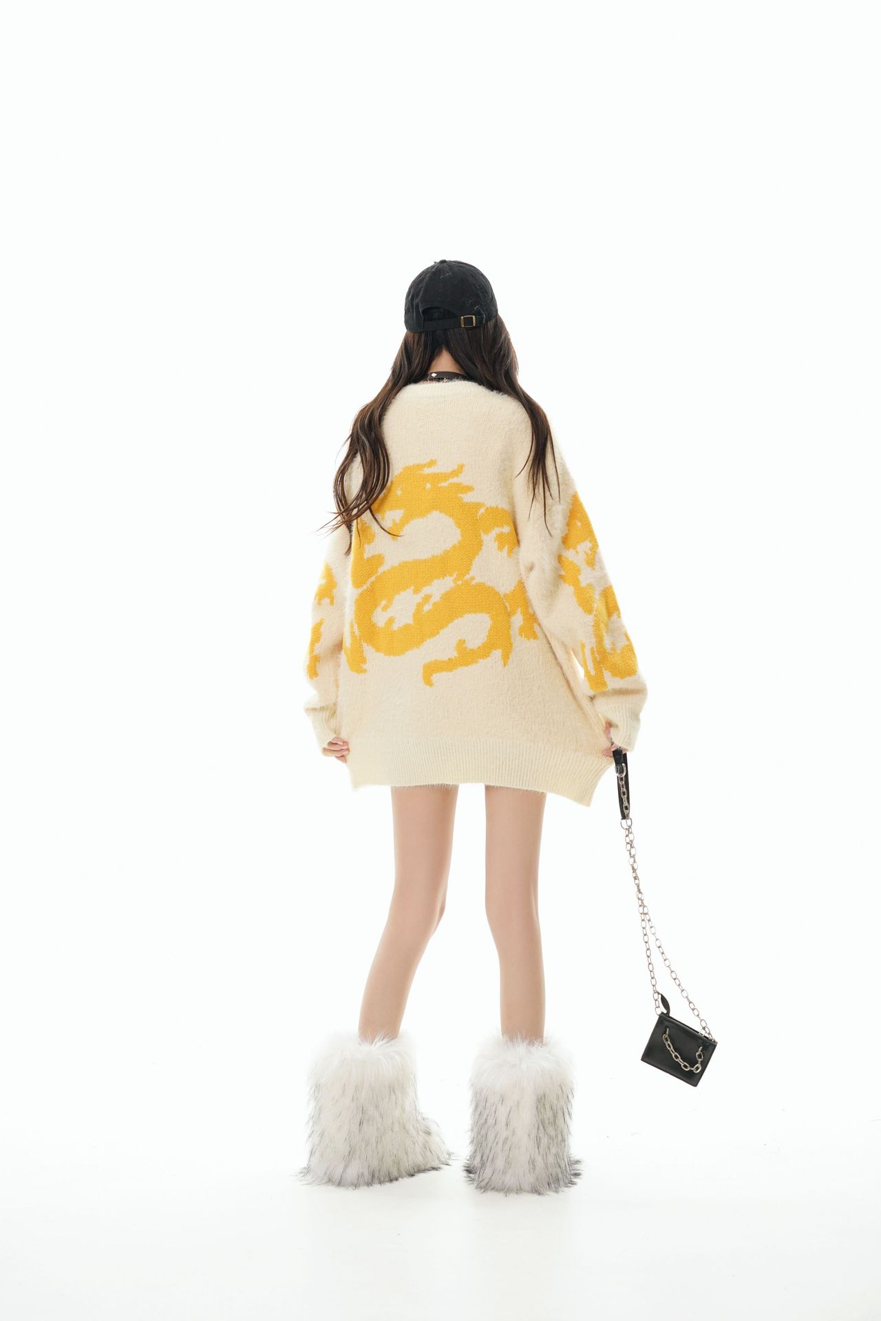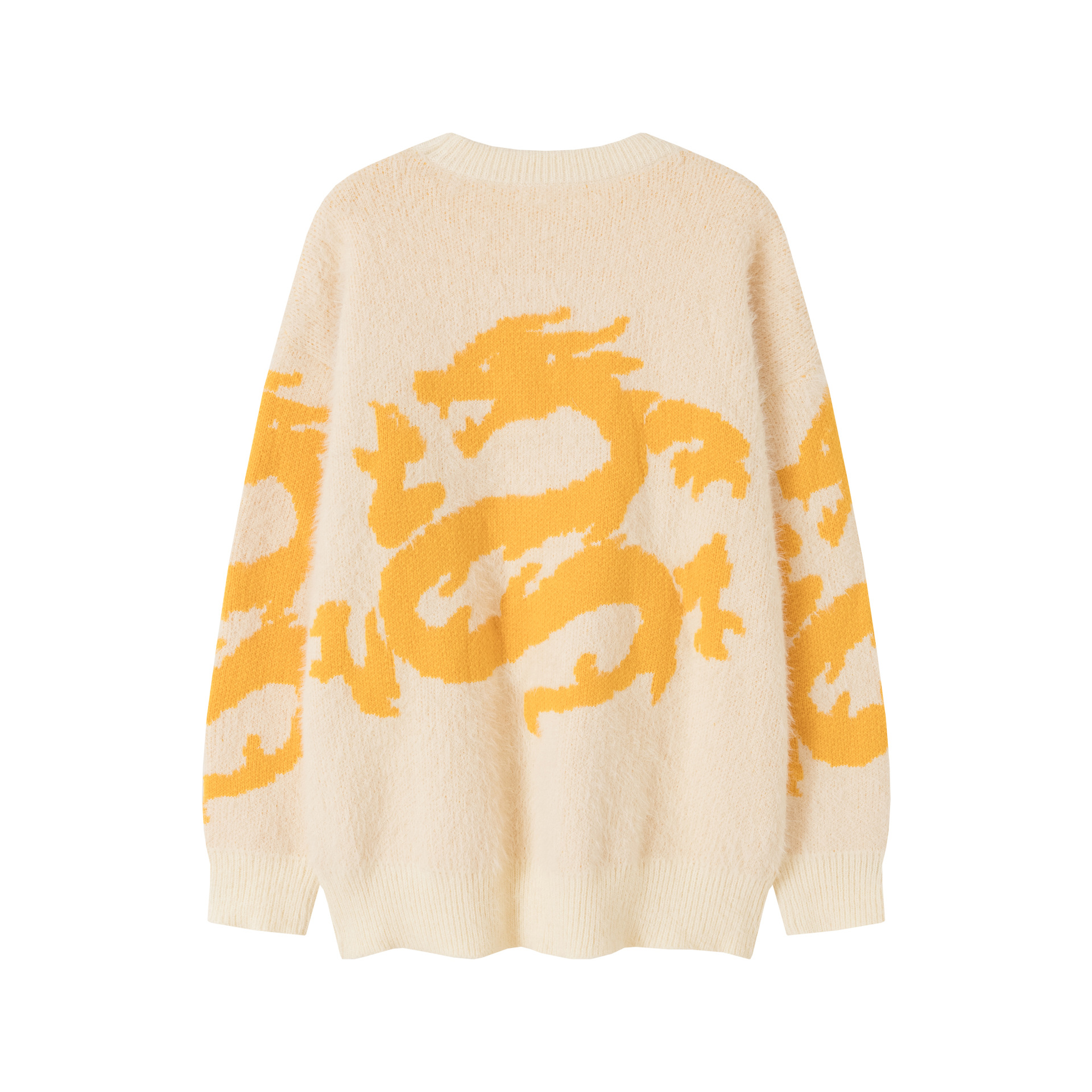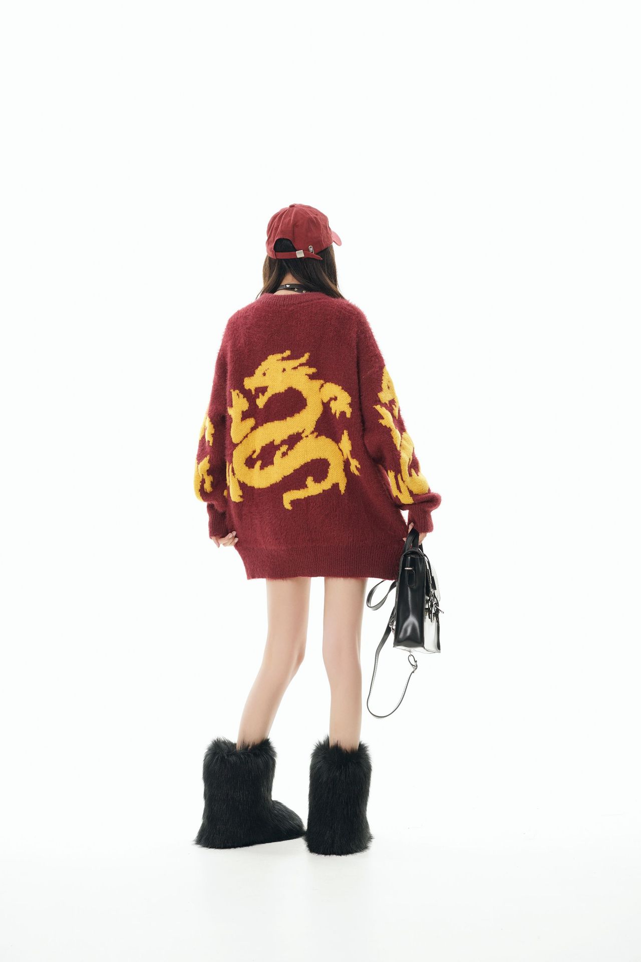 秋冬新款实拍宽松情侣版龙年提花圆领针织毛衣