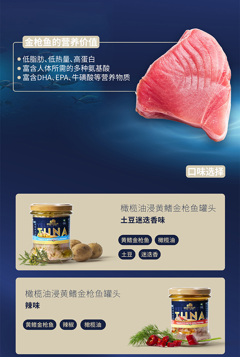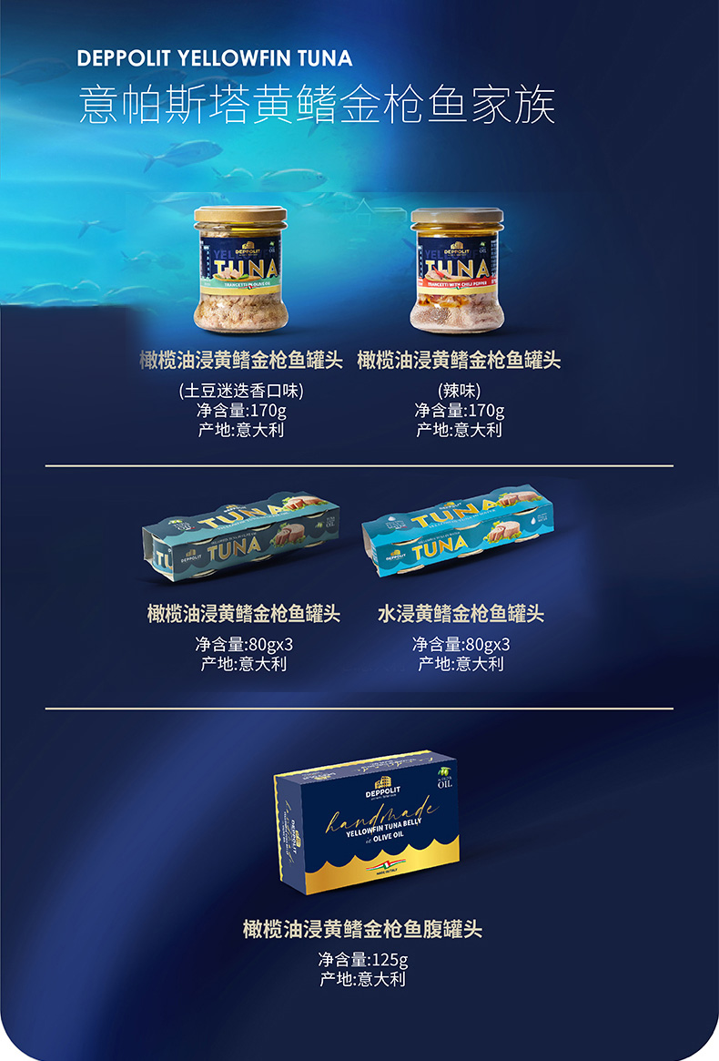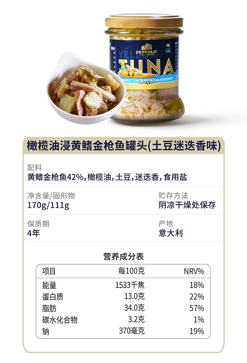 意帕斯塔橄榄油浸黄鳍金枪鱼罐头 土豆迷迭香味&辣味170g&金枪鱼腹罐头125g