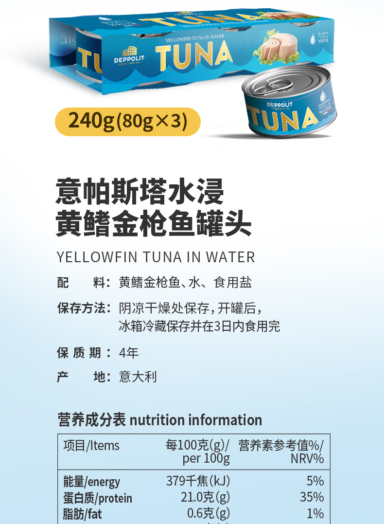 水浸黄鳍金枪鱼罐头