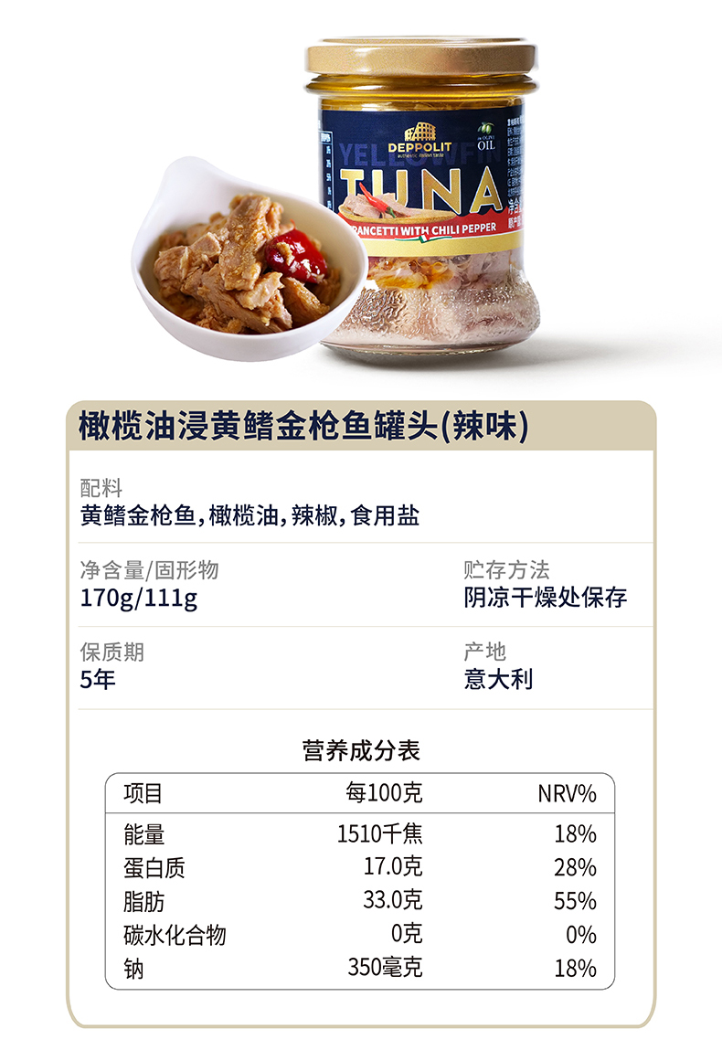 辣味黄鳍金枪鱼罐头:
