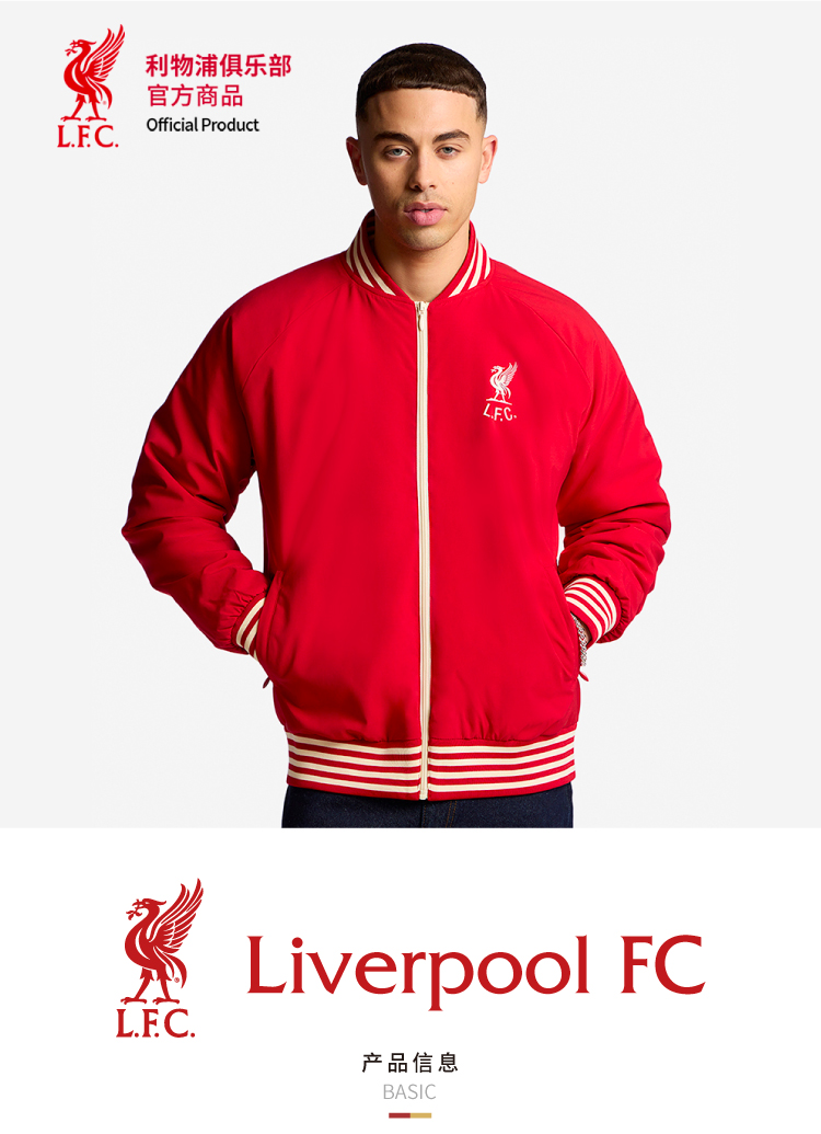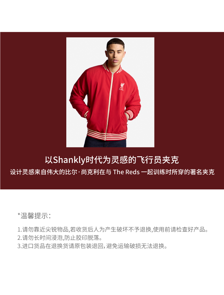 【官网同款】利物浦俱乐部 | 春季红色香克利飞行夹克外套刺绣