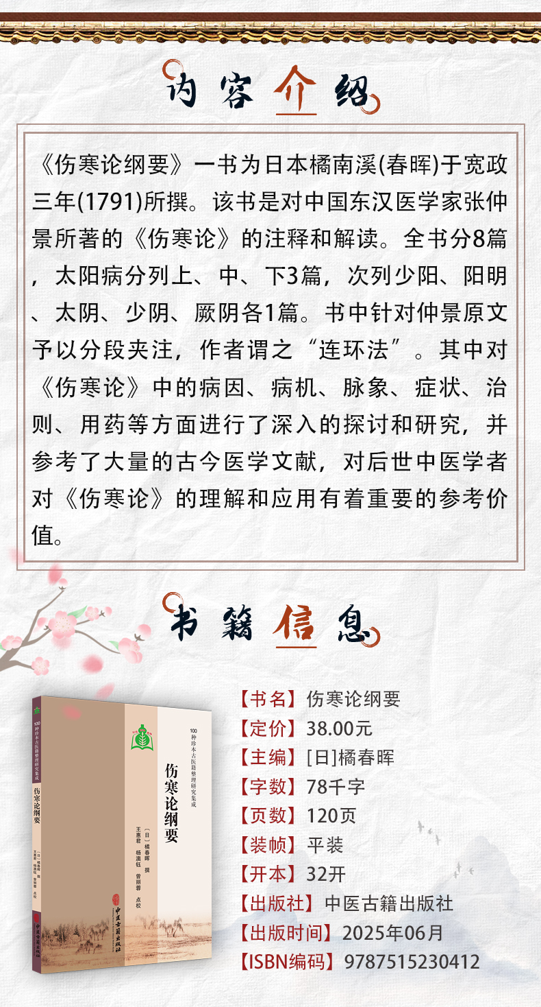 伤寒论纲要 100种珍本古医籍整理研究集成 [日]橘春晖 撰 王惠君 杨澳钰 曾丽蓉点校 辨太阳脉证并治9787515230412中医古籍出版社