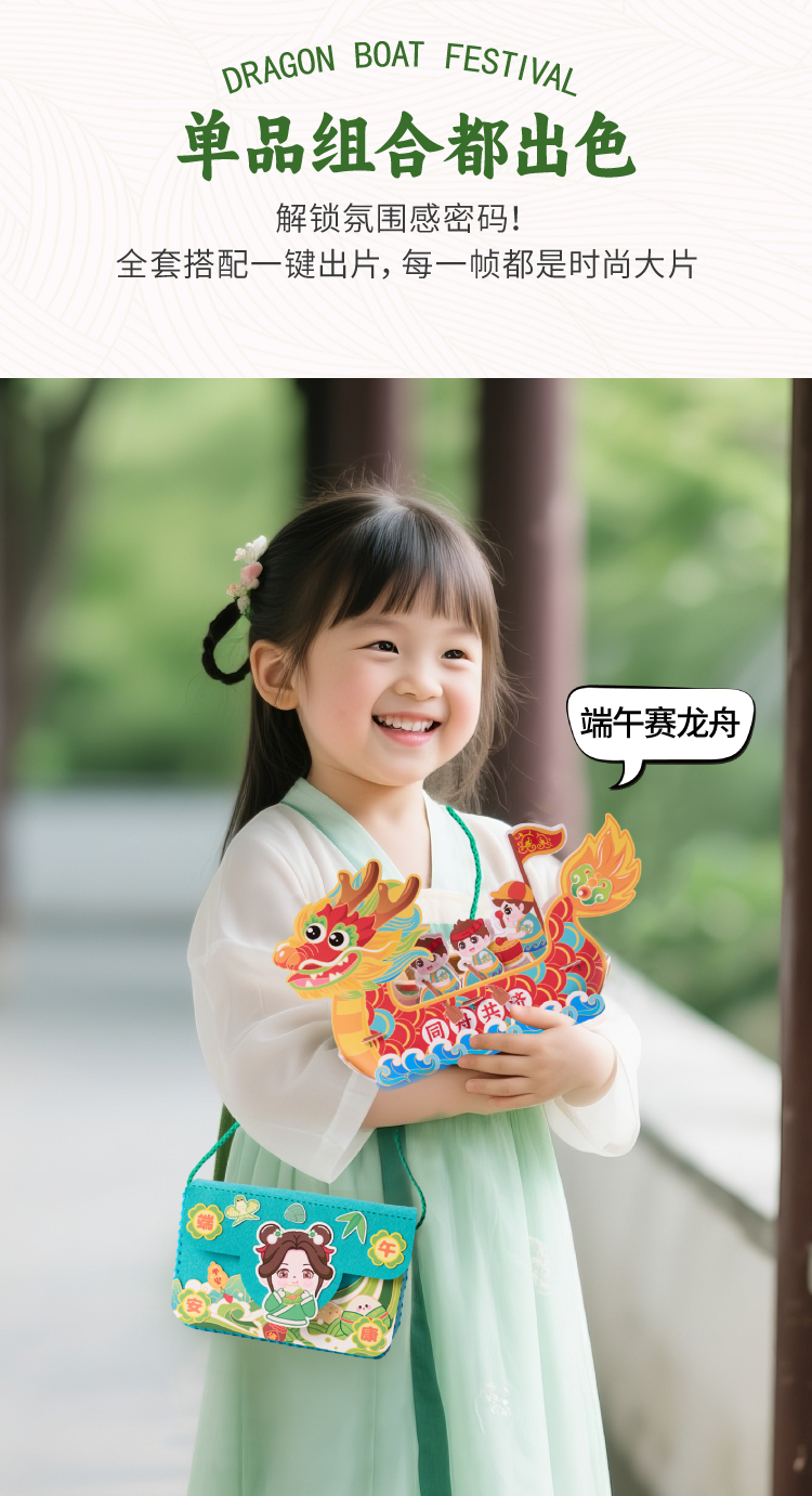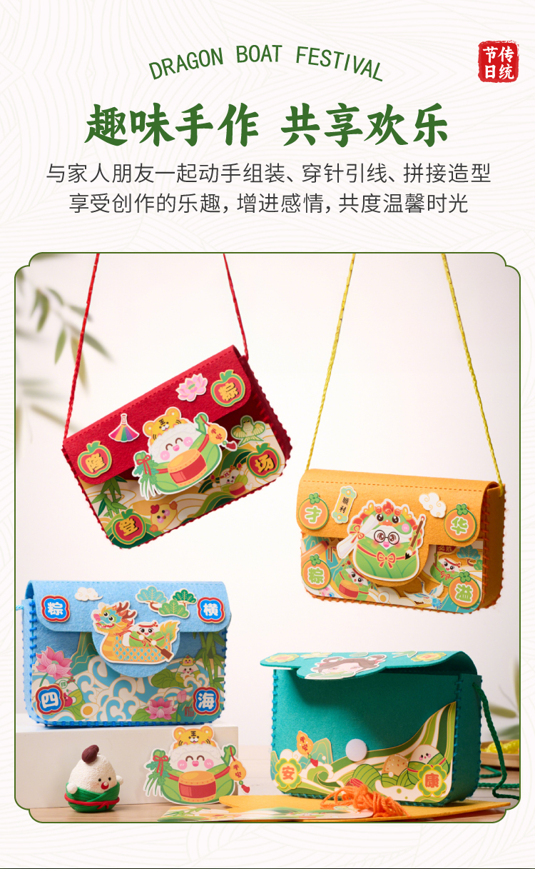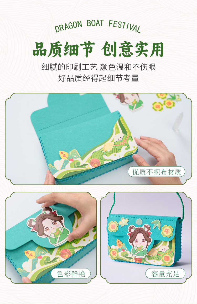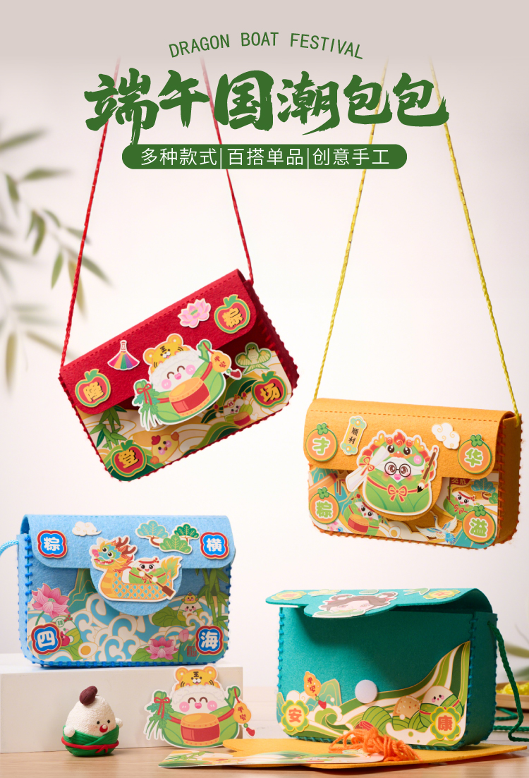 端午节礼物手工diy国潮包包儿童制作材料包幼儿园不织布龙舟背包