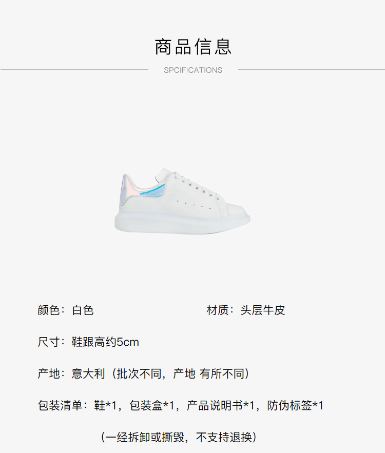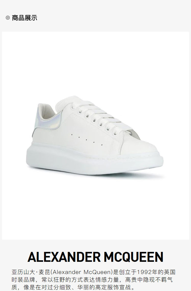 ALEXANDER MCQUEEN 亚历山大.麦昆 男士镭射彩尾运动鞋小白鞋 白色 561580 WHVI5