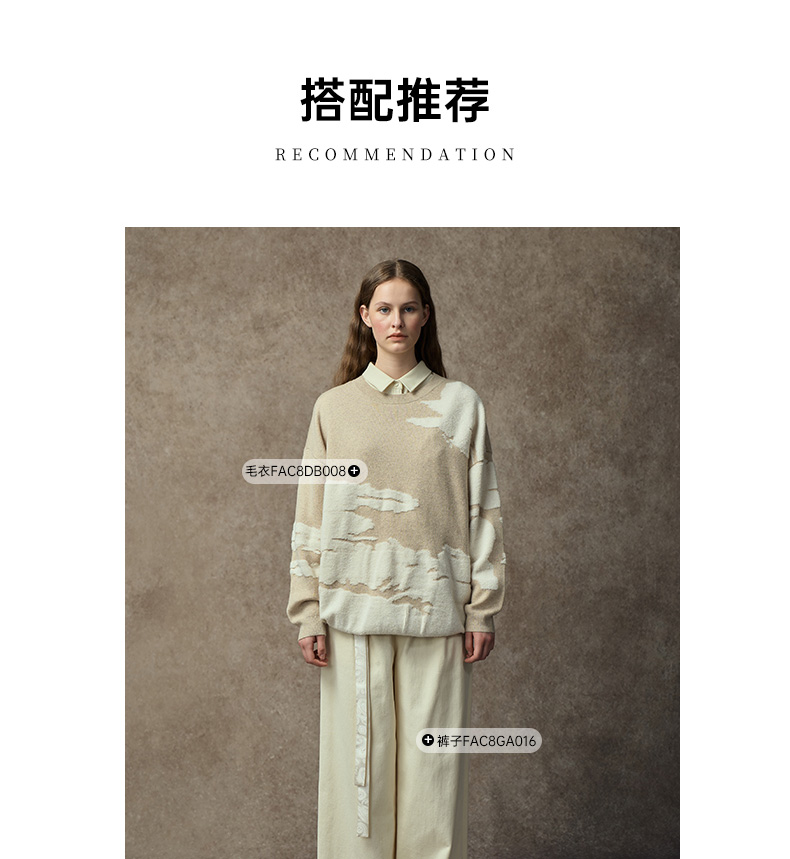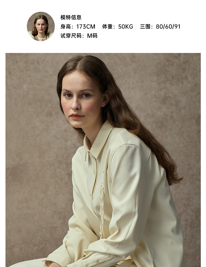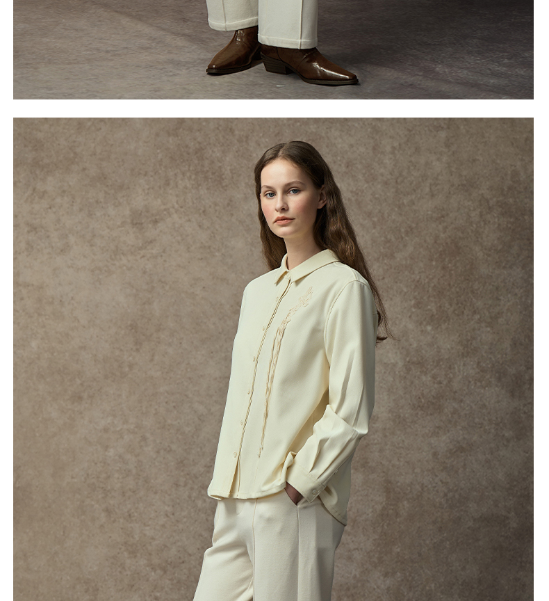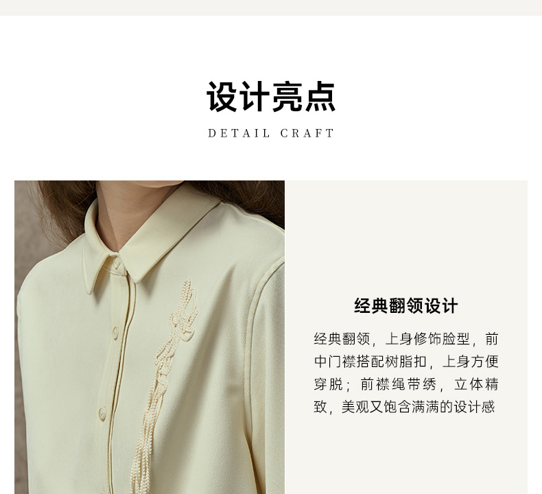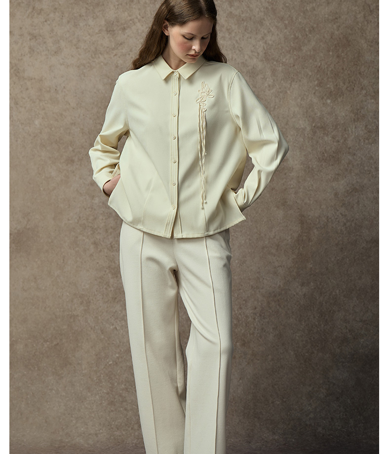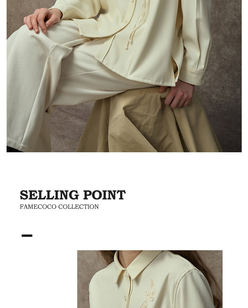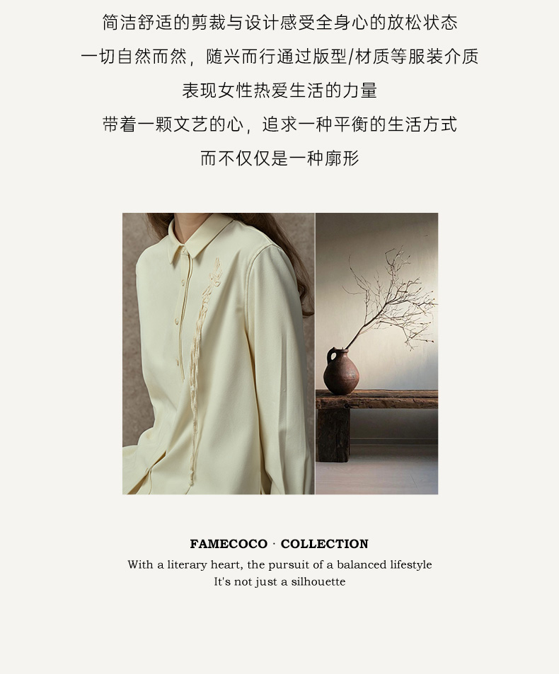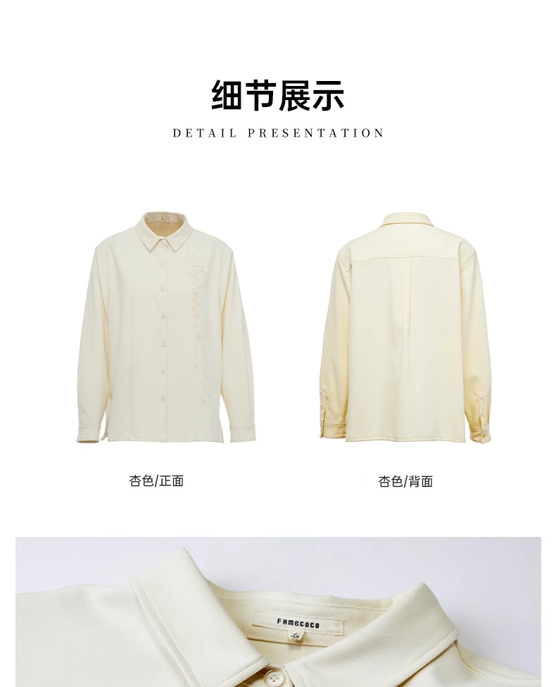 Famecoco范可儿绣花磨毛斜纹衬衣宽松直身慵懒风衬衫简约新中式FAC8BH011