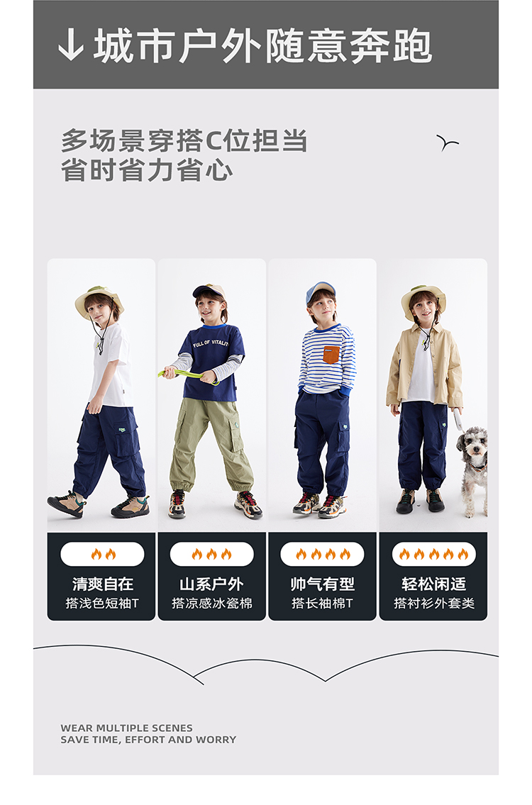 【面布拒水速干 耐磨抗造】儿童机能户外工装口袋束脚裤PCK2417