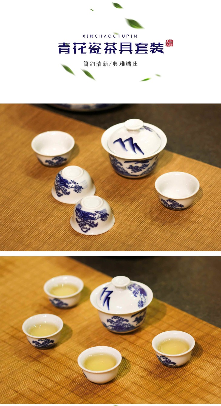 青花瓷茶具六件套 山水风景直径18cm 功夫茶具沉香叶茶套装 90022920