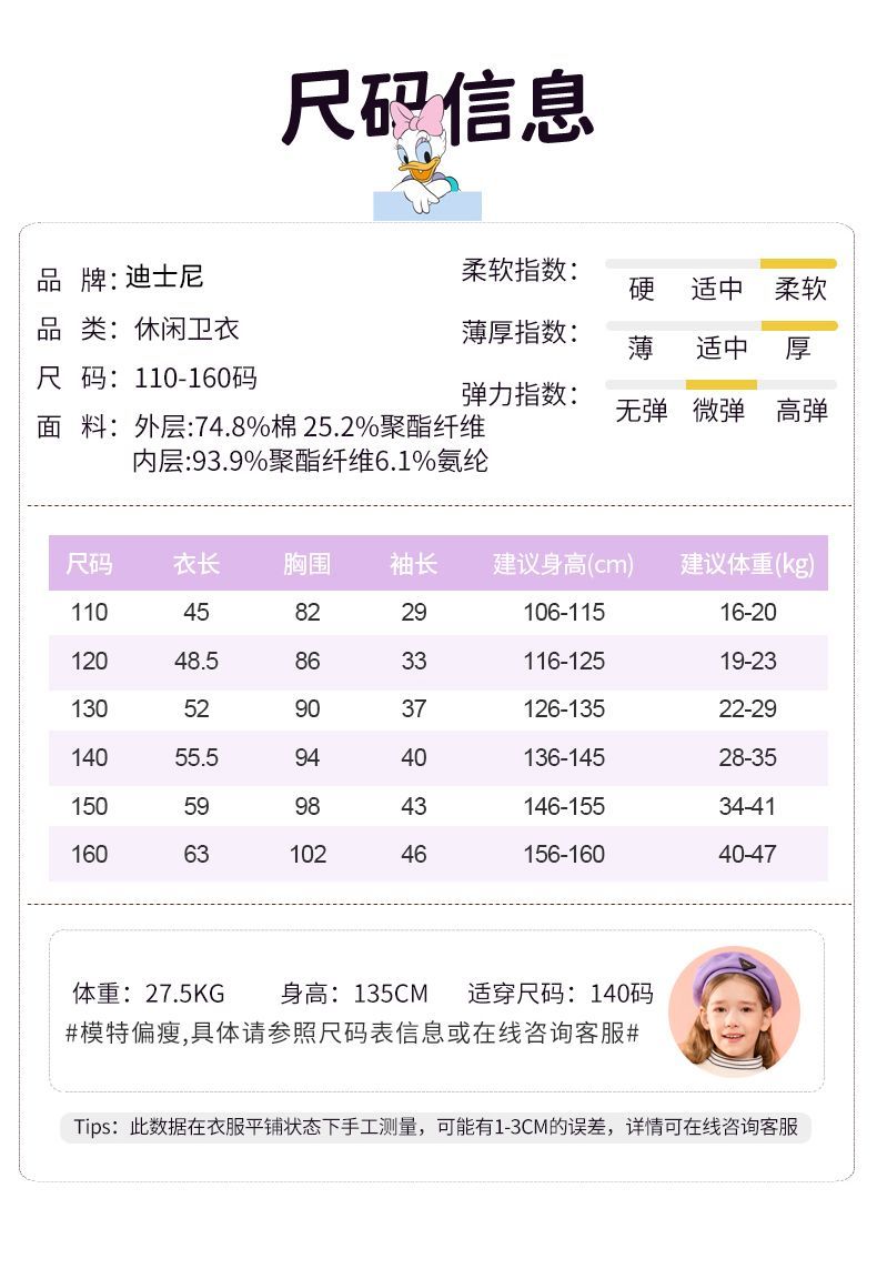 迪士尼女童冬季卫衣加绒新款洋气保暖儿童卫衣女孩中大童外穿冬装