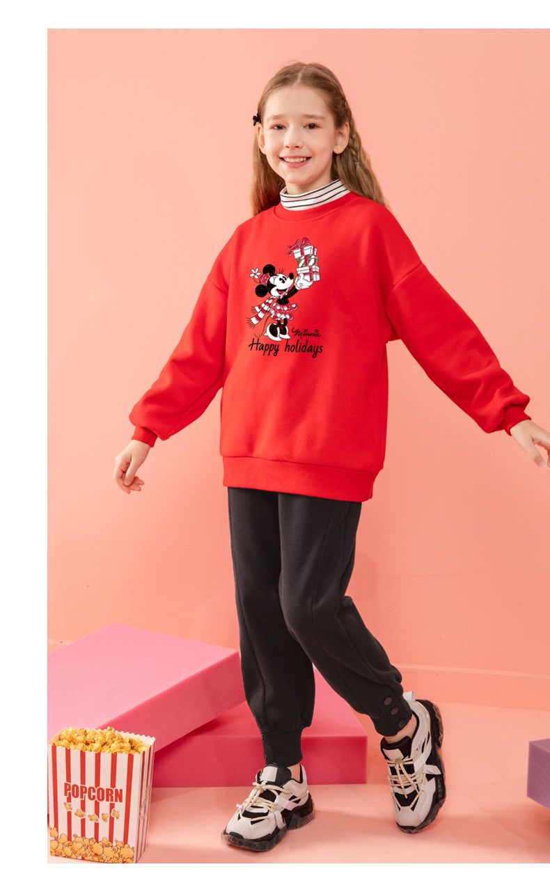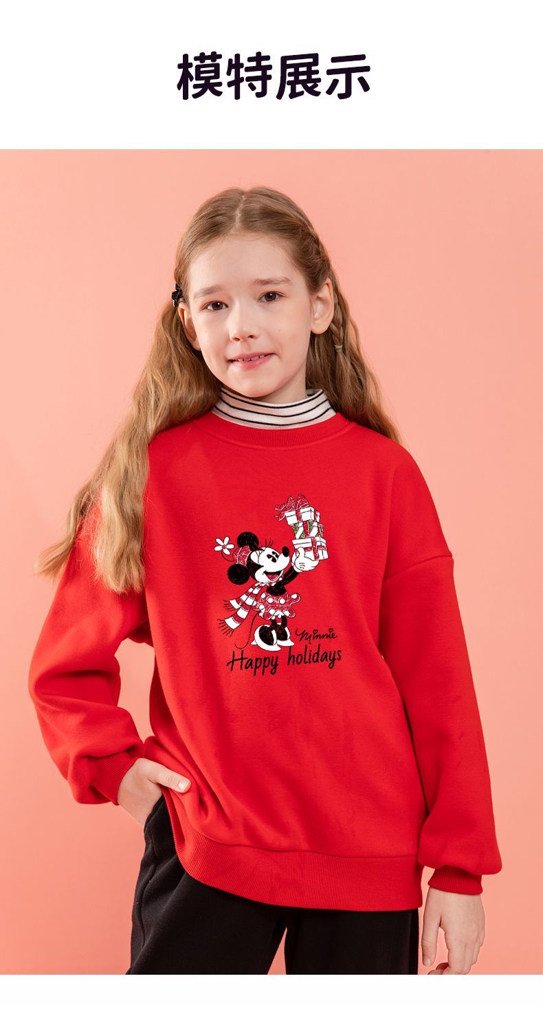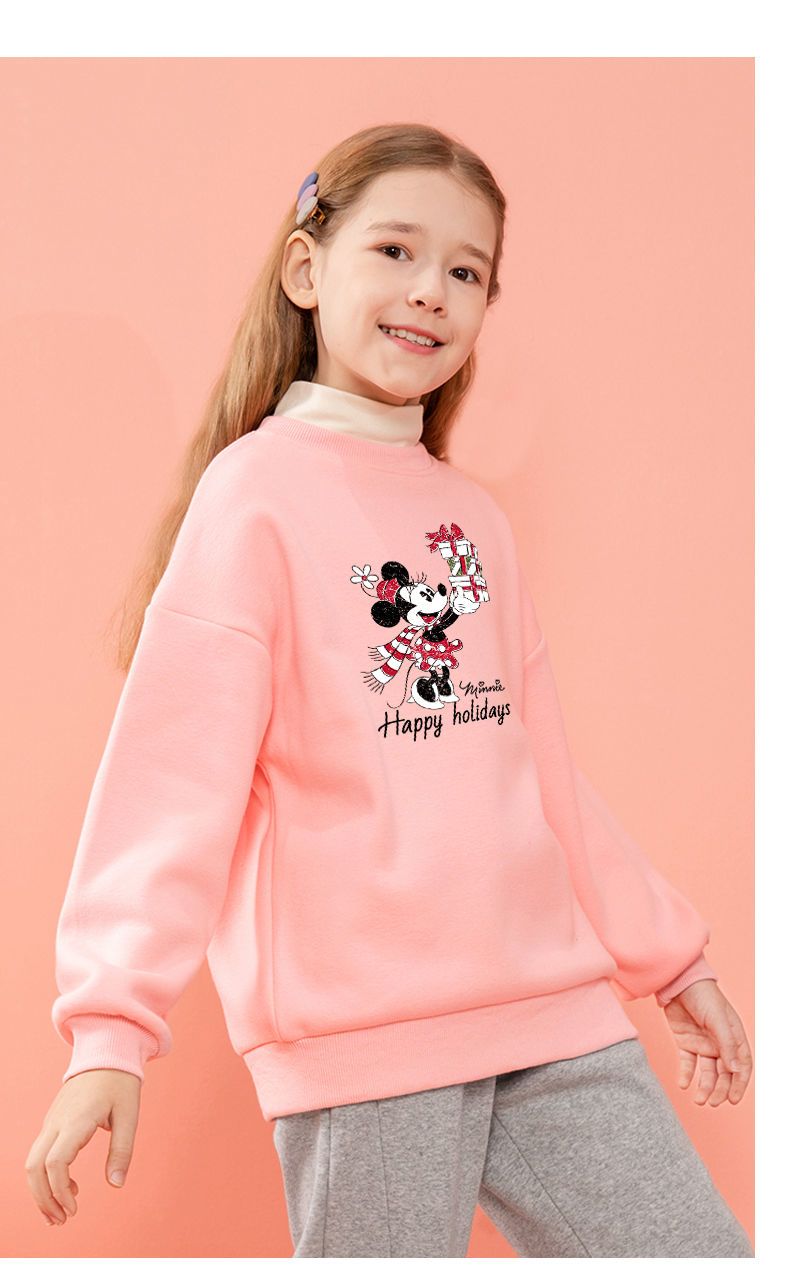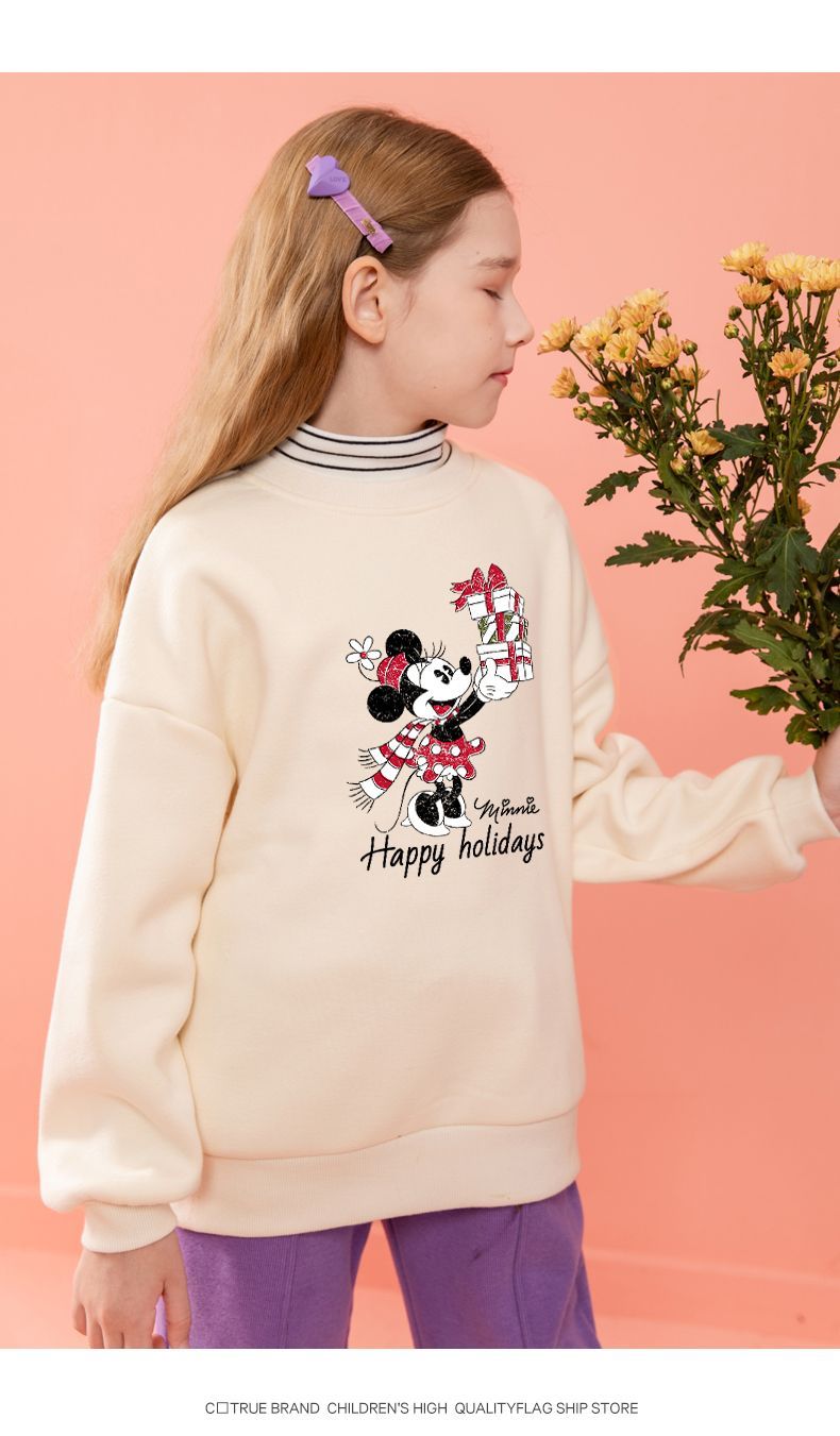 迪士尼女童加绒卫衣洋气新款冬季儿童打底衫女大童一体绒新年装潮
