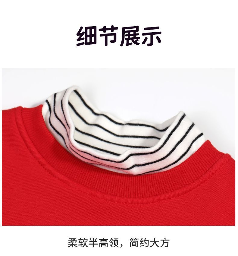 贝田冬季男童加绒卫衣半高领加厚一体绒儿童长袖圆领上衣打底衣服