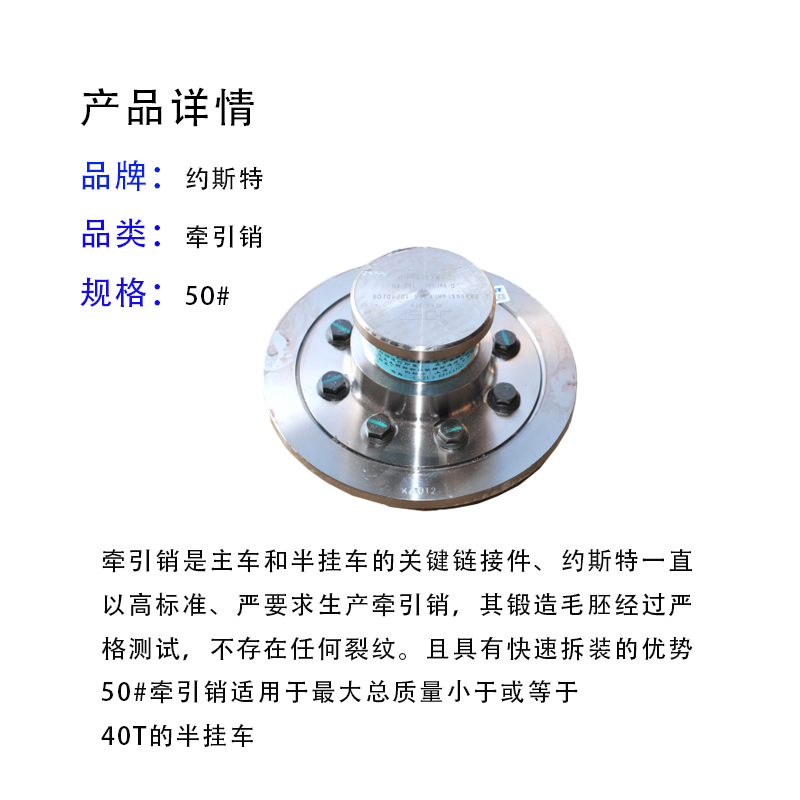 50#牵引销总成牵引销 10mm12mm约斯特JOSTKZ1010/KZ1012