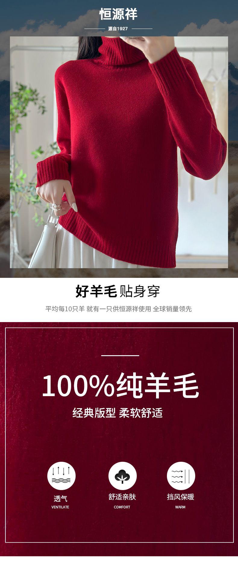 只需1️⃣3️⃣9️⃣(活动3天下架),恒源祥100%绵羊毛打底衫,喜欢中高领的姐妹们快来,性价比贼高,可贴身穿的,很好穿很好穿,配大衣、羽绒服都特别好配‼️