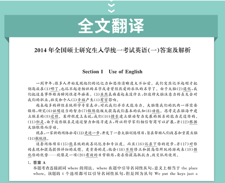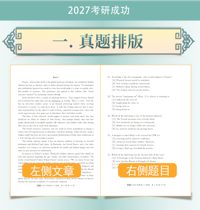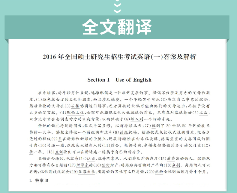 2027年考研英语一历年真题活页试卷07-16共10年答案解析阅读全文翻译