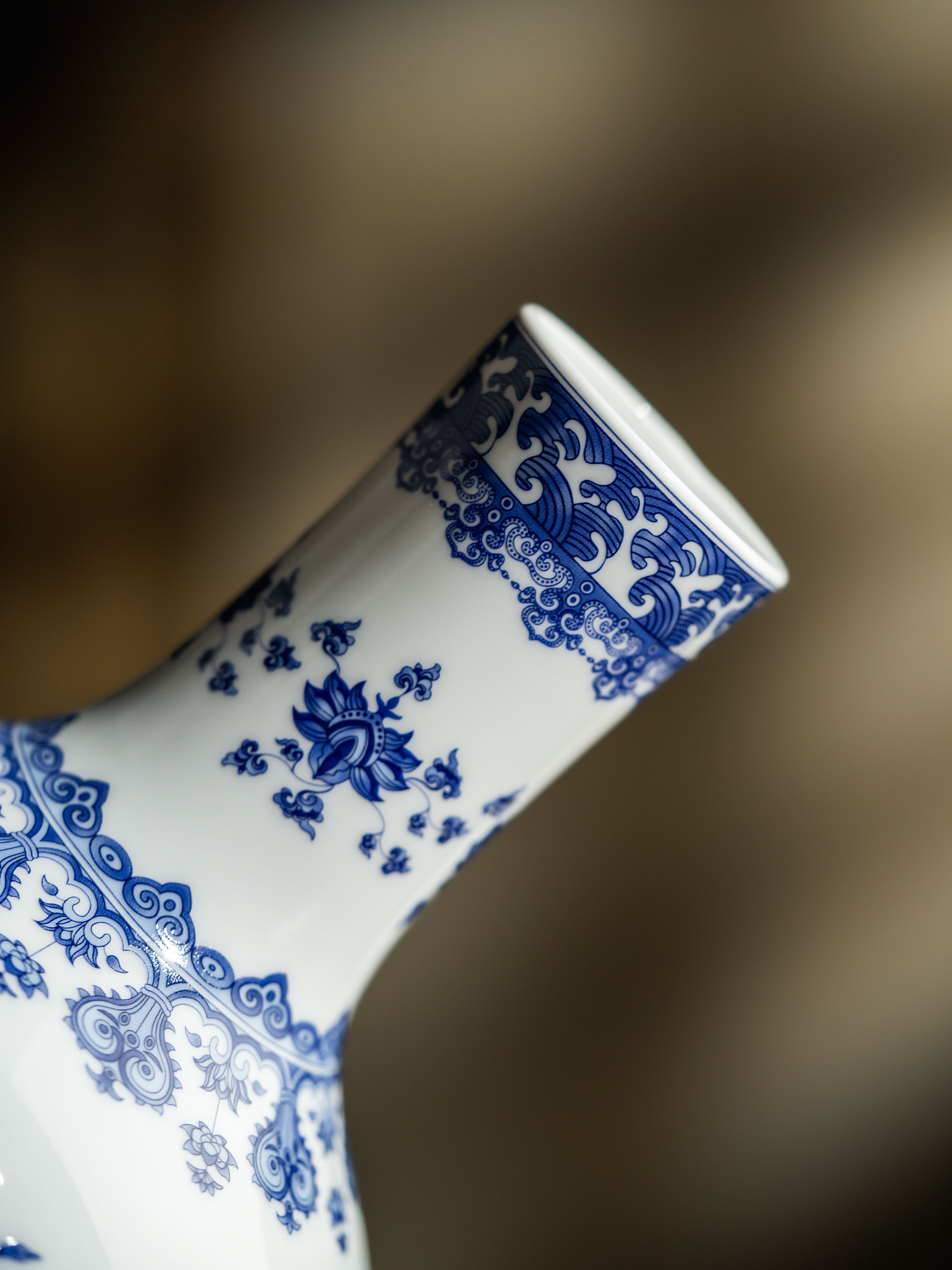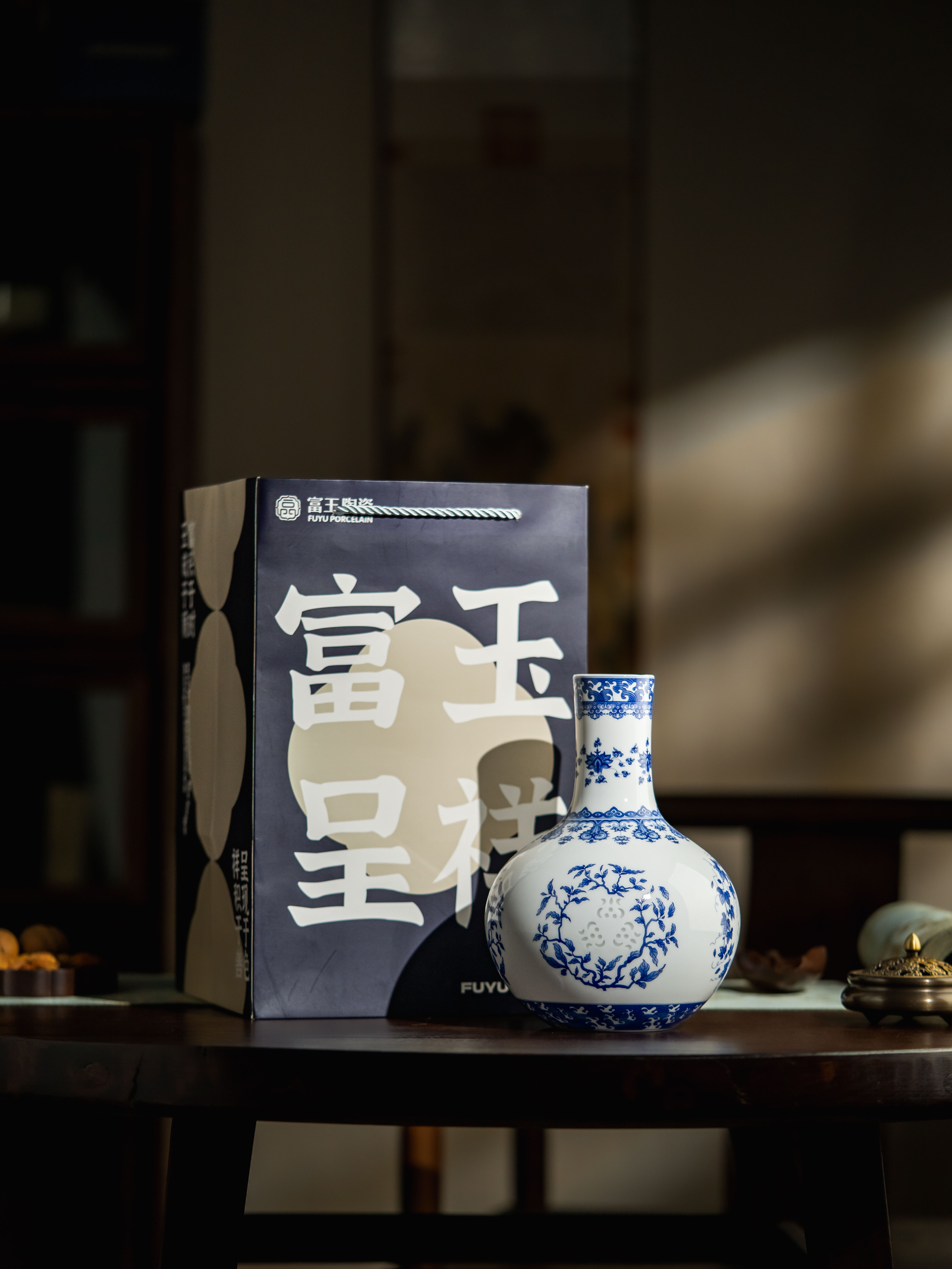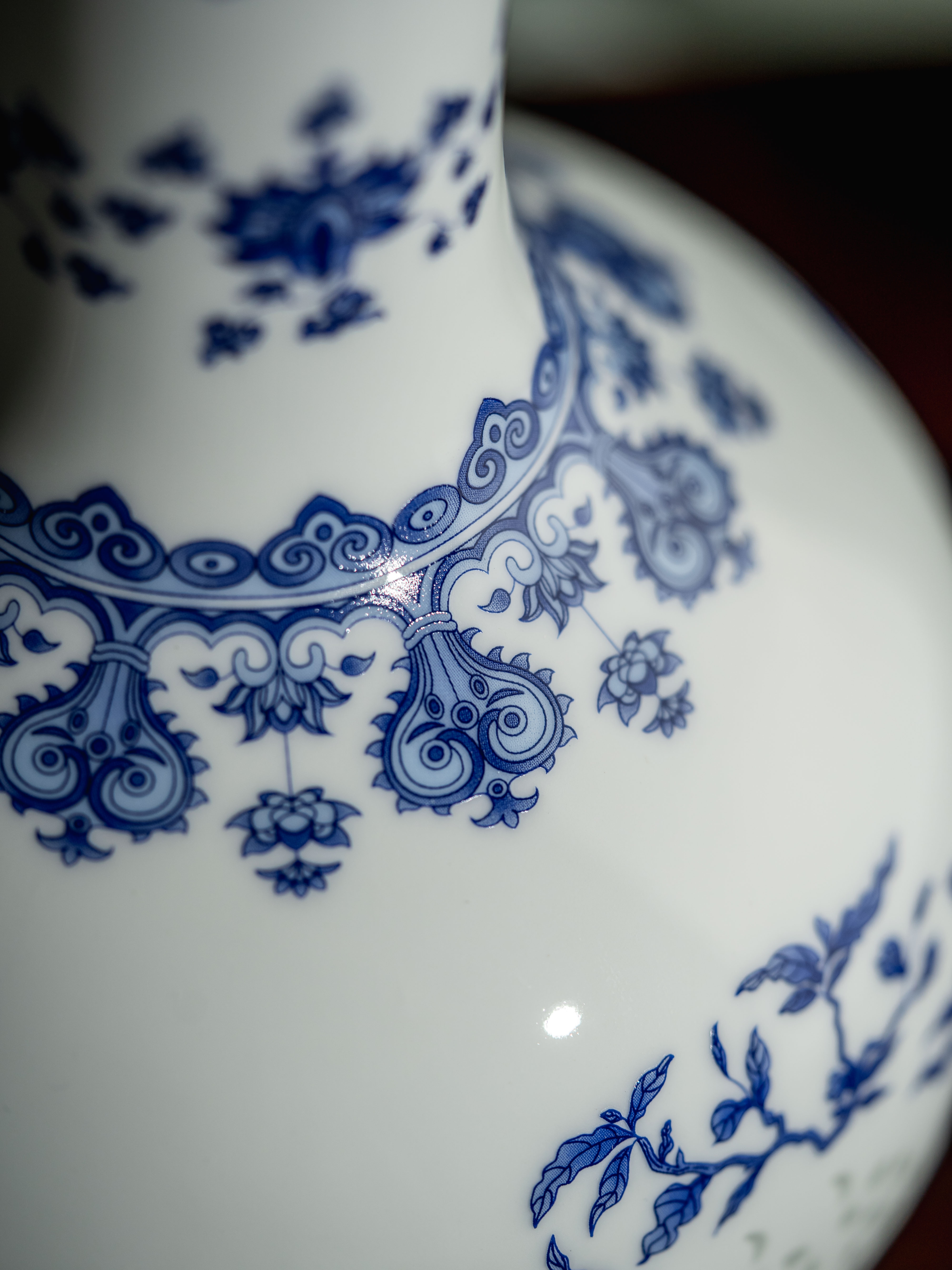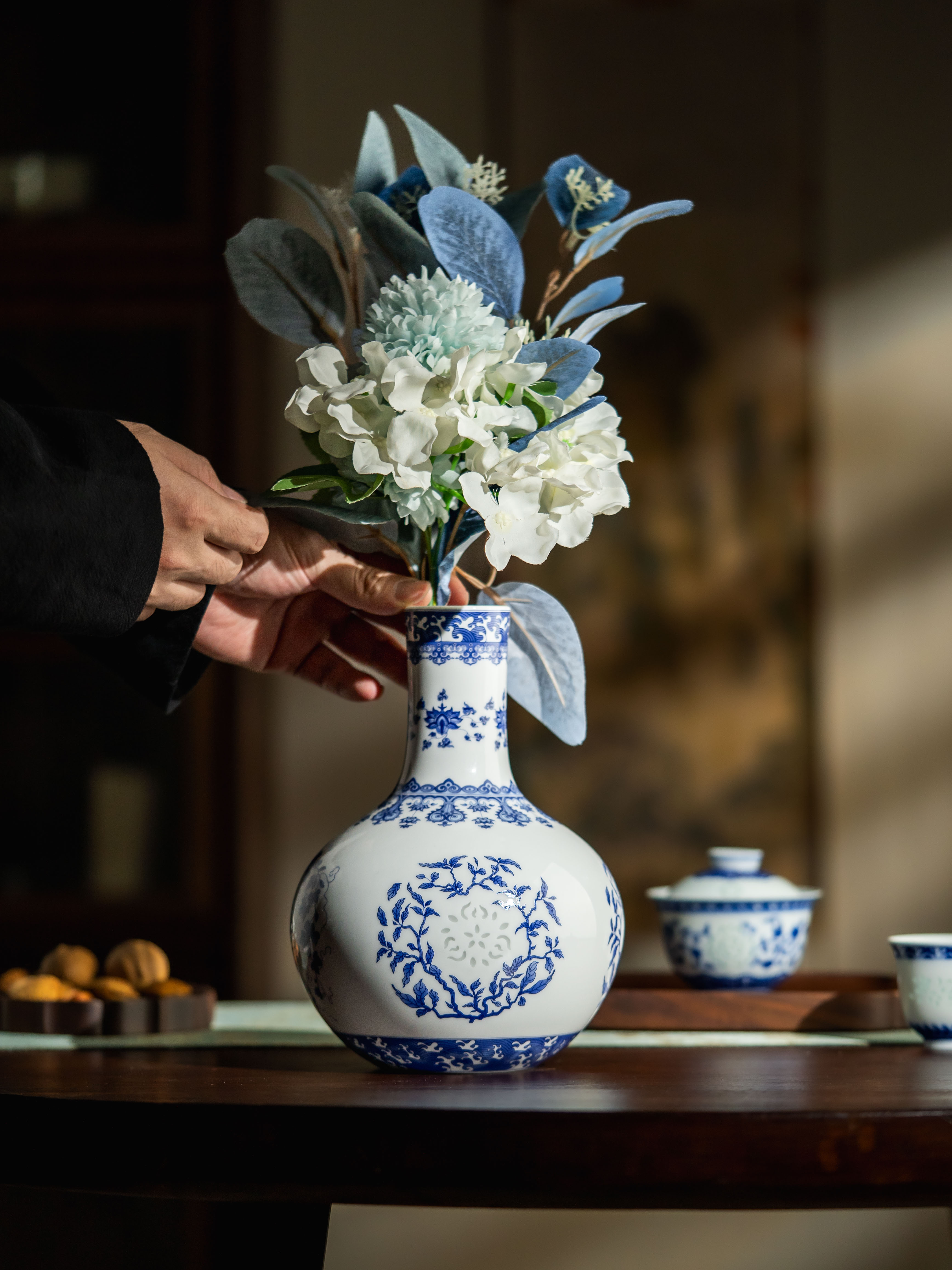 富玉 | 景德镇陶瓷花瓶中式青花玲珑客厅插花高档家居摆件四季丰华天球瓶