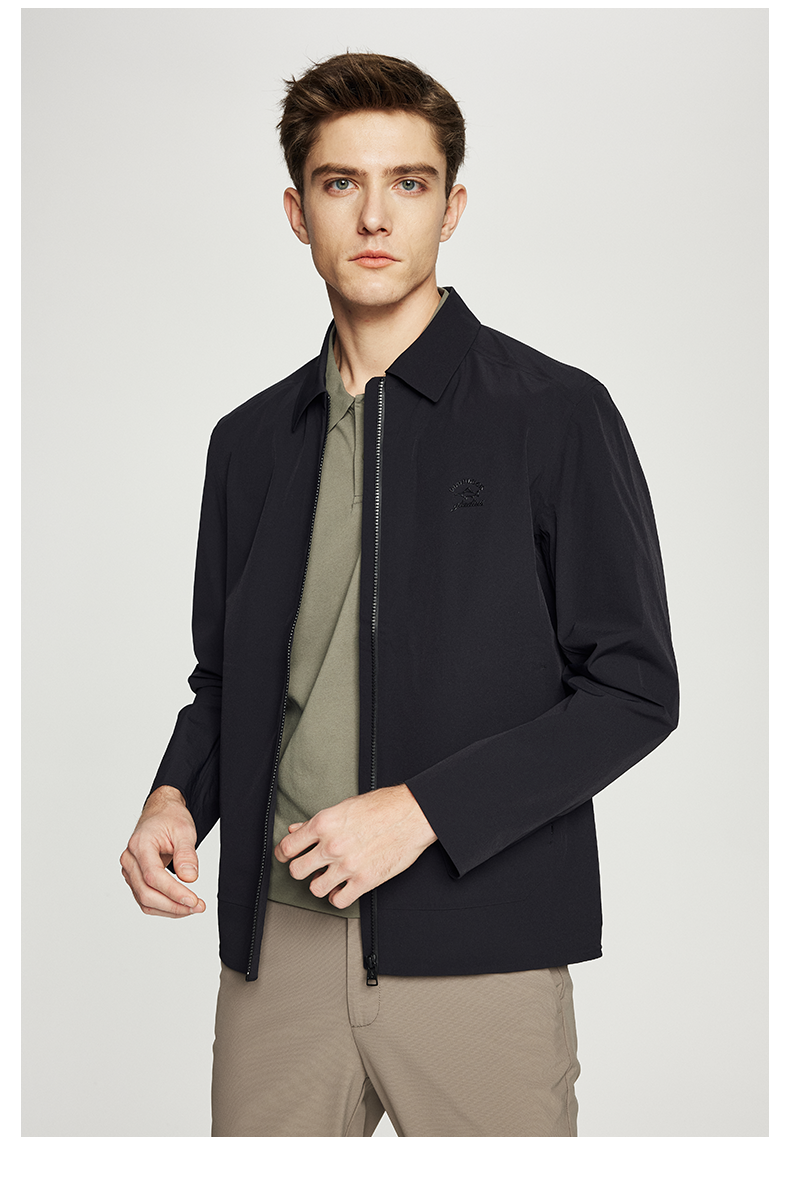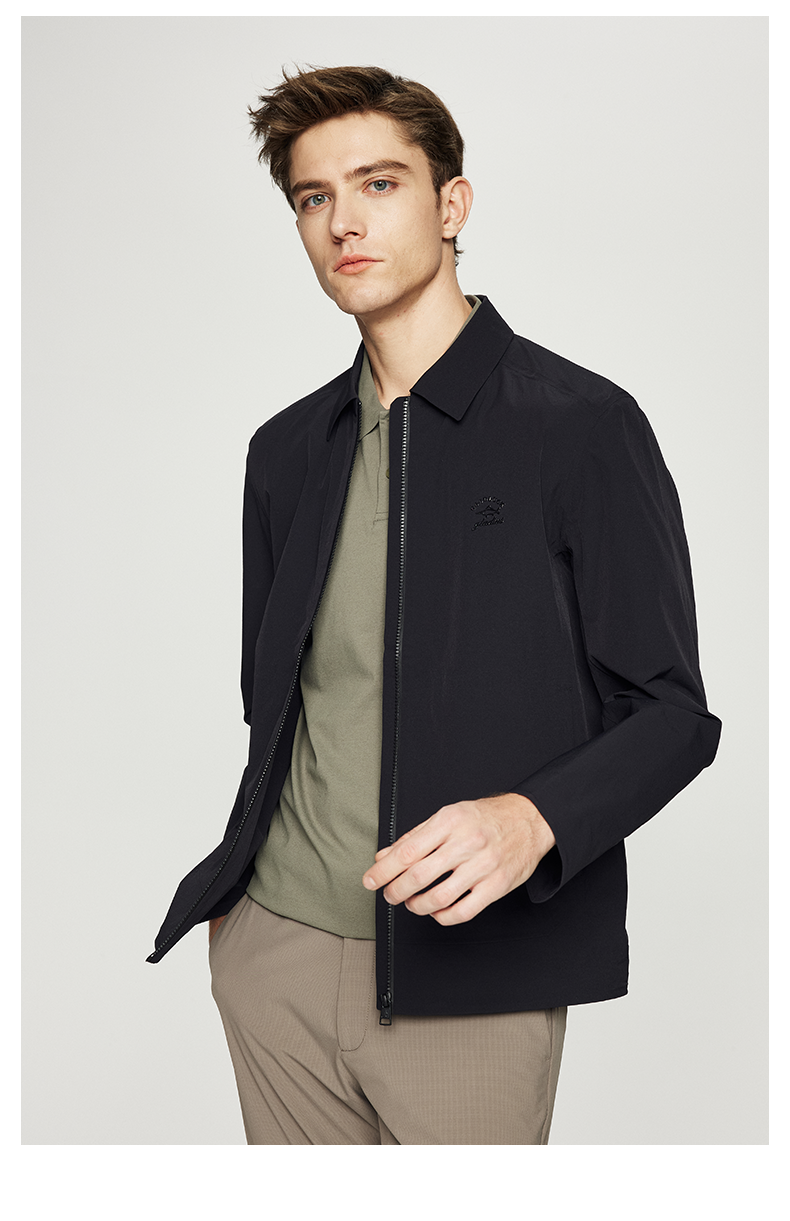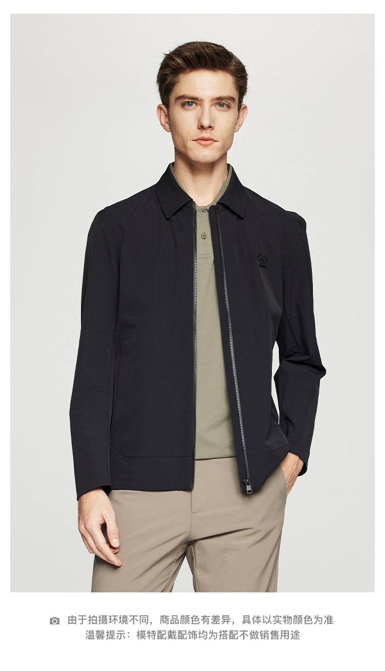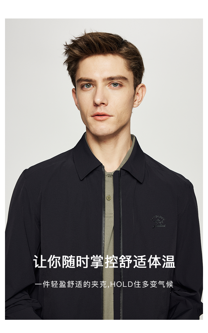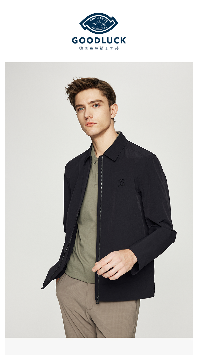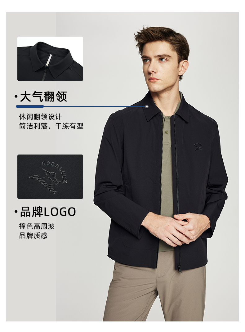 德鲨男装翻领夹克2026春季新款纯色休闲上衣男士短款外套
