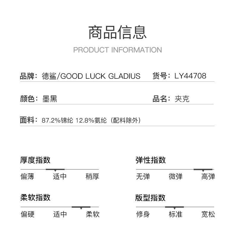 GOOD LUCK GLADIUS品牌由“浙江德鲨服饰有限公司”引进中国市场,经过多年发展,凭借完善的终端形象,规范化的销售管理,迅速赢得消费者的认可,引领国内消费流行,是成功人士首选男装品牌。
