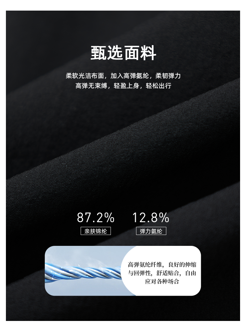 【铜氨纤维】德鲨鲨鱼男装黑色弹力休闲裤2026春夏新款百搭长裤子