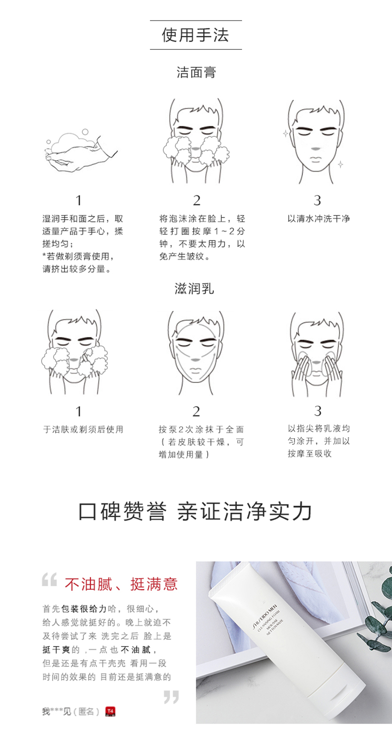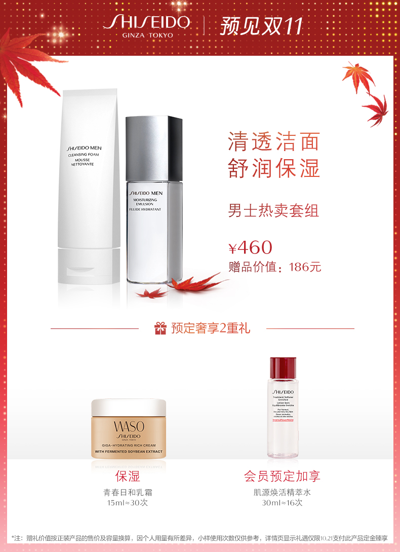 【双11抢先加购】资生堂男士护肤套装2件套 洁面+滋润乳 清爽控油JPY带授权招加盟代理
