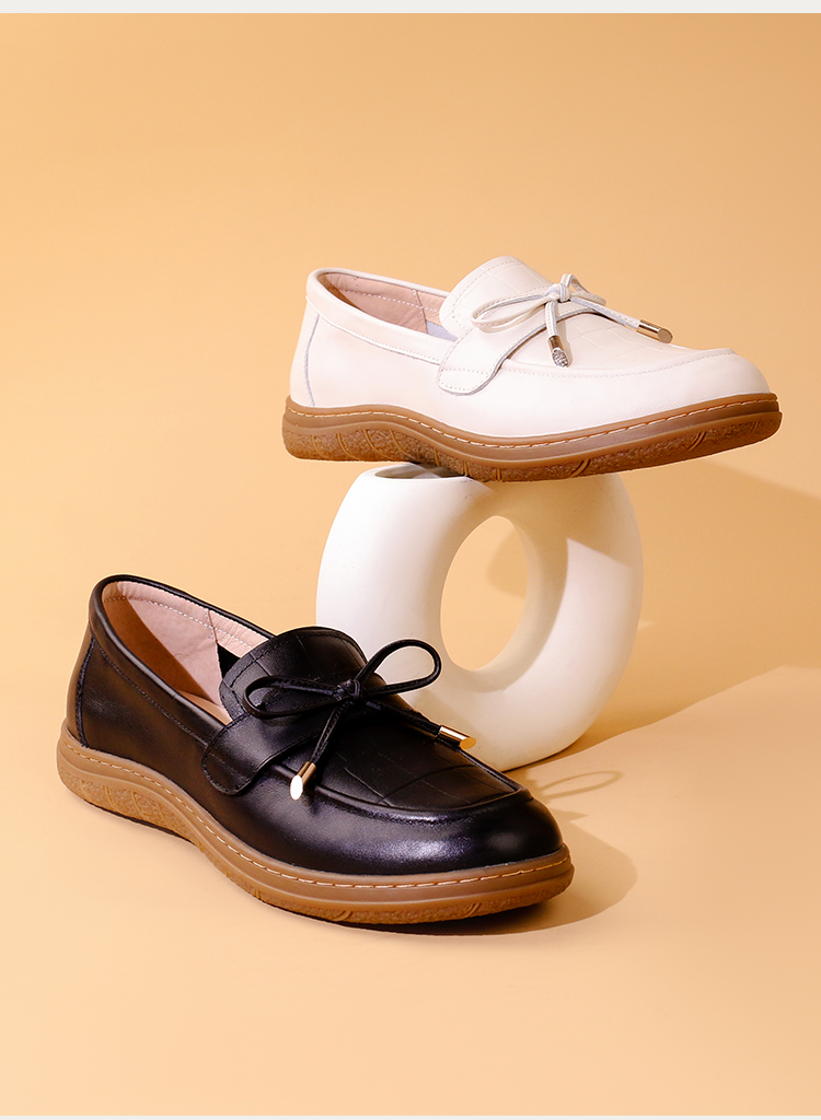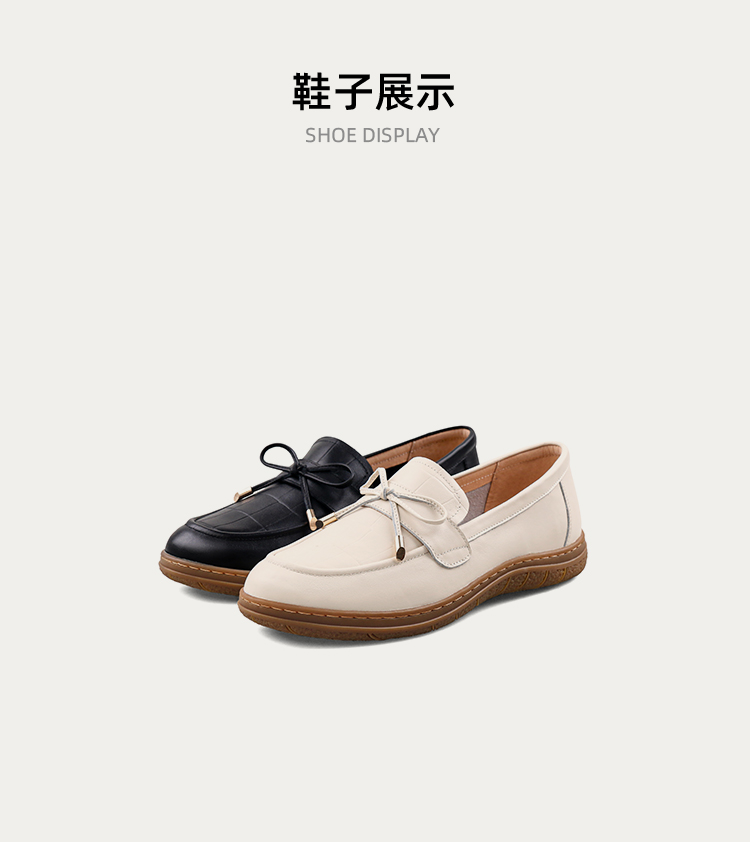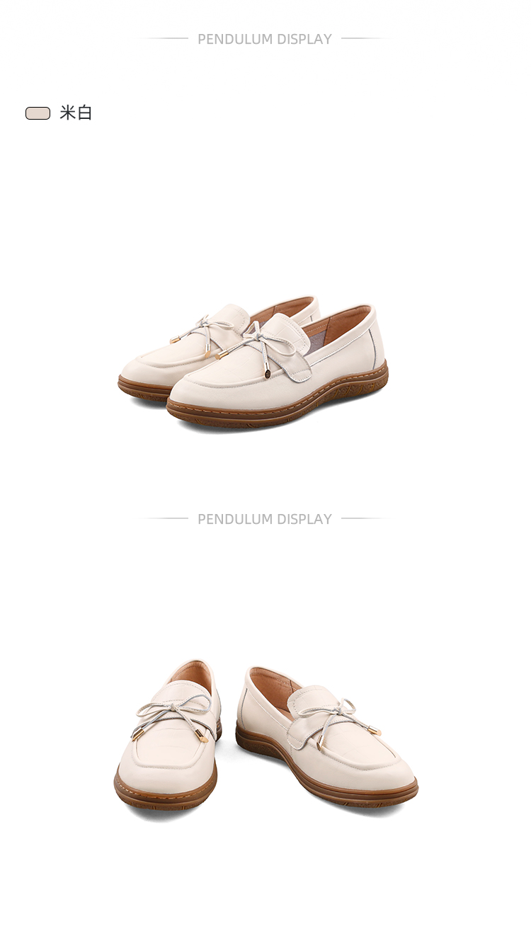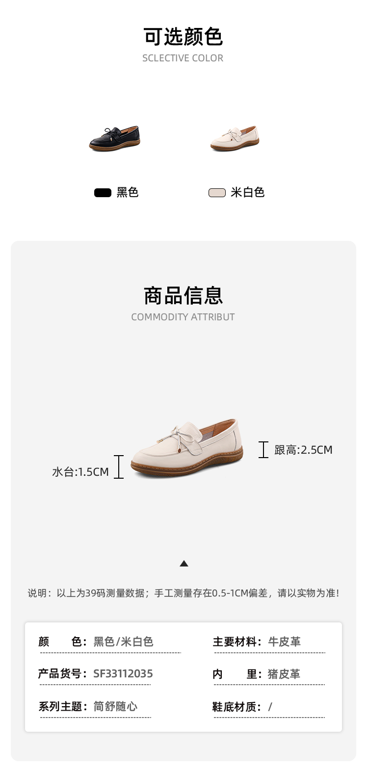 Safiya/索菲娅2023秋新款防滑平底蝴蝶结一脚蹬真皮单鞋 SF33112035