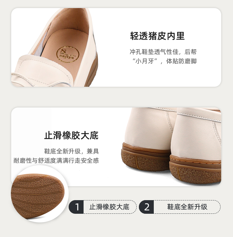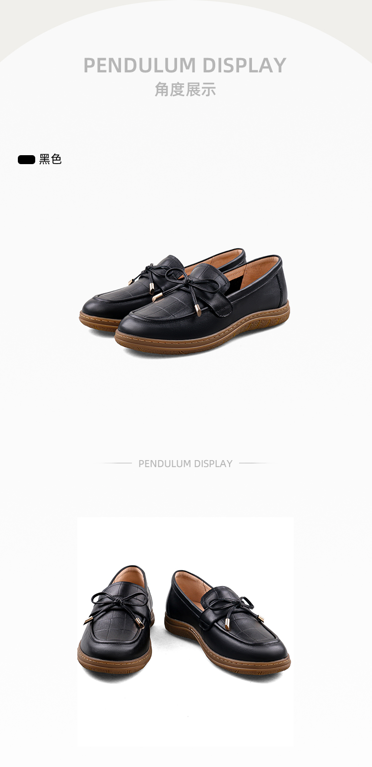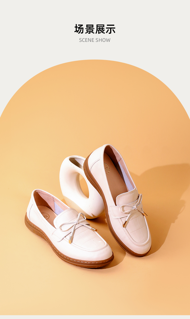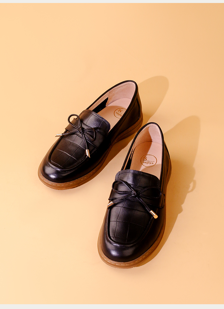 Safiya/索菲娅2023秋新款防滑平底蝴蝶结一脚蹬真皮单鞋 SF33112035