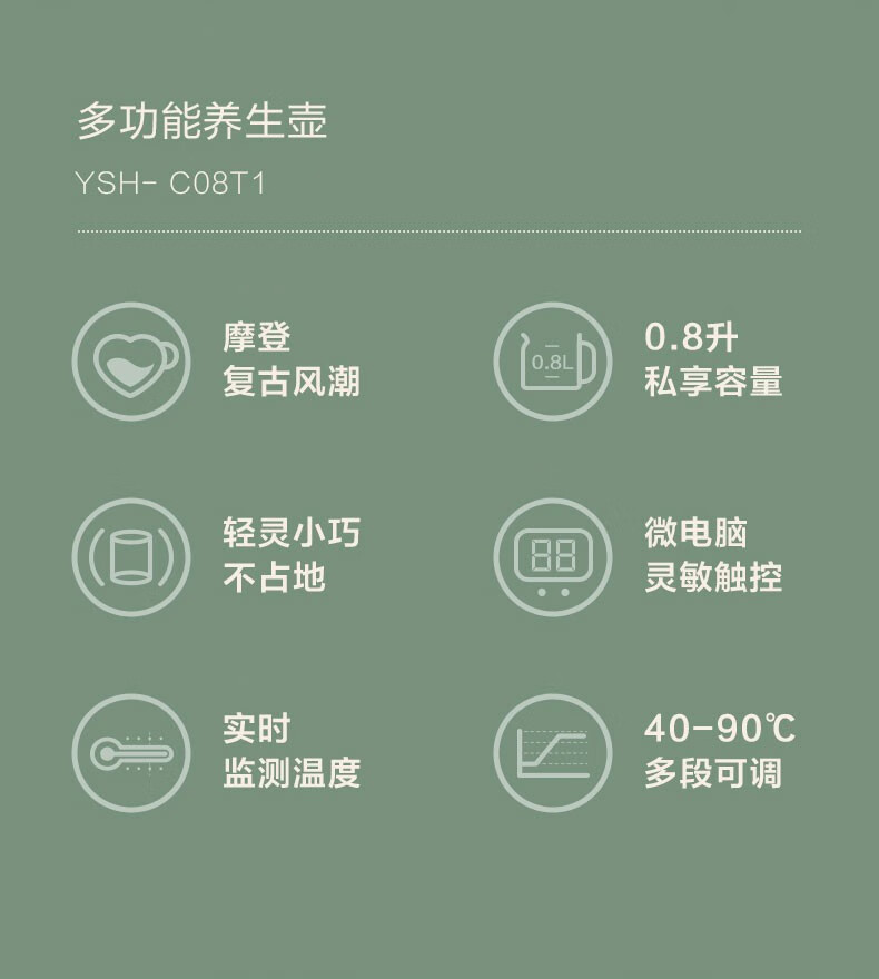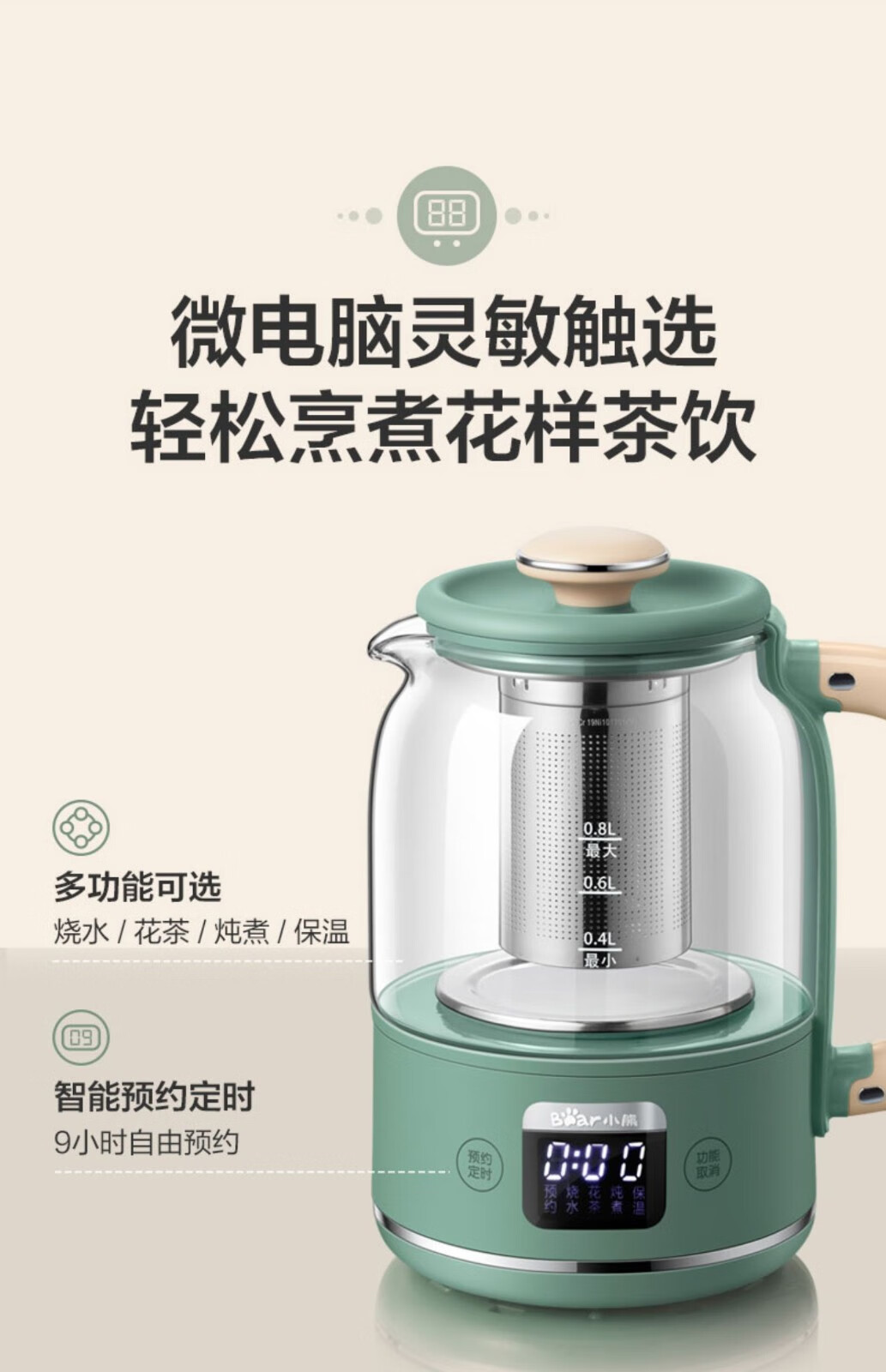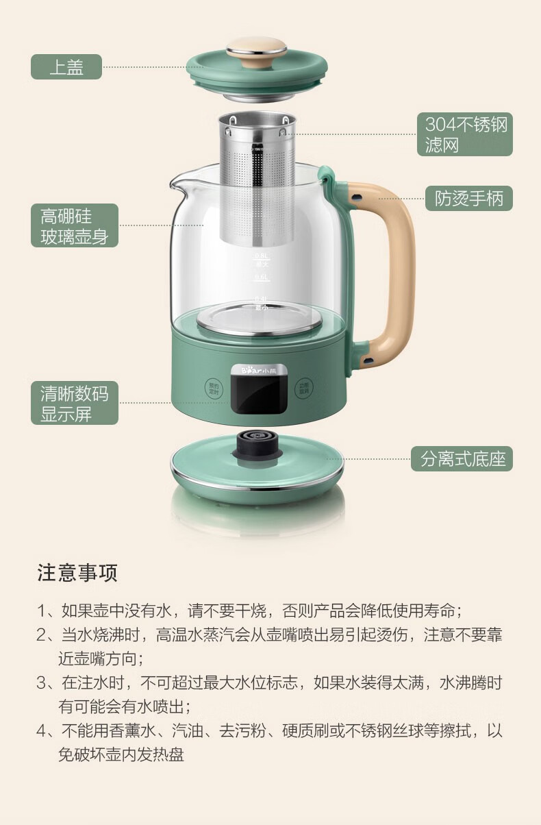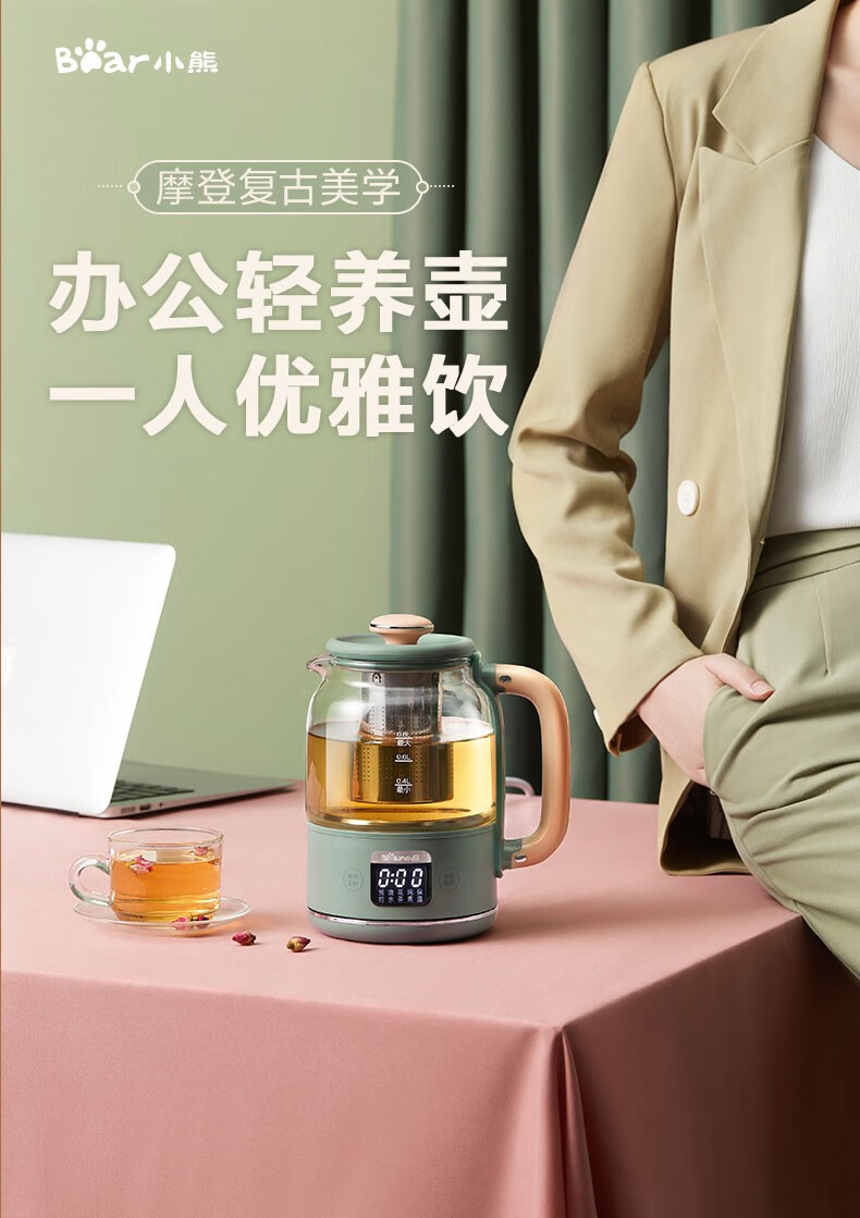 小熊小熊YSH-C08T1养生壶迷你多功能保温电水壶家用办公煮茶器0.8升 小熊YSH-C08T1绿色(304不锈钢)