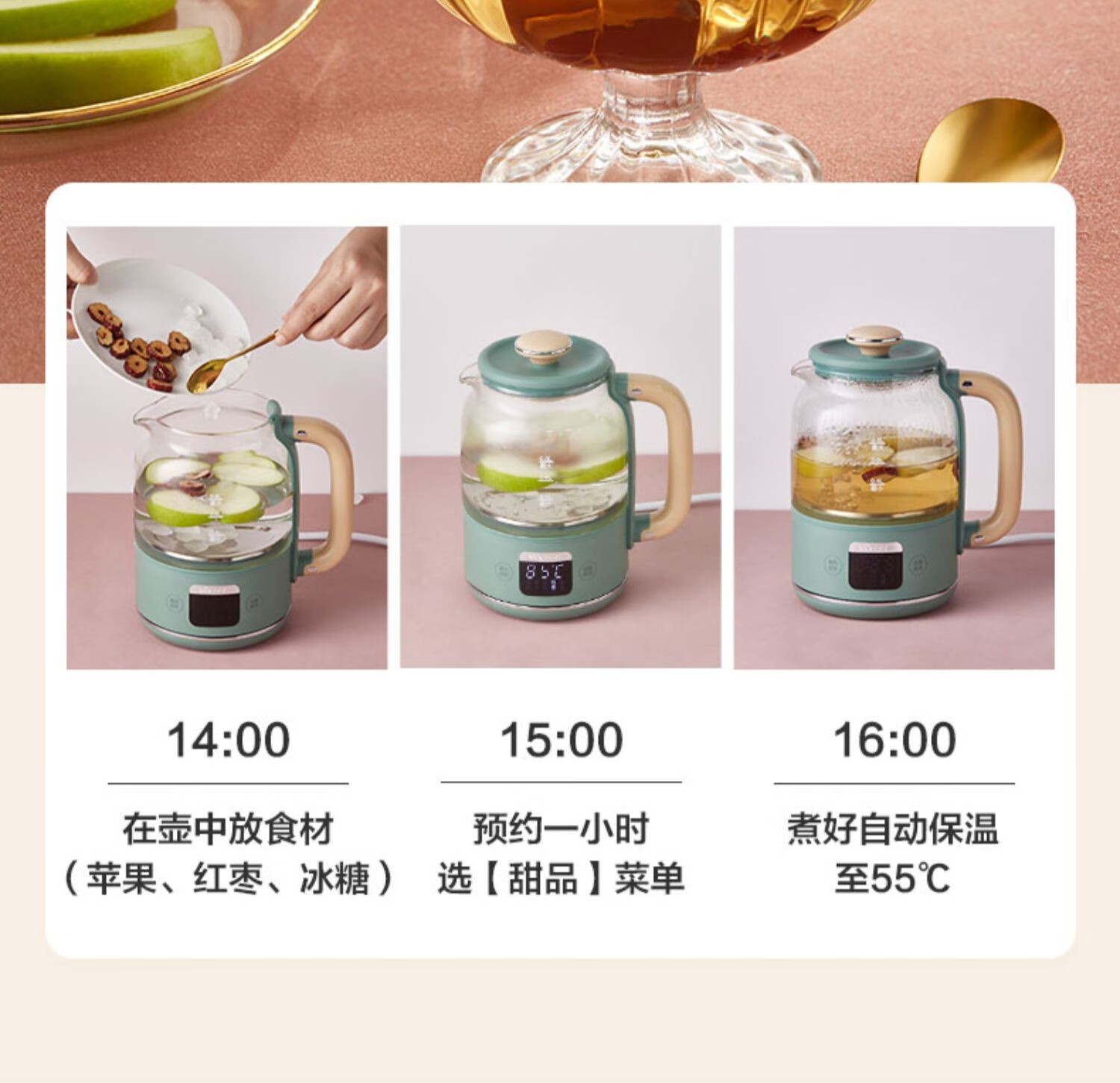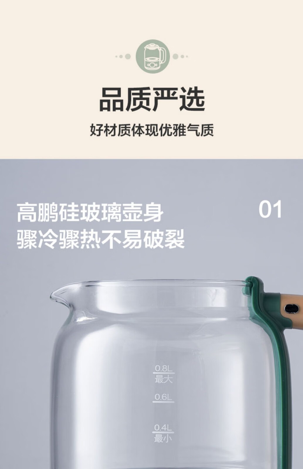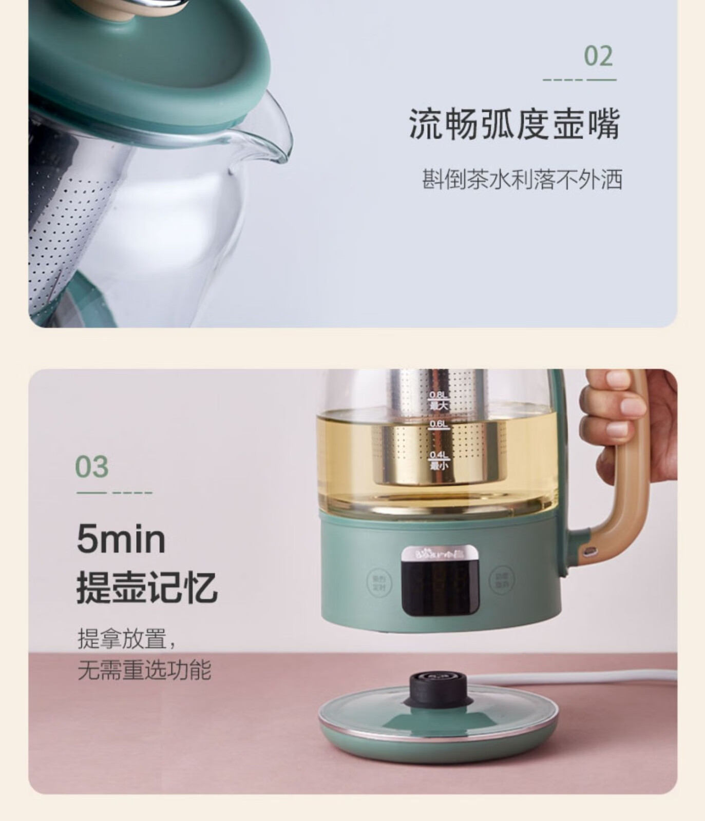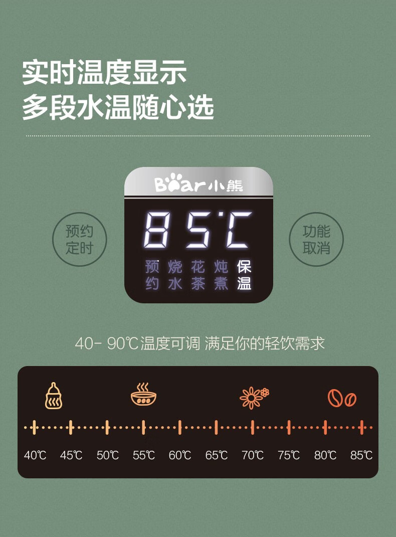 小熊小熊YSH-C08T1养生壶迷你多功能保温电水壶家用办公煮茶器0.8升 小熊YSH-C08T1绿色(304不锈钢)