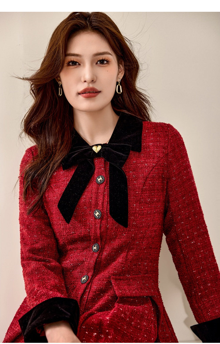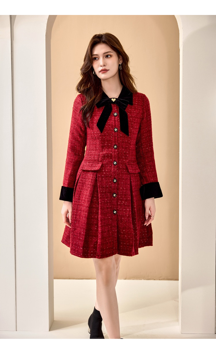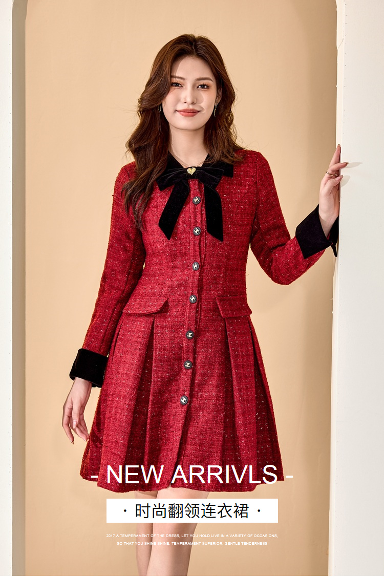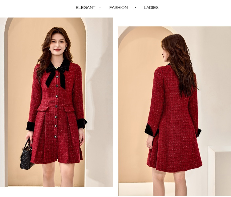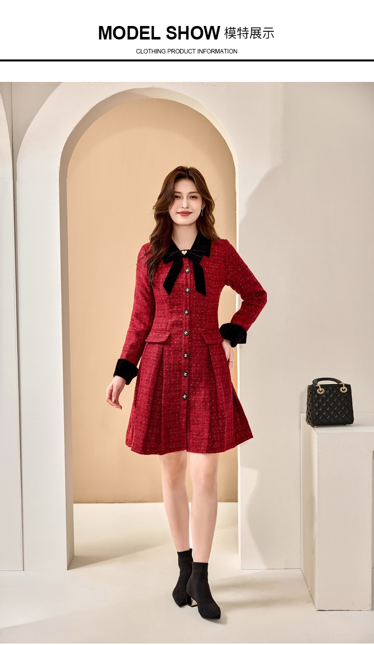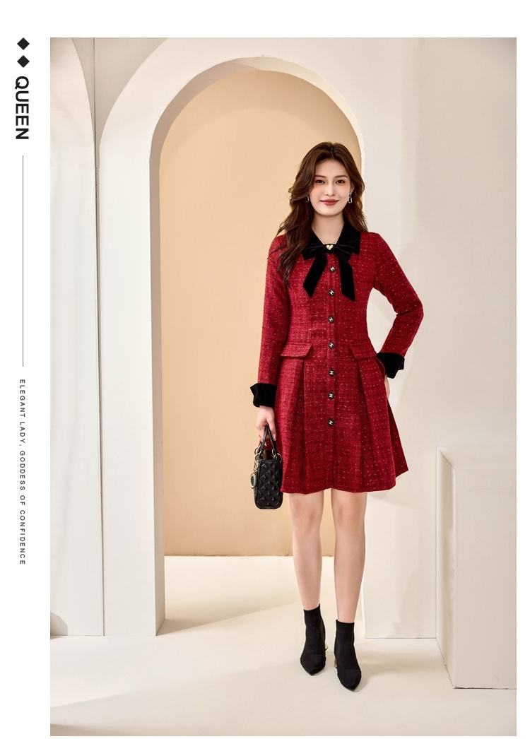 奢姿大码女装2025秋季减龄蝴蝶结小香风裙子胖妹妹翻领时尚连衣裙9943853566