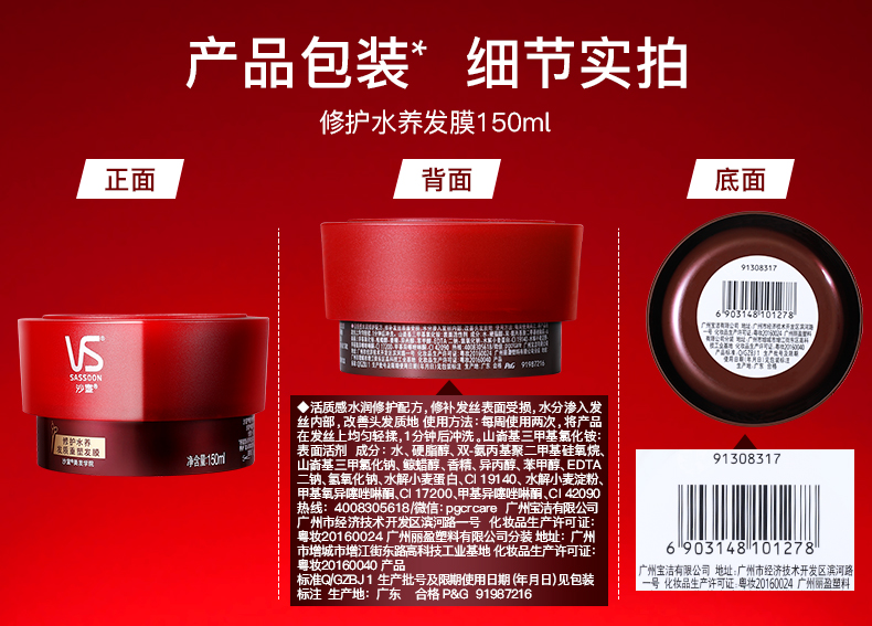 VS沙宣 发膜 护发素 补水 干枯 柔顺 顺滑 改善毛躁 免蒸 倒膜 女士水疗 包邮