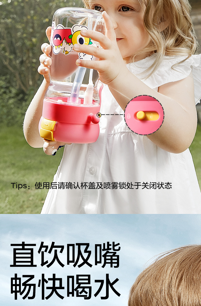 【babycare好物集】喷雾儿童水杯学生外出吸管水壶男女户外夏天降温直饮杯